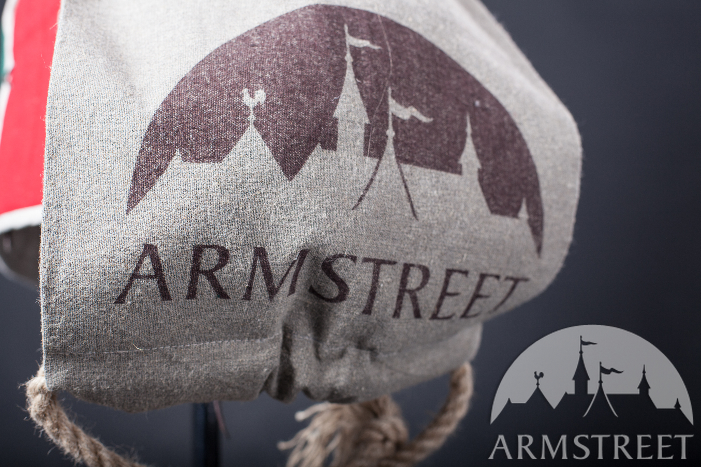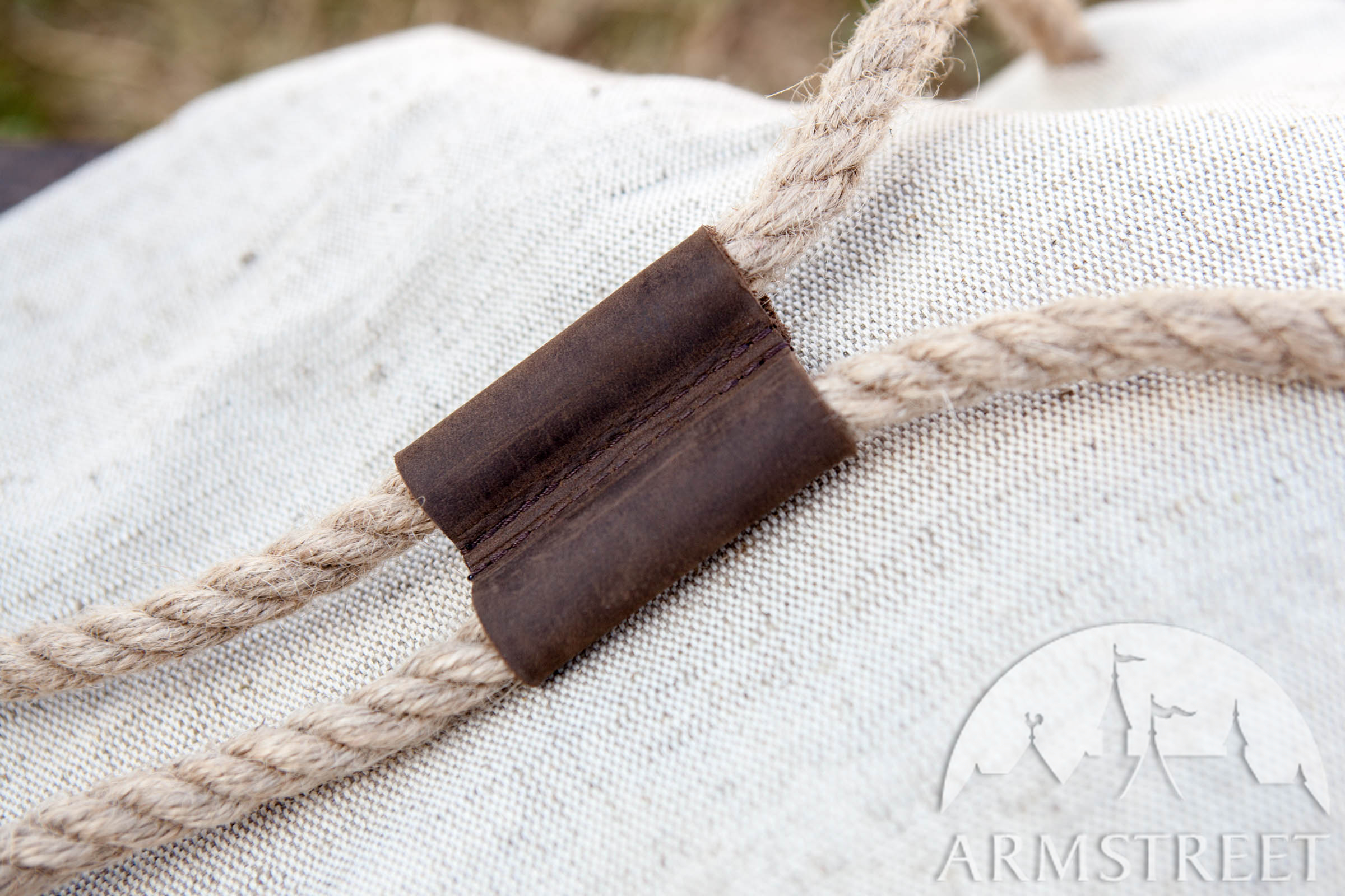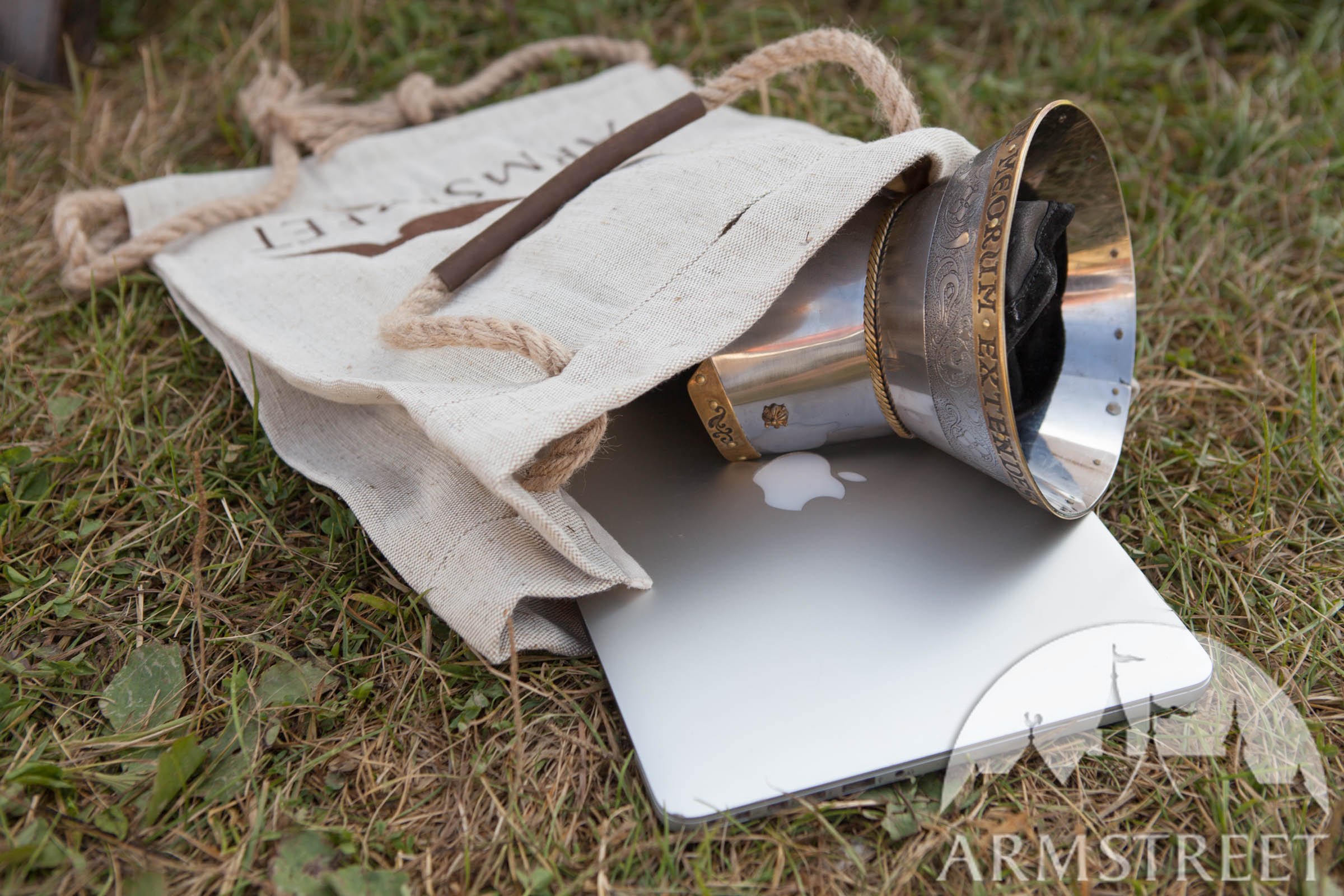 Ceux qui ont magasiné à la boutique ArmStreet savent que nous emballons souvent vos commandes dans les sacs en lin avec des cordons. Nos clients ont déjà trouvé plusieurs façons d’utiliser ces sacs modestes. Pendant la préparation de Pennsic-2016, nous avons pensé à un moyen pratique pour nos clients d’effectuer leurs achats, et nous avons rappelés ces sacs ! Au début, nous voulions simplement ajouter notre logo et une sorte de sangle, mais nous avons échoué à arrêter à une version intermédiaire, et finalement nous sommes venus avec un sac de fête cool. Voici notre nouvel écosac en toile !