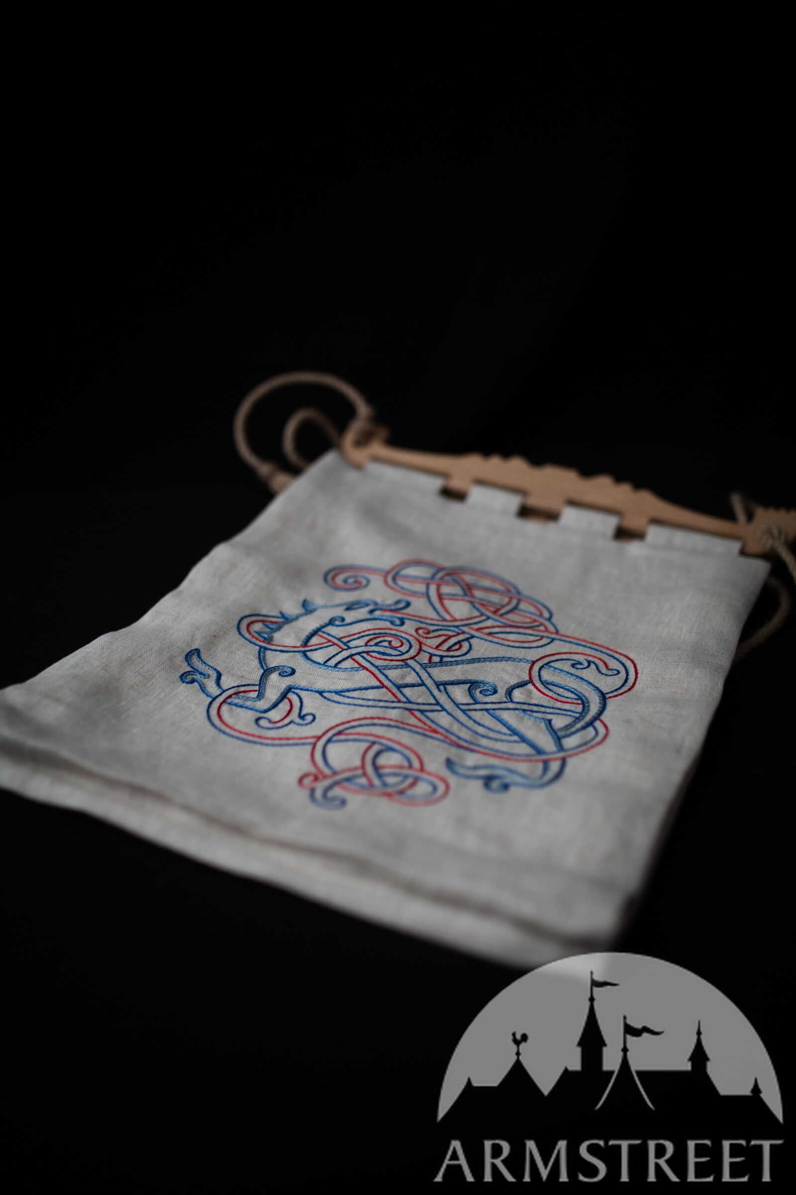 Nous avons lancé cette nouvelle gamme d’accessoires Viking avec un cadre en bois de frêne massif traité uniquement avec de l’huile pour le protéger des éléments et garantir sa durabilité. Les Vikings, cependant, utilisaient des techniques élaborées de travail du bois pour décorer le cadre avec des sculptures. Contrairement au bois de pin, le frêne ne greffera pas et ne rayera pas votre peau. La couche extérieure du sac est faite de lin durable, décorée de broderies faites à la main avec des motifs de loup ou de dragon d’eau pour correspondre à vos tenues Viking existantes par ArmStreet. Les sangles sur le bord supérieur du sac Hedeby sont enroulées autour des trous d’une poignée « dossier de chaise » et décorées de coutures à la main. Vous pouvez facilement ajuster la poignée en corde de chanvre avec de simples nœuds en fonction de votre taille et de vos préférences. Dès que vous mettez le sac, la poignée en corde ferme hermétiquement l’ouverture du sac en rassemblant deux parties du cadre en bois pour garder tous vos objets de valeur en sécurité, quelle que soit l’activité de votre routine médiévale. Une doublure intégrale de couleur naturelle offre à vos affaires une protection supplémentaire.