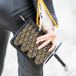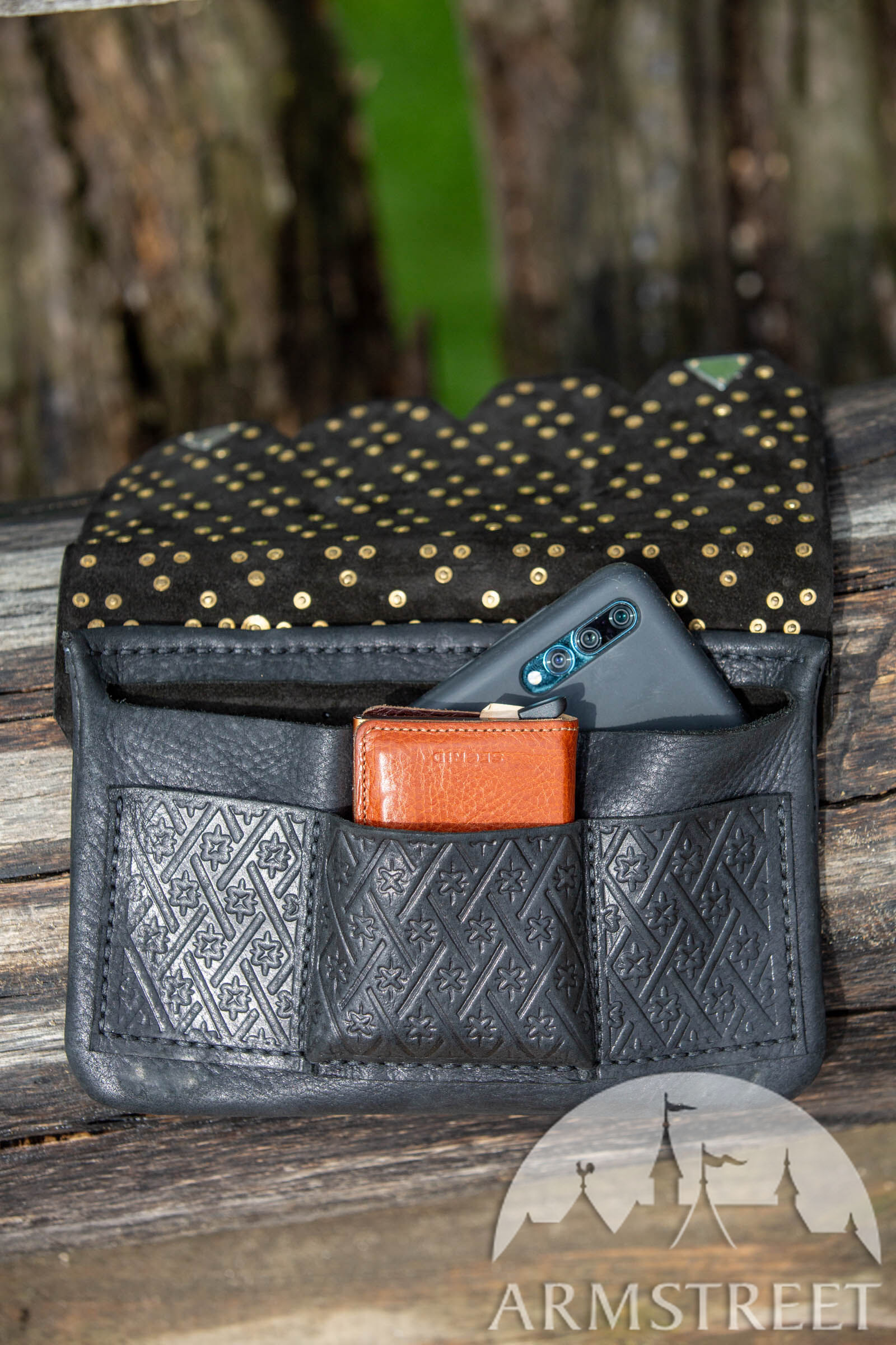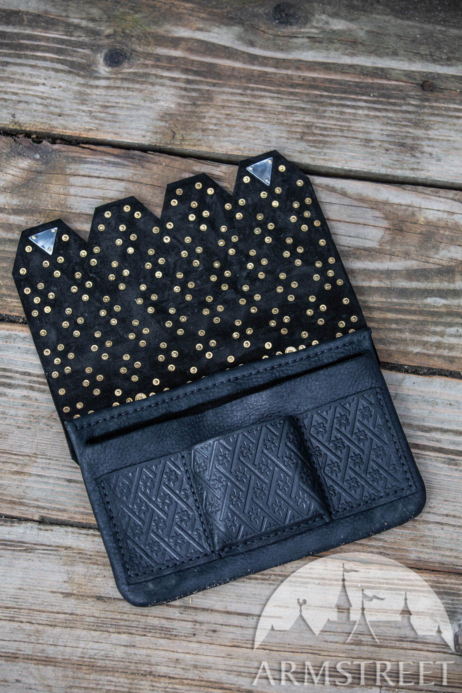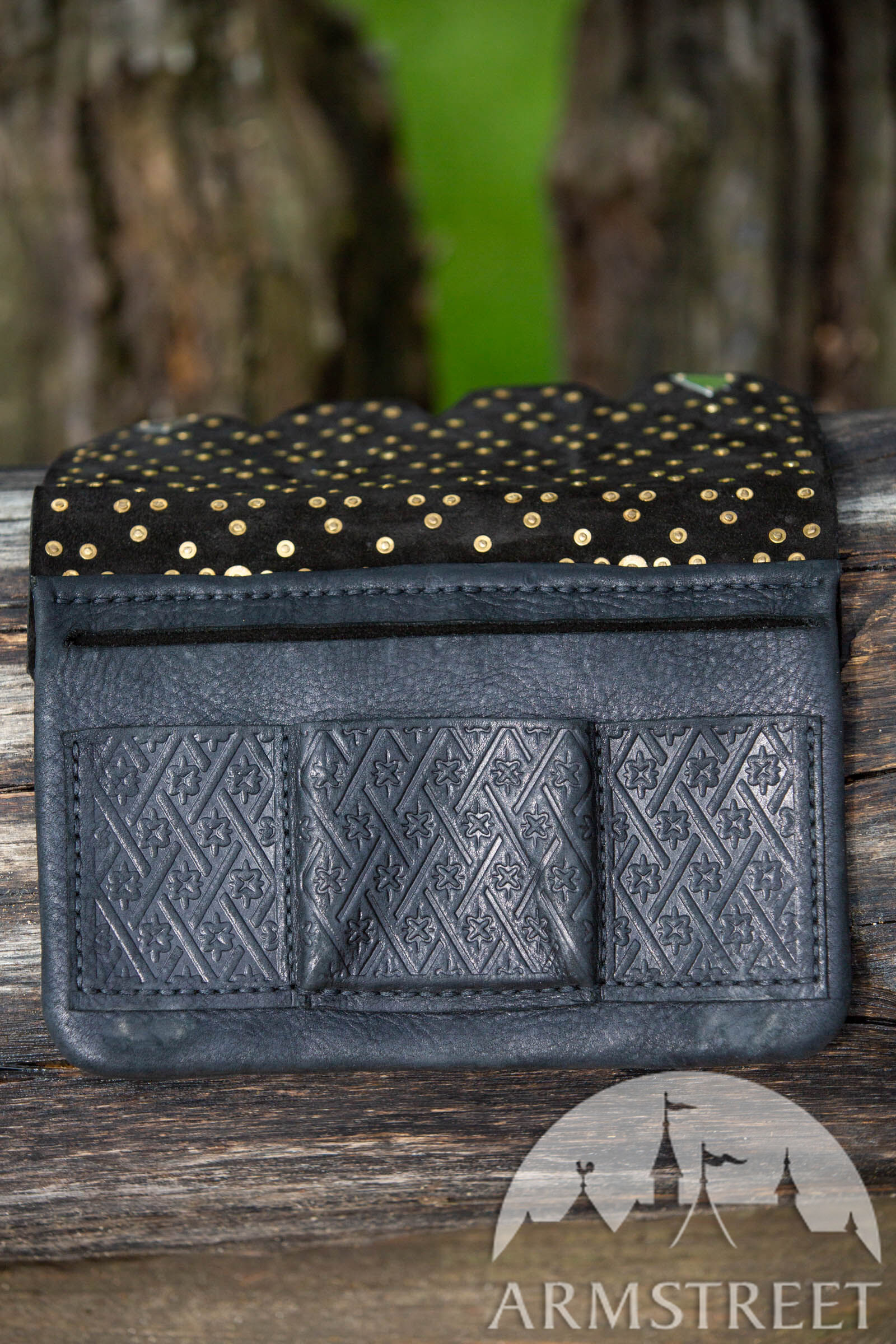 Inspiré par notre nouvel ensemble d’armure incroyable « Étoile Noire », ce petit sac a tant de style dans si peu d’espace ! Nous avons fait notre mieux pour créer un objet luxueux qui convient à merveille à votre armure ainsi qu’à votre tenue médiévale mais qui conviendrait également à votre petite robe noire et une paire de talons aiguilles pour compléter votre look sublime ! Il reste à ajouter que cette pochette peut être portée par les femmes aussi bien que par les hommes – son design est unisexe.