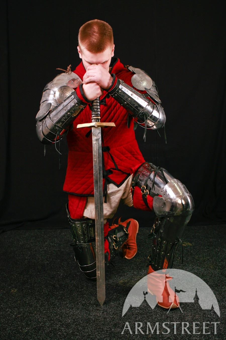 Important : Pour être bien ajustée et éviter les blessures, l’armure doit être construite précisément d’après les mensurations de la personne qui la portera. Veuillez prendre toutes les mensurations portant le gambison ou autre sous-armure que vous allez mettre avec cet ensemble. Une seule exception est si vous achetez l’armure et le sous-armure ensemble chez ArmStreet, dans ce cas nous allons effectuer les ajustements de taille nécessaires pour l’armure à la base des mensurations fournies pour le rembourrage.