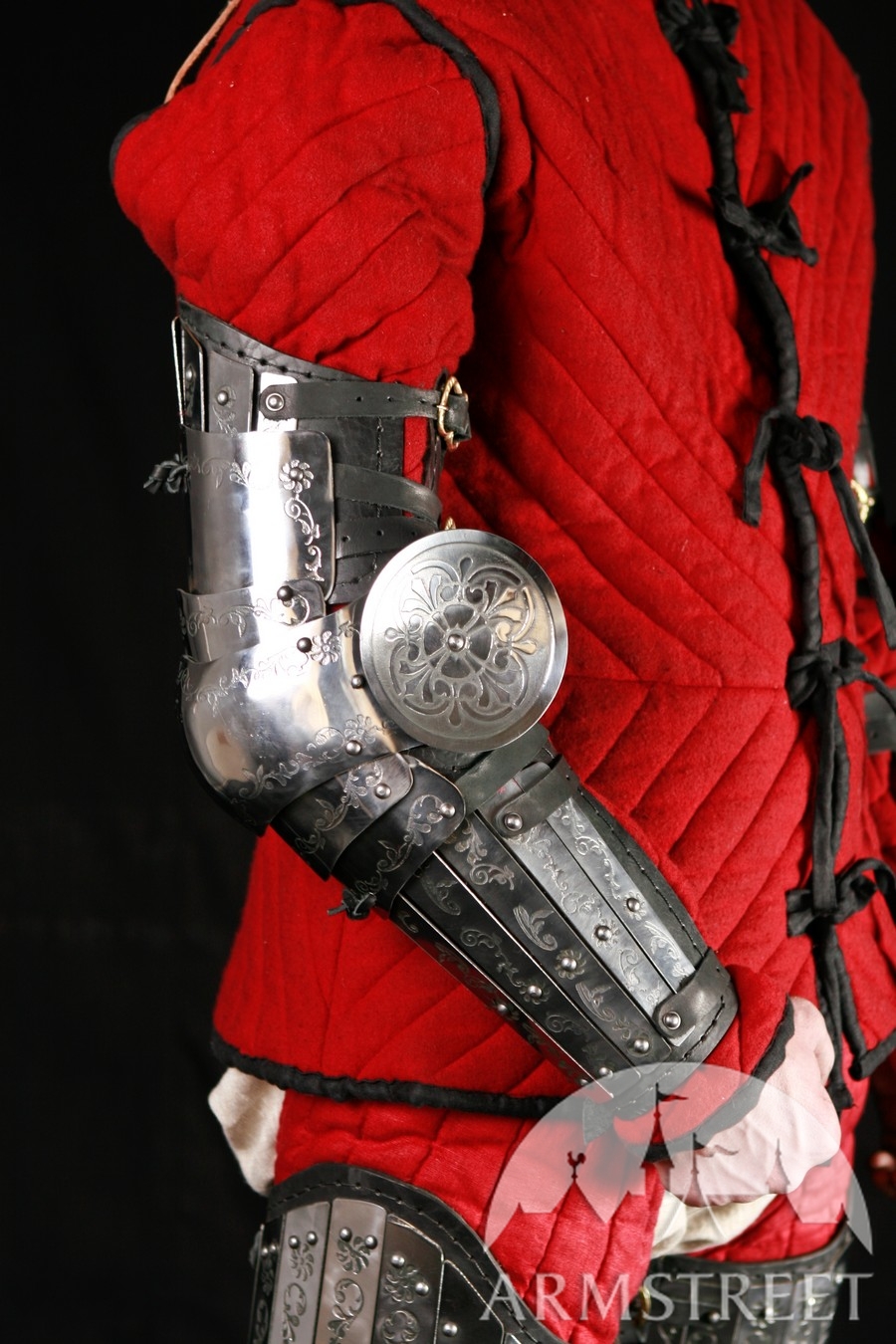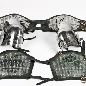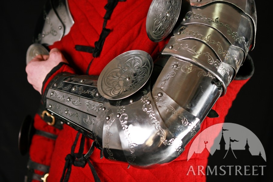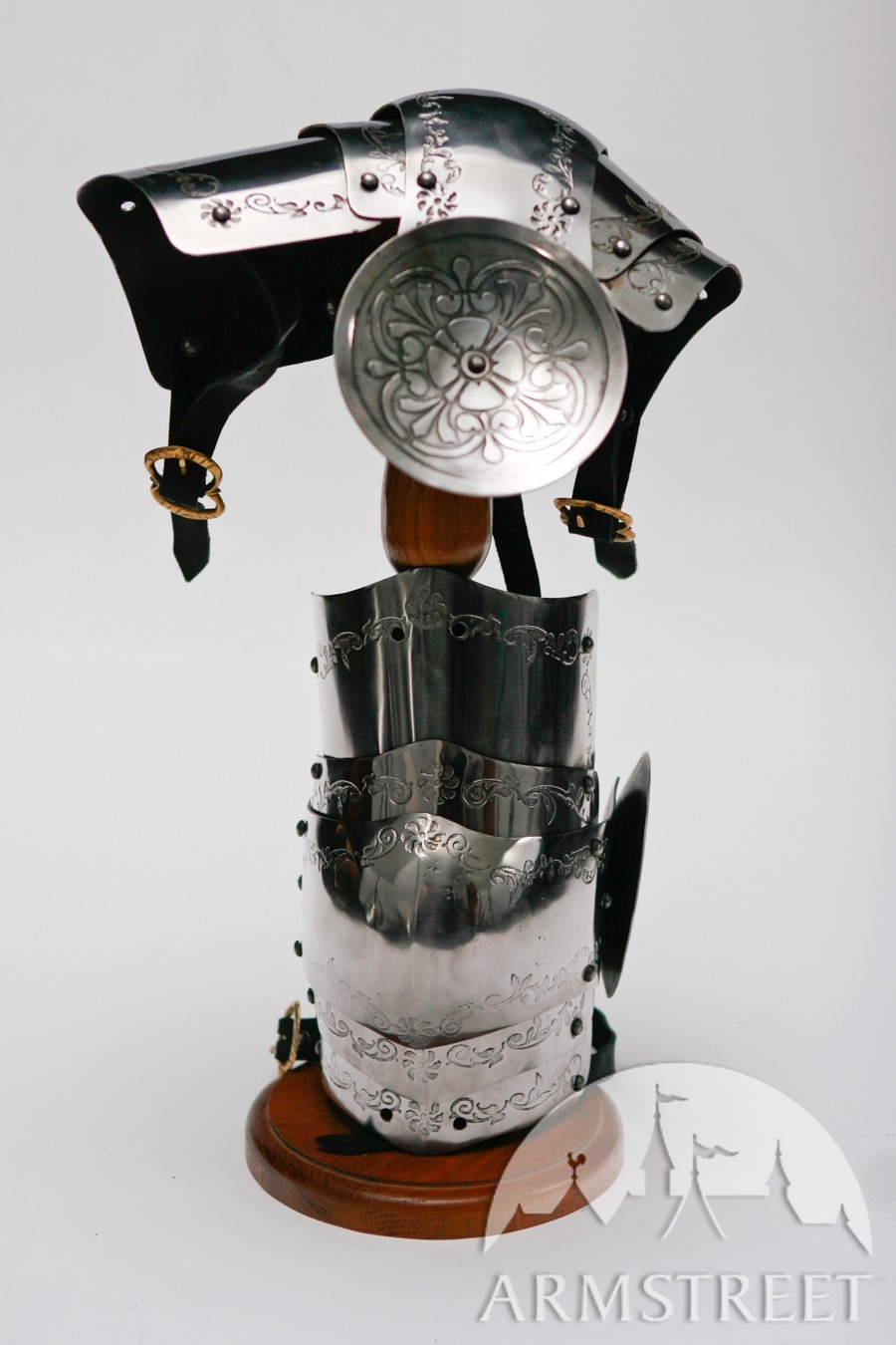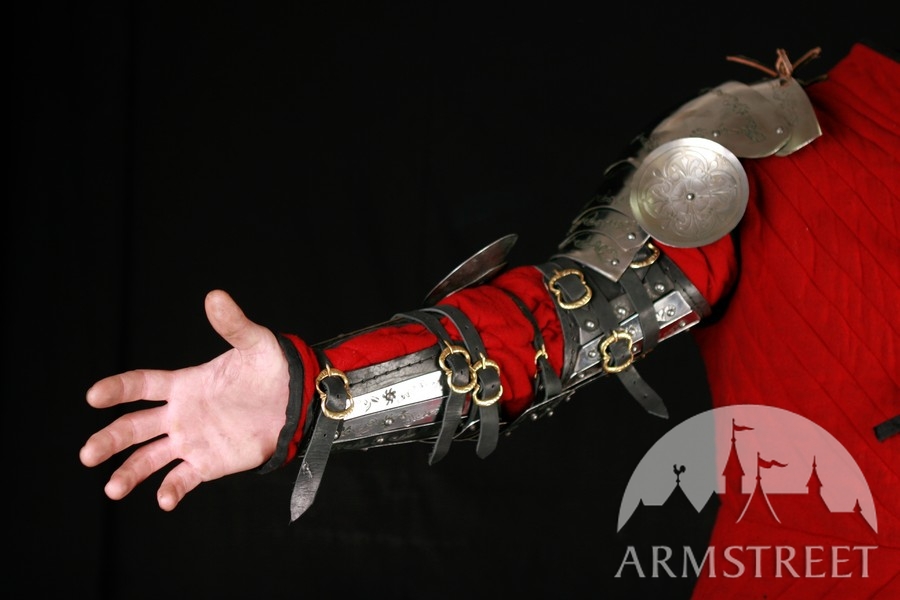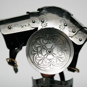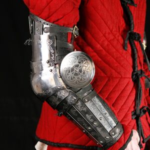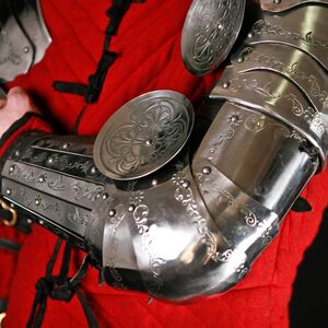 Ce magnifique ensemble de combat orienté SCA est composé de 3 parties : canons d'avant-bras, cubitières et plaques supérieures du biceps. Nos bras gravés en planches ont été largement utilisés lors de nombreux événements SCA et d'événements de combat médiévaux historiques comme « Bataille des Nations ».
