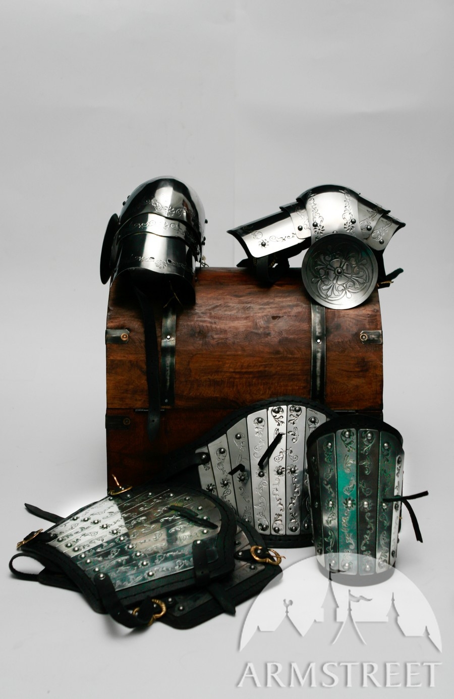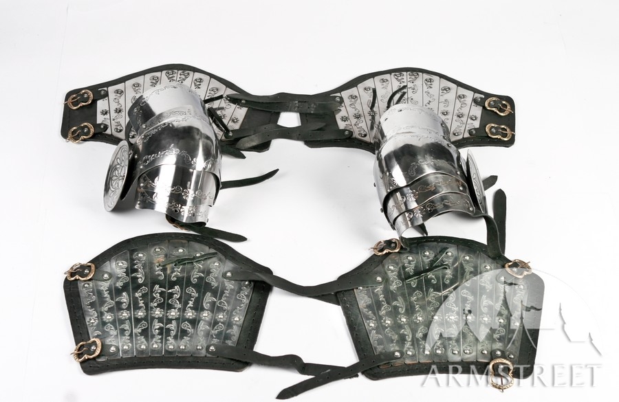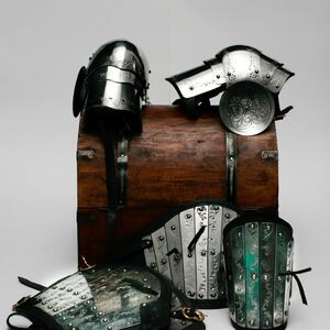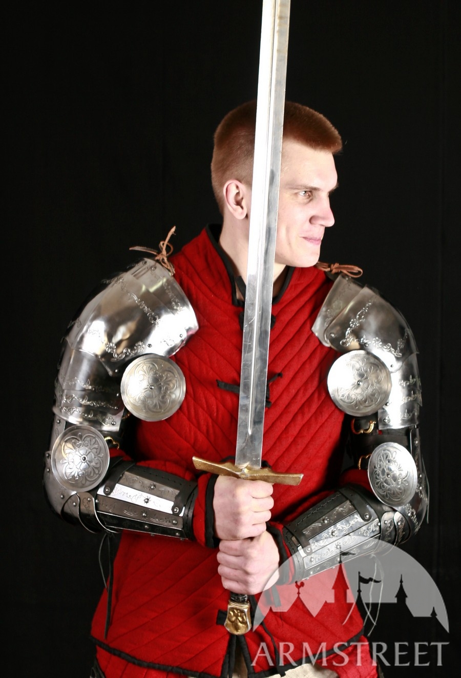 Ce magnifique ensemble de combat orienté SCA est composé de 3 parties : canons d'avant-bras, cubitières et plaques supérieures du biceps. Nos bras gravés en planches ont été largement utilisés lors de nombreux événements SCA et d'événements de combat médiévaux historiques comme « Bataille des Nations ».