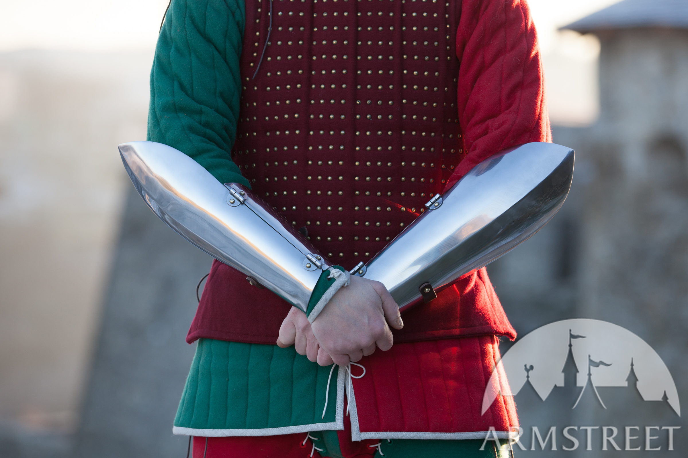 Parfois, on n'a besoin ni de décorations ni d'un ensemble complet d'armures - en effet, les défilés et les tournois n'ont pas lieu tous les jours, juste des armures des bras ordinaires pour vous entraîner à couper lors de votre entraînement. Et ces avant-bras sont un bon exemple des armures de base d'ArmStreet. Considérez-les comme l’équivalent d’un t-shirt dans chaque garde-robe moderne.