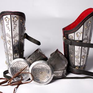Vous pouvez acheter les mêmes brassards avec un motif de style celtique ainsi qu'un certain nombre d'autres éléments comme des jambières en planches, brassards, cubitières et genouillères avec gravage.