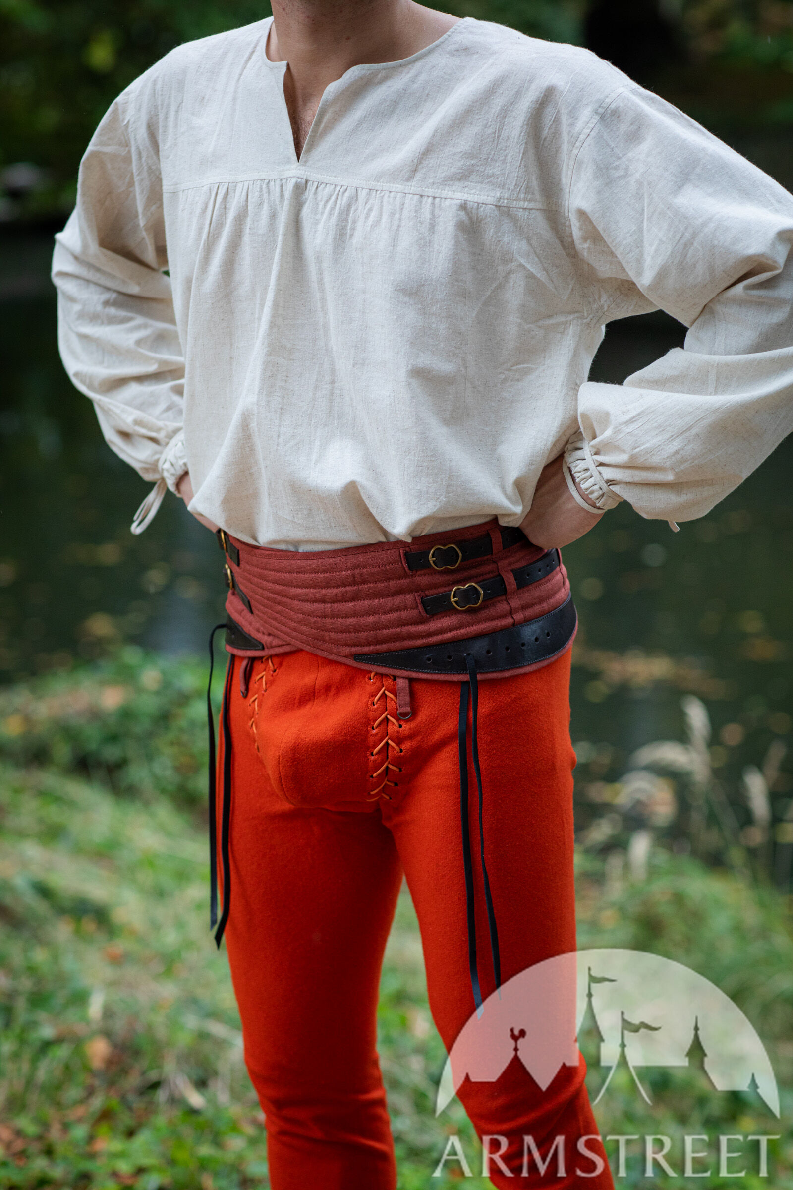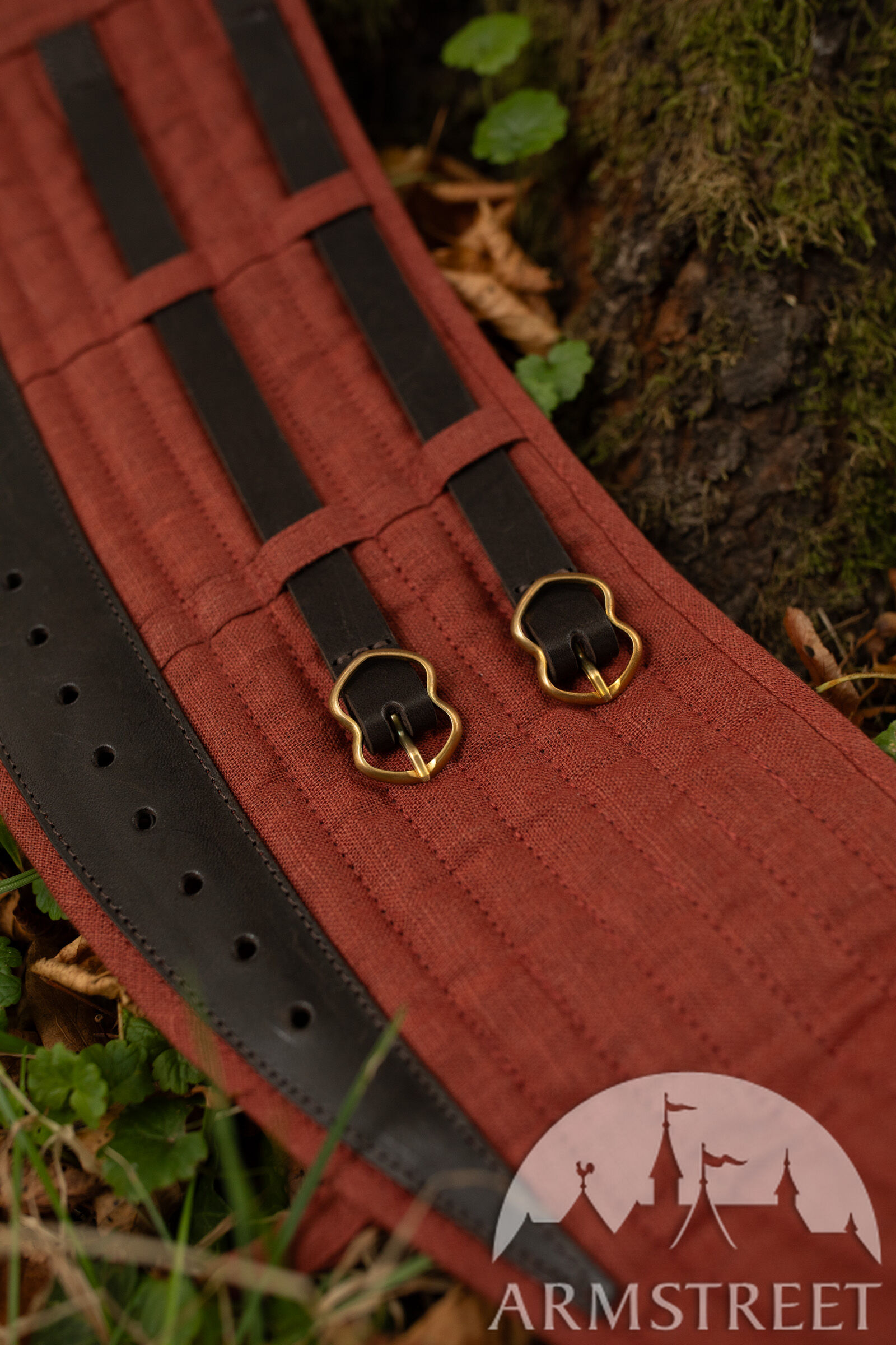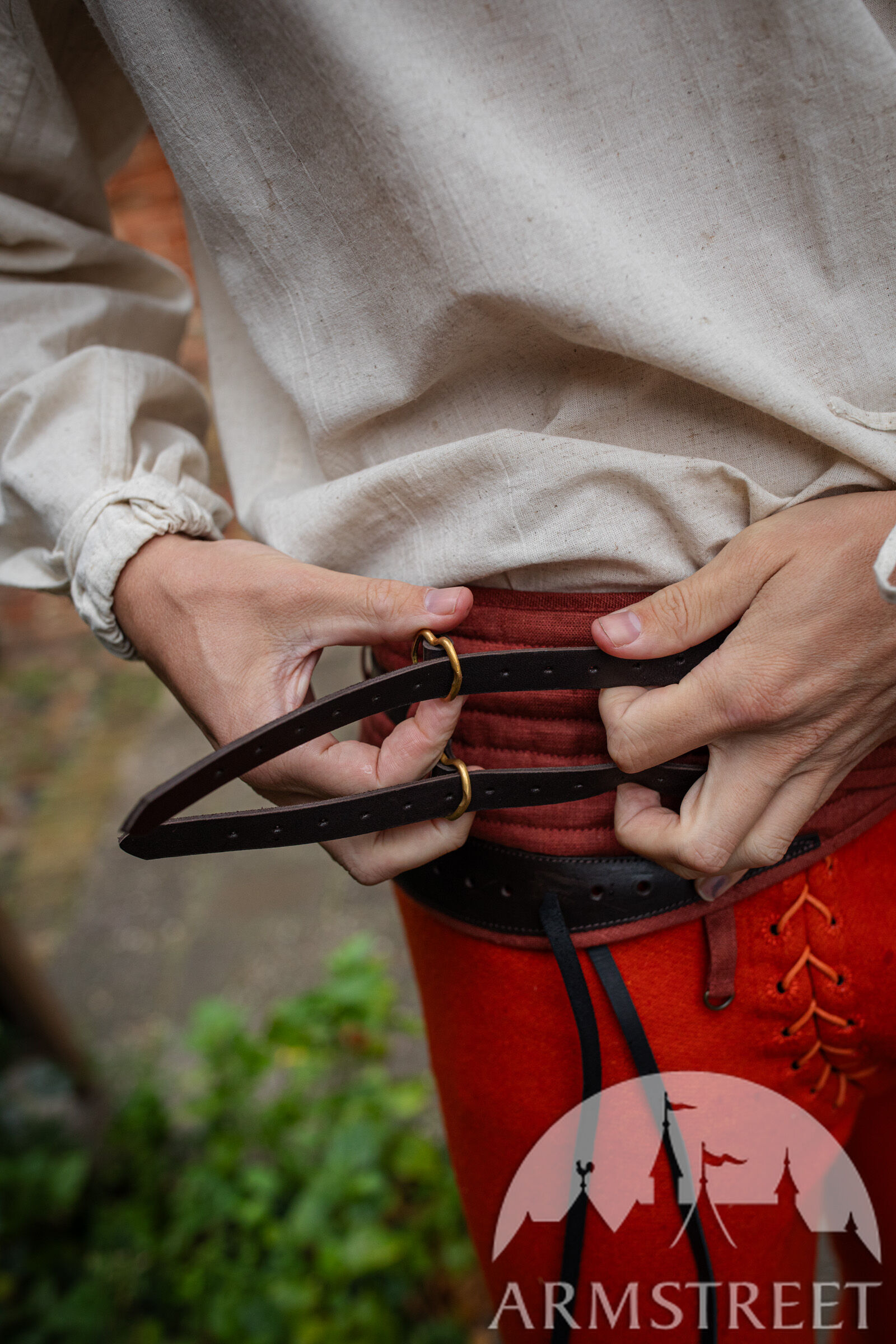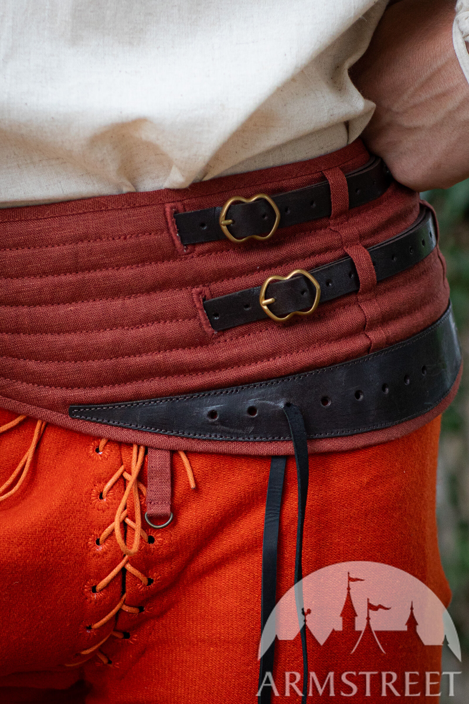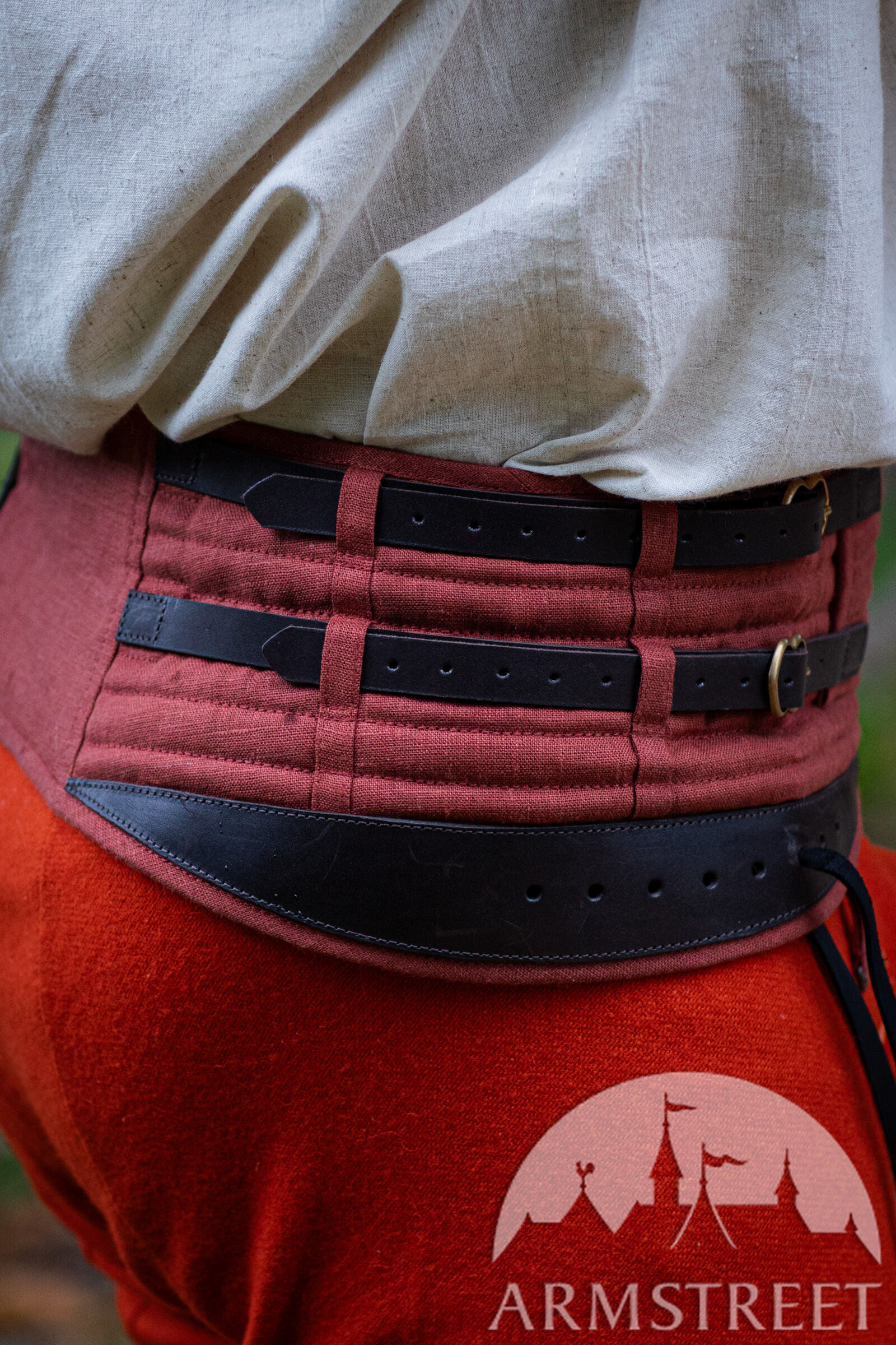 C'est une version légèrement améliorée de notre ceinture d'armes « Mercenaire » : un accessoire indispensable qui empêche vos jambières d'armure de glisser et répartit leur poids. Le système Lendenier a fait ses preuves, notamment auprès des combattants en béhourd et autres combattants en armure, mais il constitue un excellent complément pour tous ceux qui portent des jambières d'armure de plaques.