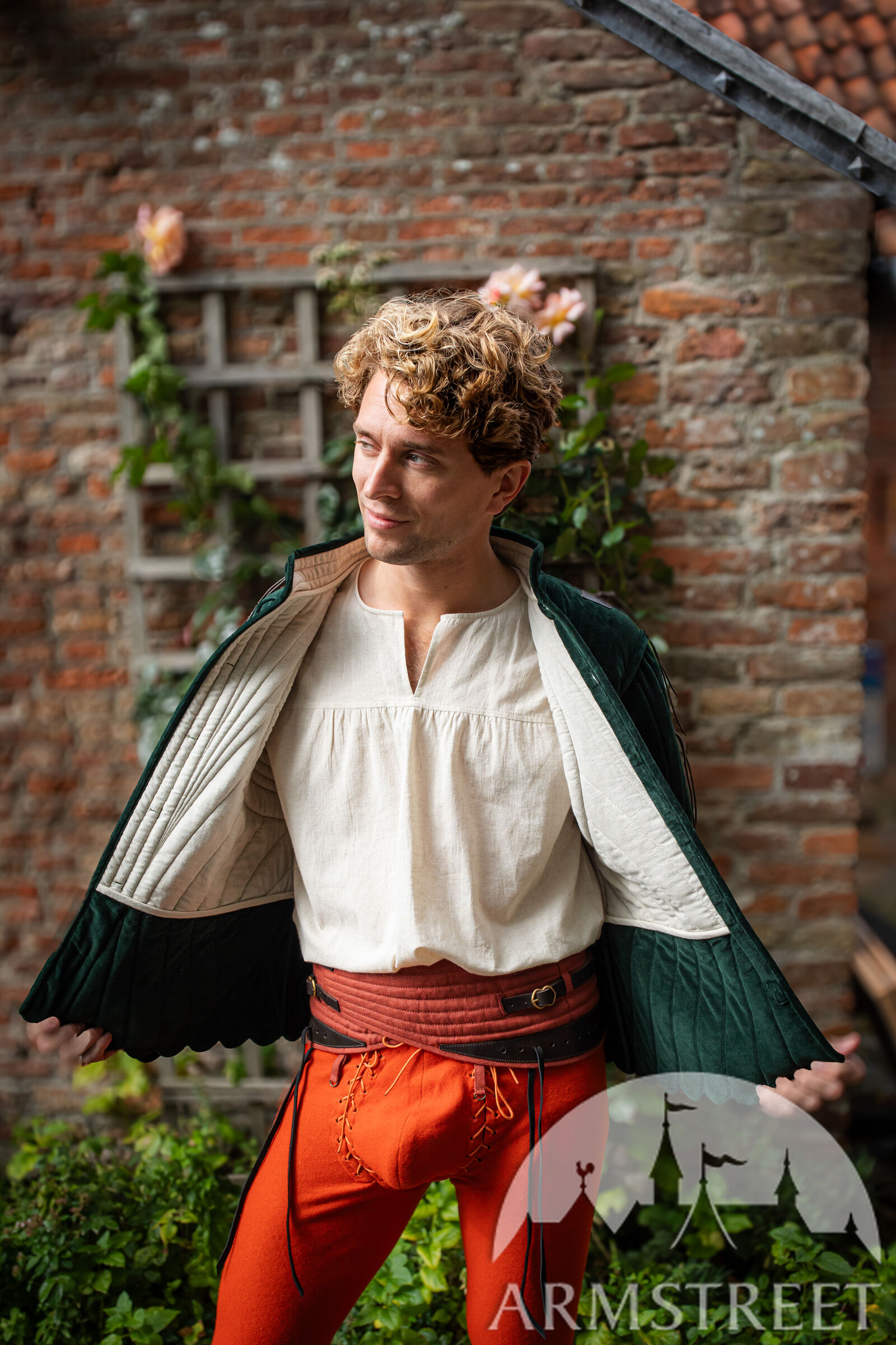Le gambison est doté d'une doublure fine mais résistante, de couleur naturelle, en mélange lin-coton. La manche à deux coutures, inspirée des meilleures pratiques de la confection moderne, offre une liberté de mouvement exceptionnelle au bras tout en conservant un style très traditionnel de la fin du Moyen Âge.