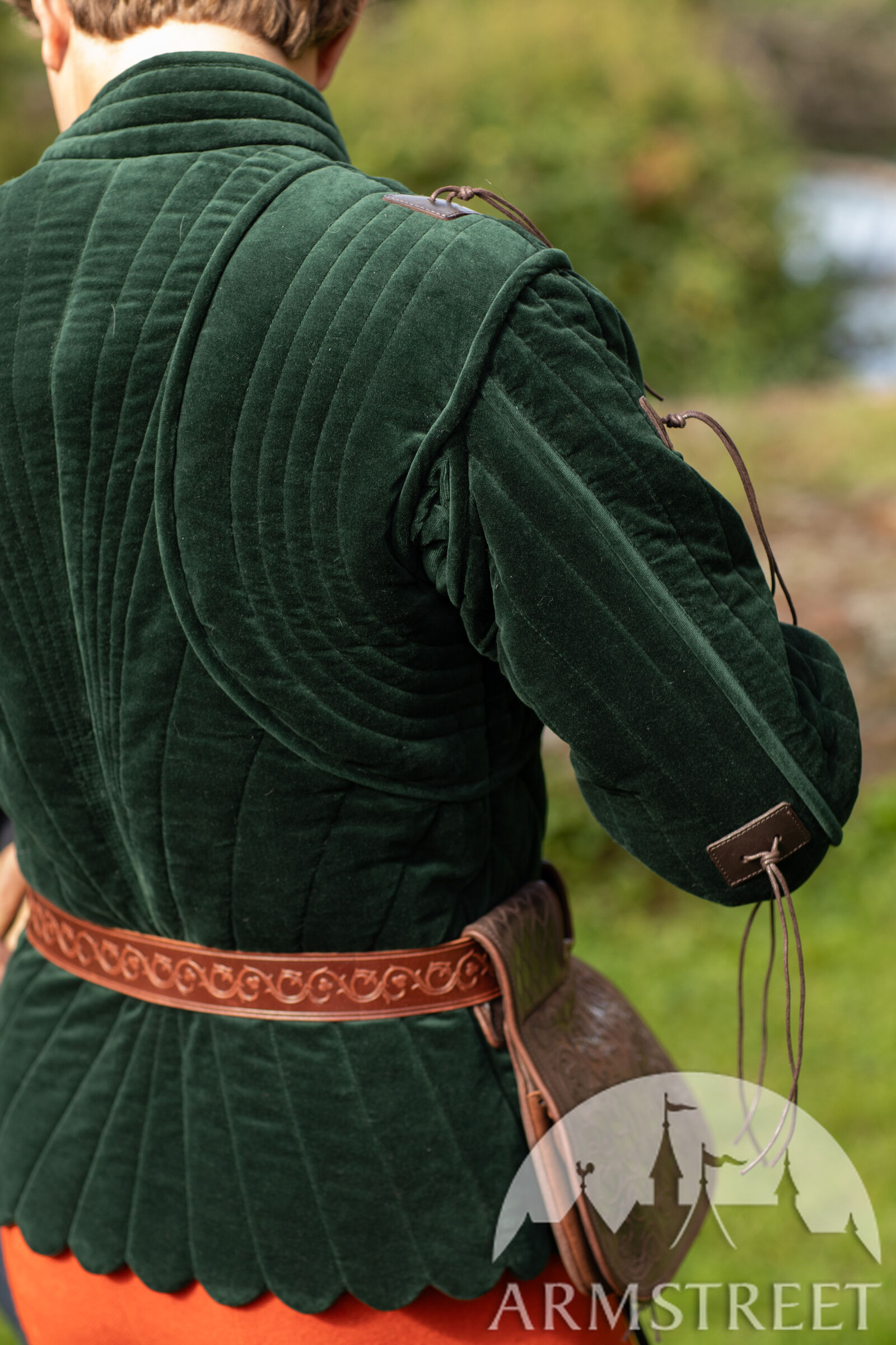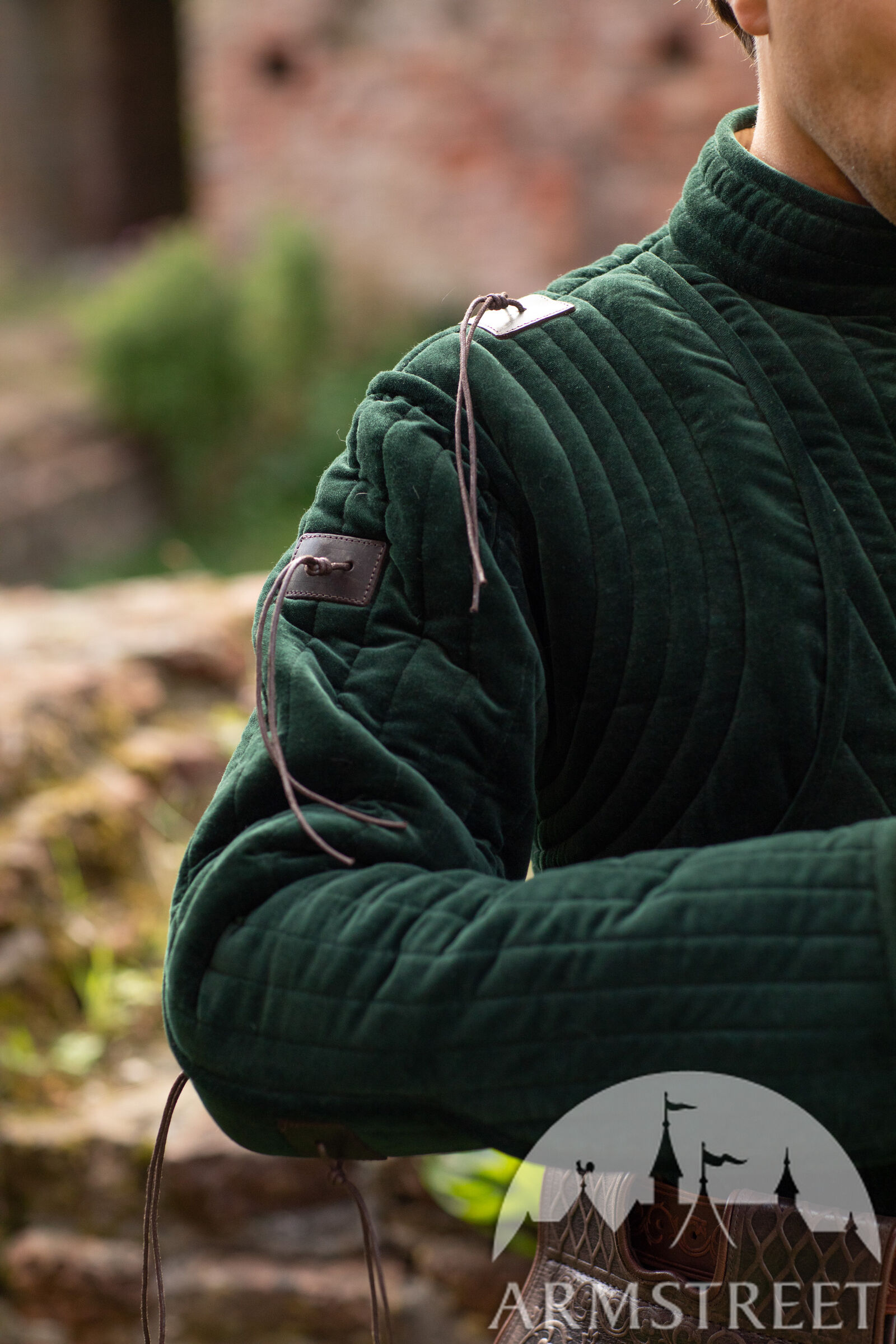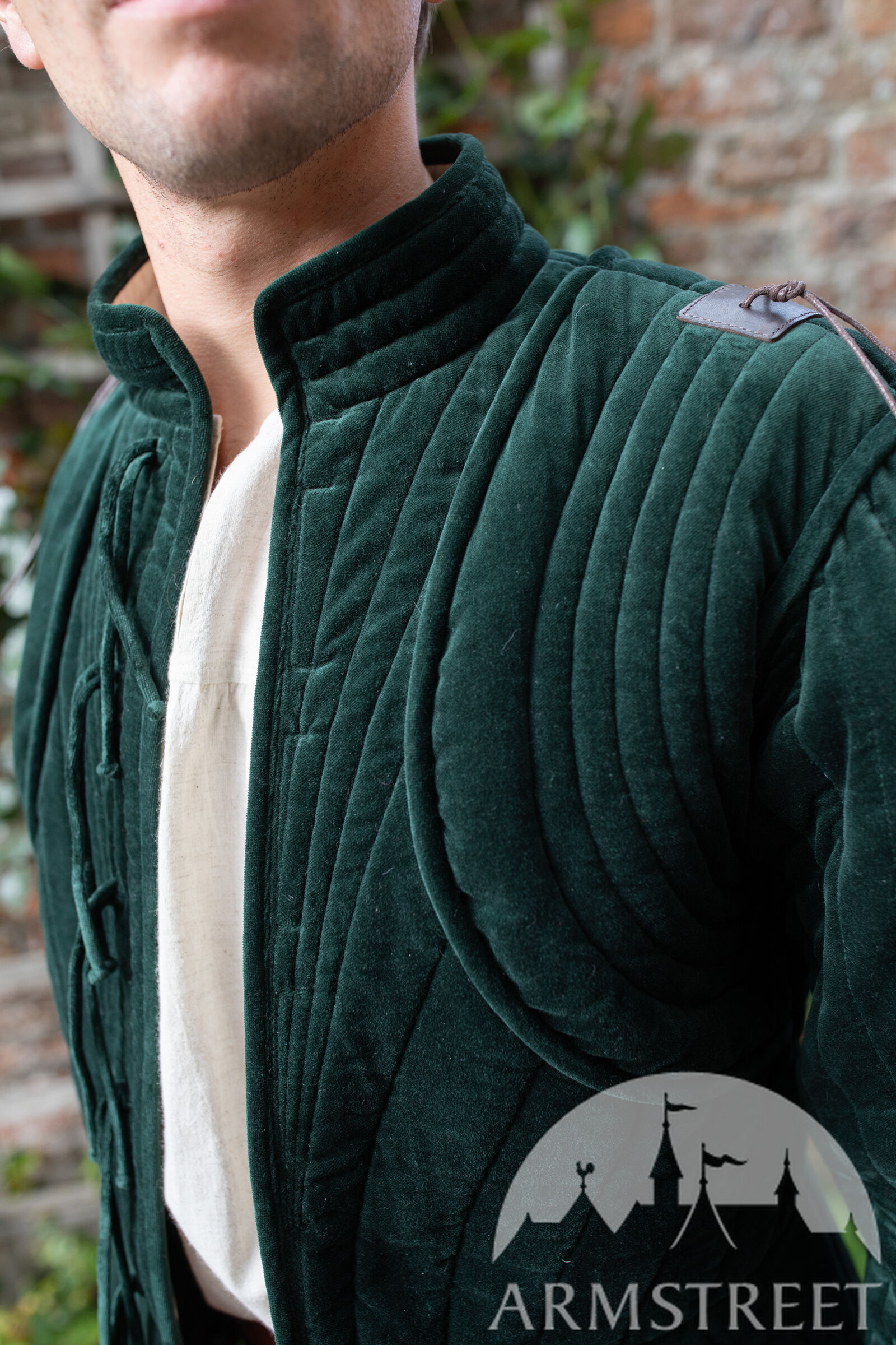 Le gambison est doté d'une doublure fine mais résistante, de couleur naturelle, en mélange lin-coton. La manche à deux coutures, inspirée des meilleures pratiques de la confection moderne, offre une liberté de mouvement exceptionnelle au bras tout en conservant un style très traditionnel de la fin du Moyen Âge.