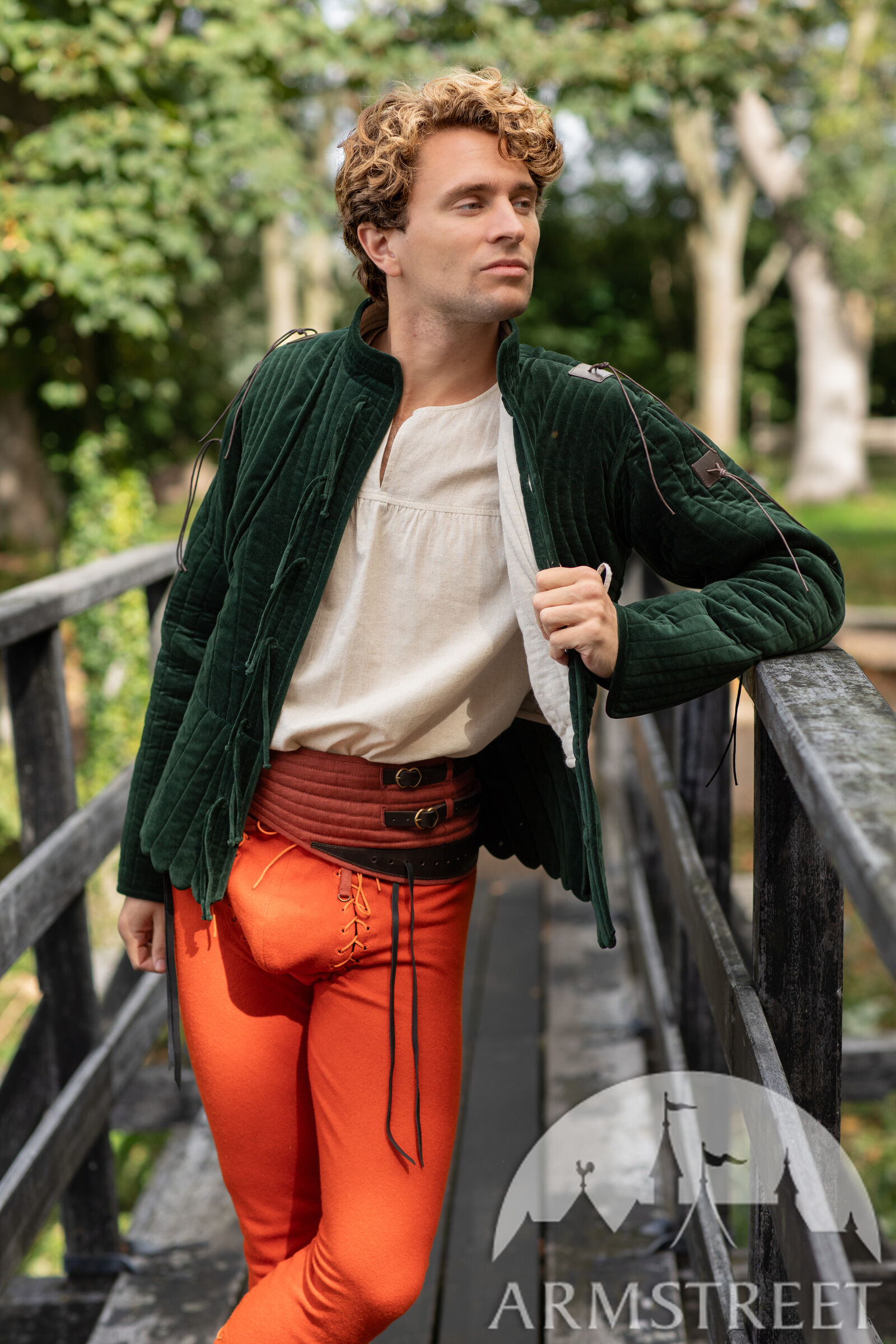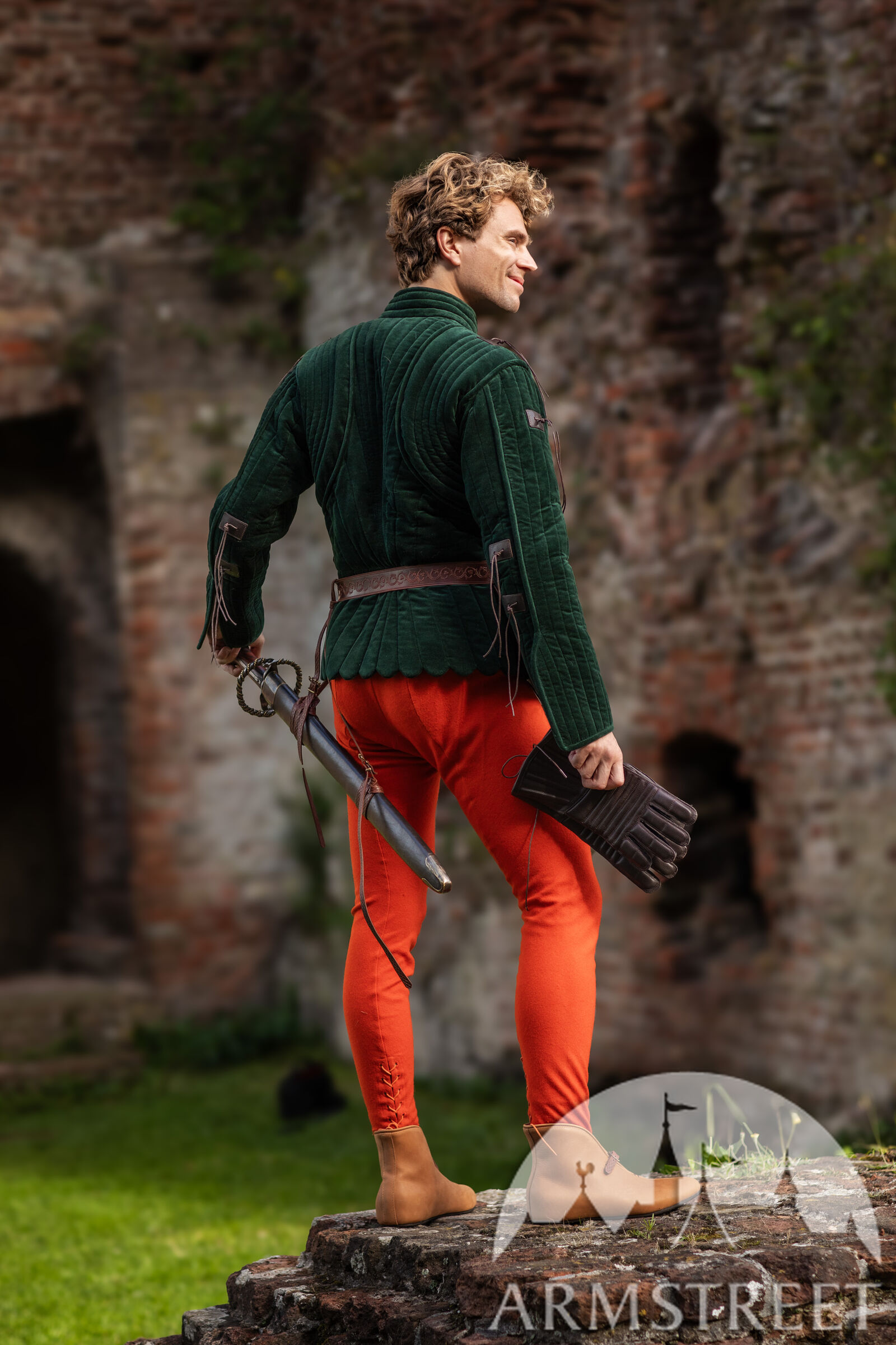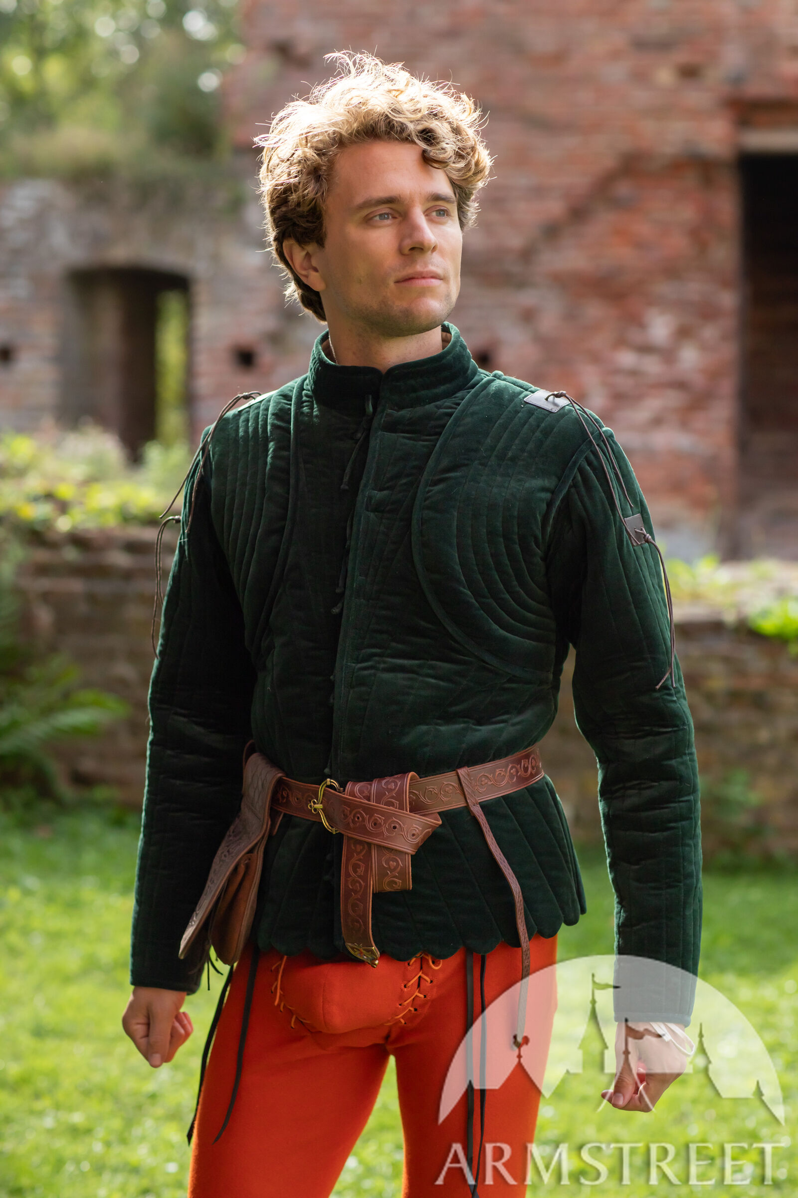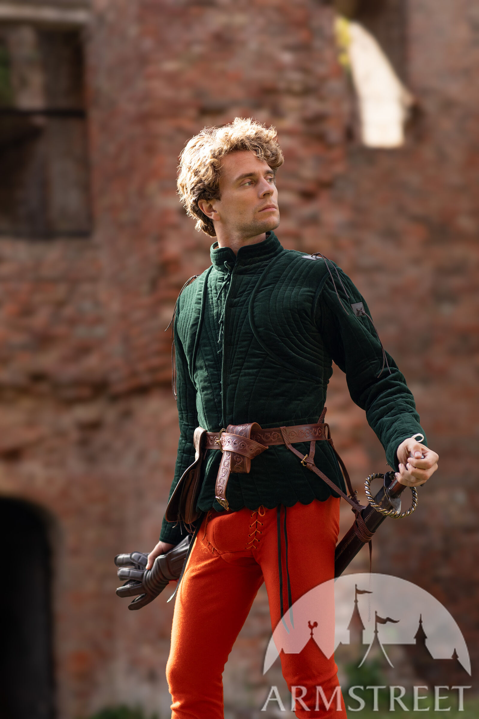 Le gambison est doté d'une doublure fine mais résistante, de couleur naturelle, en mélange lin-coton. La manche à deux coutures, inspirée des meilleures pratiques de la confection moderne, offre une liberté de mouvement exceptionnelle au bras tout en conservant un style très traditionnel de la fin du Moyen Âge.