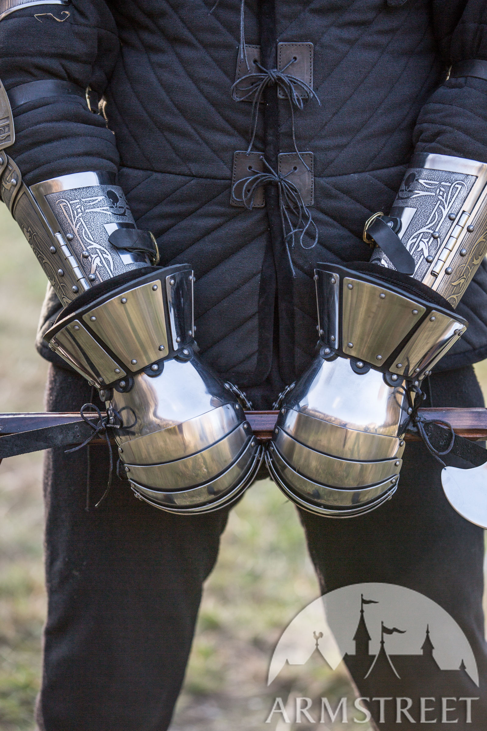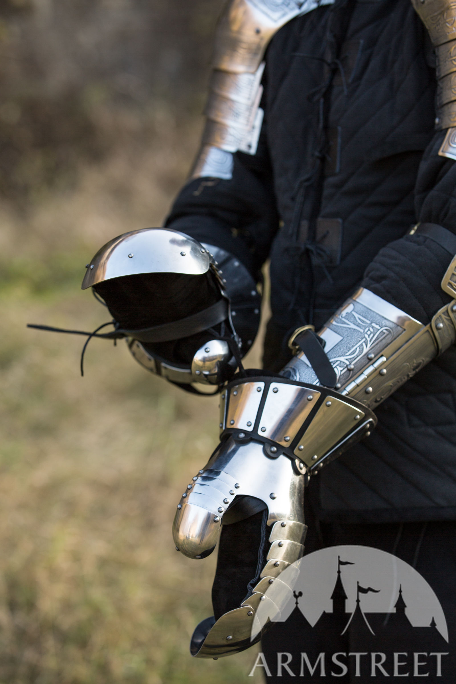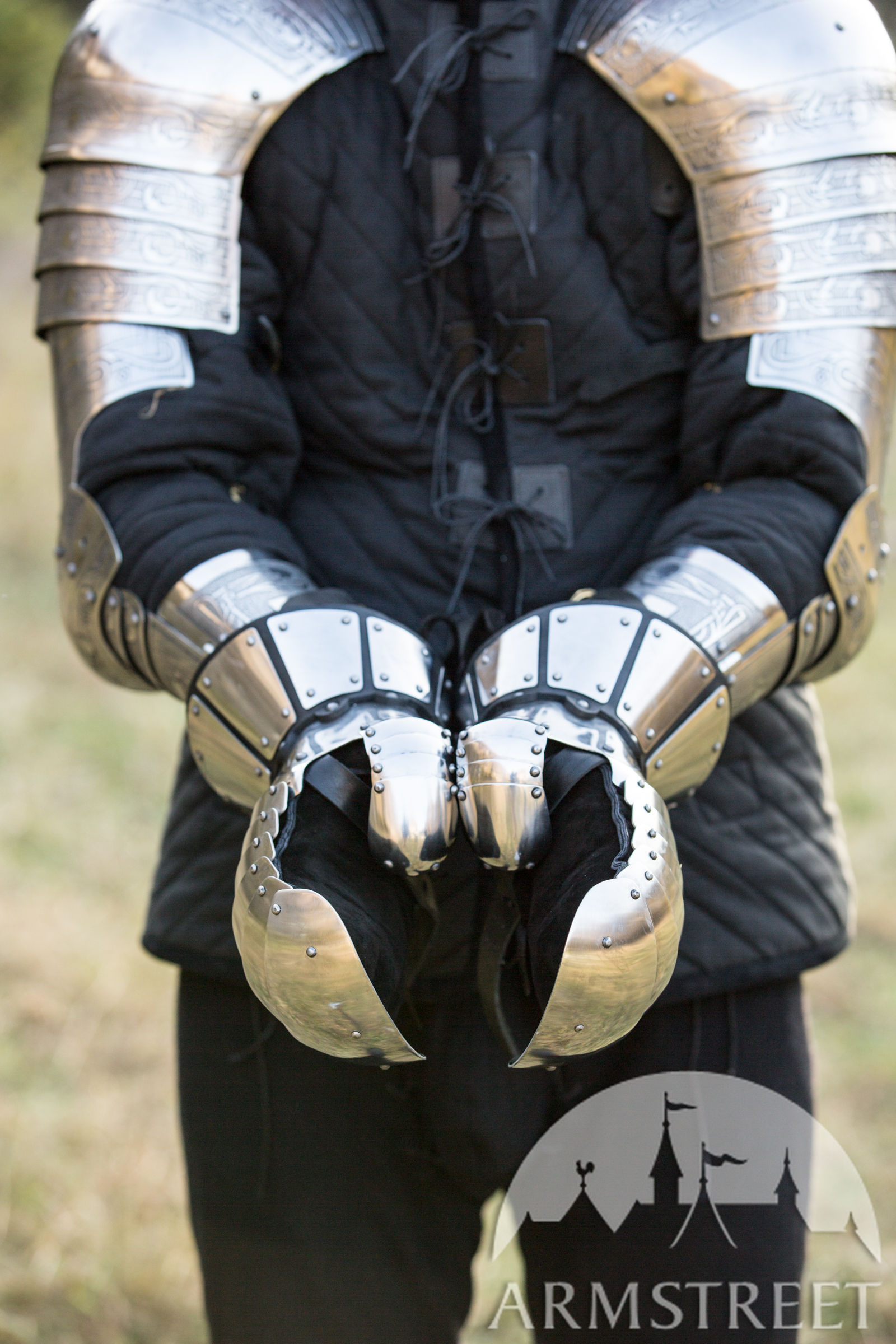 Un choix idéal pour les entraînements et les combats médiévaux. Ce joli design simple est typique pour le début du Moyen Âge – style Norman ou Slave. Ces gantelets ont la forme du pouce modernisée : la forme un peu plus concave des doigts de ce modèle aboutit à une forme plus fermée qui protège mieux le pouce des coups frontaux. Si vous avez besoin des gantelets fiables pour les entraînements ou les combats, cette paire est votre choix idéal. C’est le best-seller de cette catégorie, cas ces gantelets lamellaires vendus par ArmStreet ont reçu de nombreux retours de haute appréciation des combattants de partout dans le monde qui les utilisent depuis bien des années. Ce qui à son tour contribue au perfectionnement permanent de leur fonctionnalité et leur ergonomie.