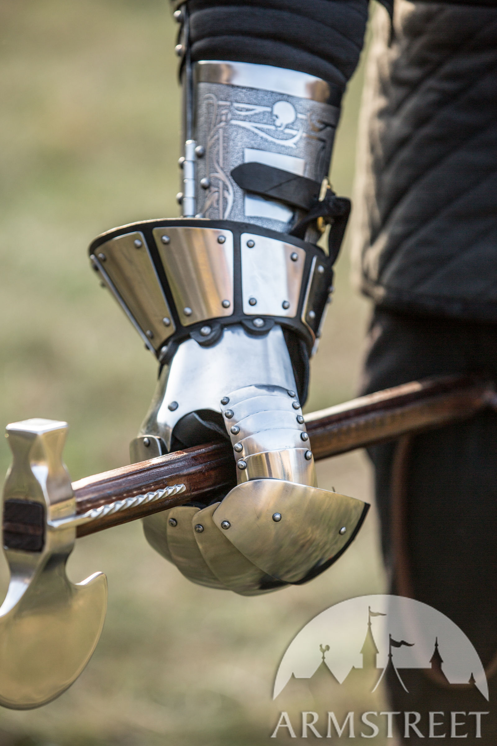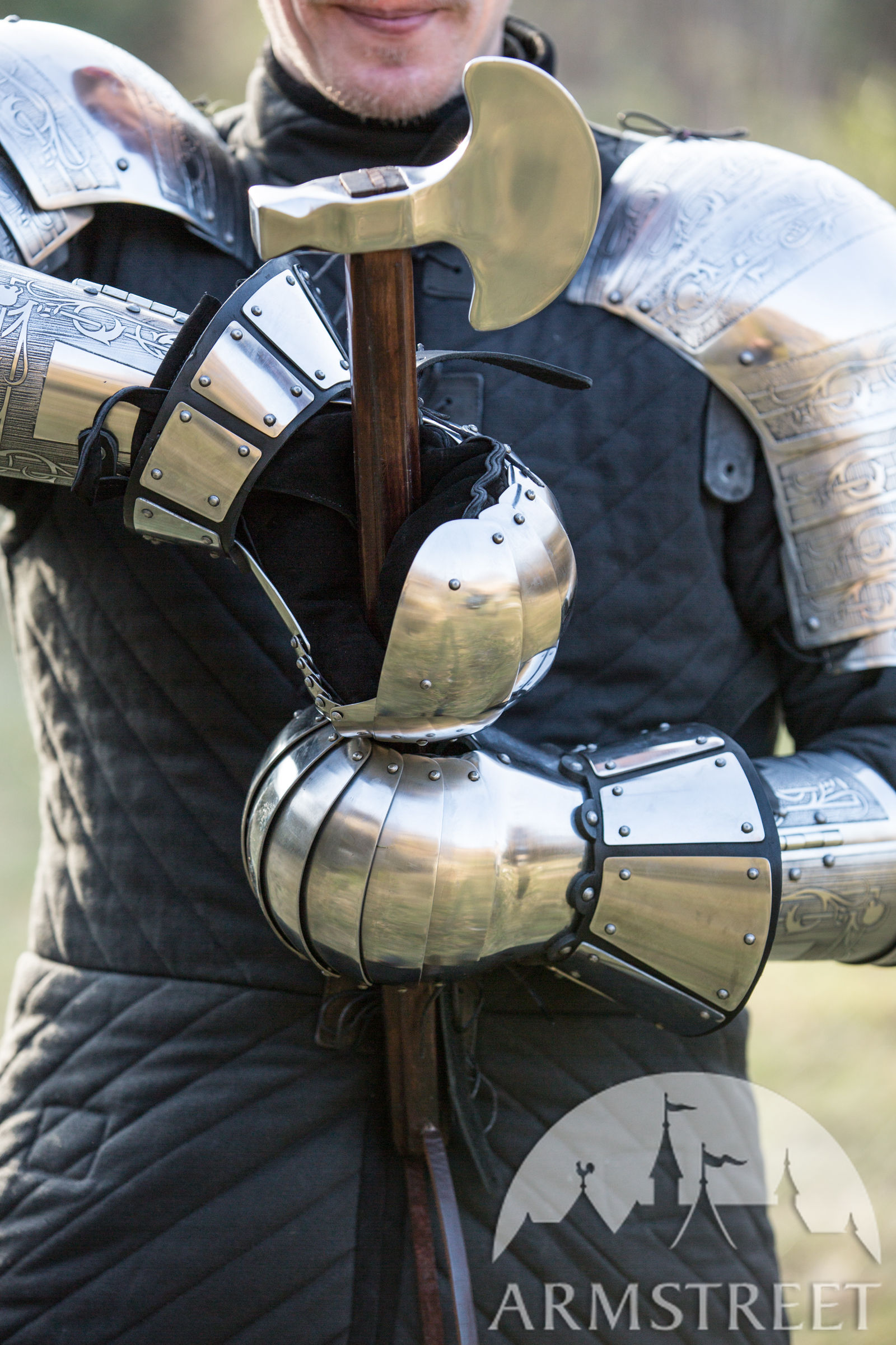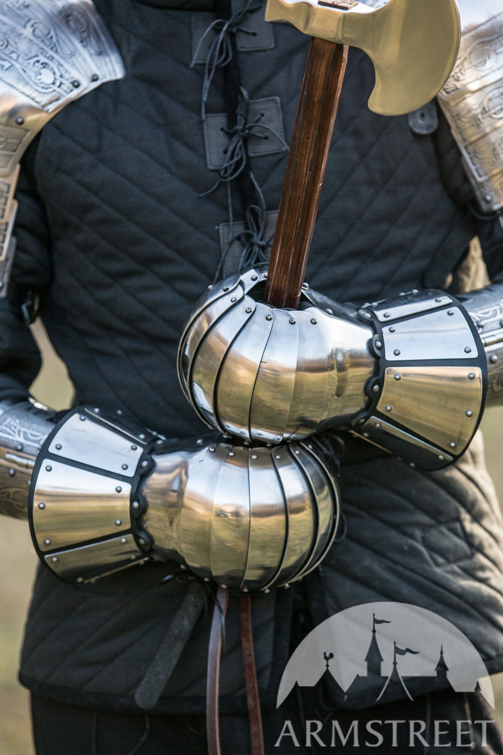 Un choix idéal pour les entraînements et les combats médiévaux. Ce joli design simple est typique pour le début du Moyen Âge – style Norman ou Slave. Ces gantelets ont la forme du pouce modernisée : la forme un peu plus concave des doigts de ce modèle aboutit à une forme plus fermée qui protège mieux le pouce des coups frontaux. Si vous avez besoin des gantelets fiables pour les entraînements ou les combats, cette paire est votre choix idéal. C’est le best-seller de cette catégorie, cas ces gantelets lamellaires vendus par ArmStreet ont reçu de nombreux retours de haute appréciation des combattants de partout dans le monde qui les utilisent depuis bien des années. Ce qui à son tour contribue au perfectionnement permanent de leur fonctionnalité et leur ergonomie.