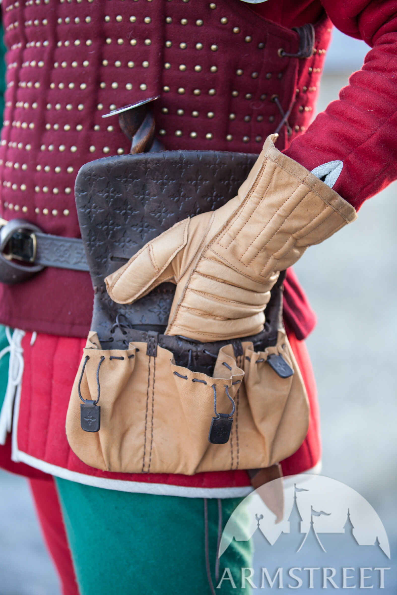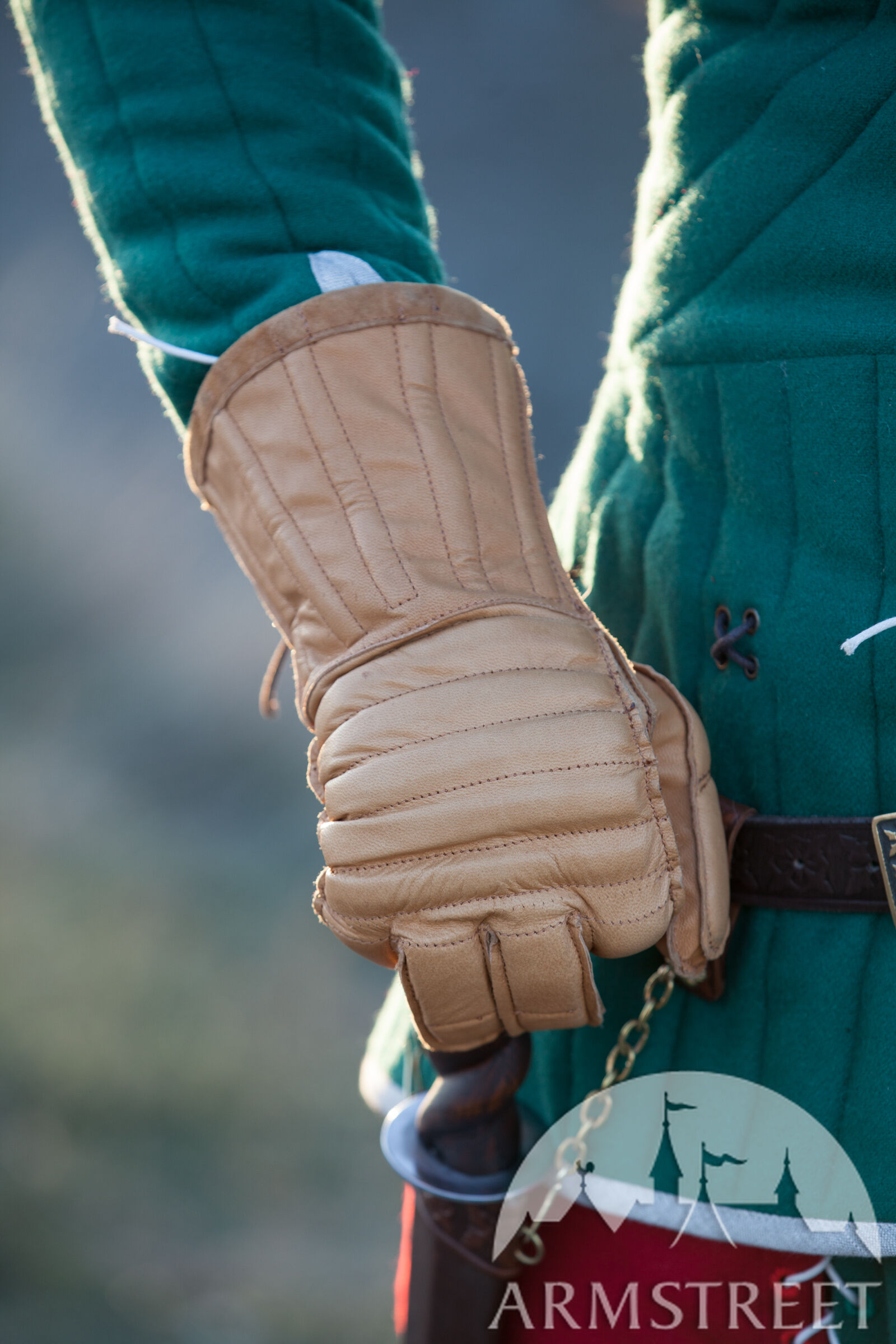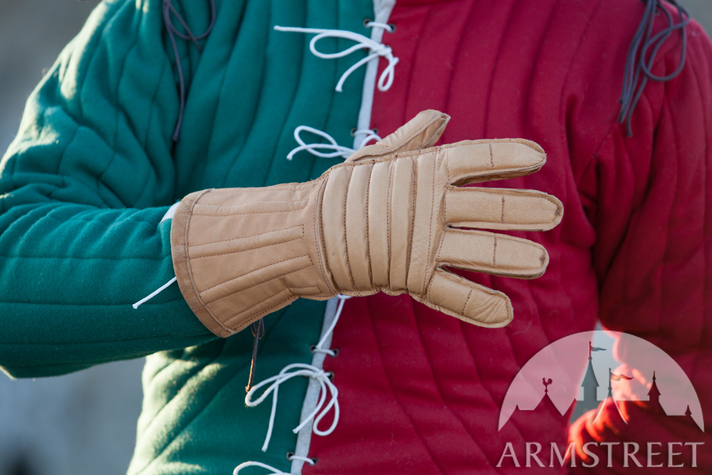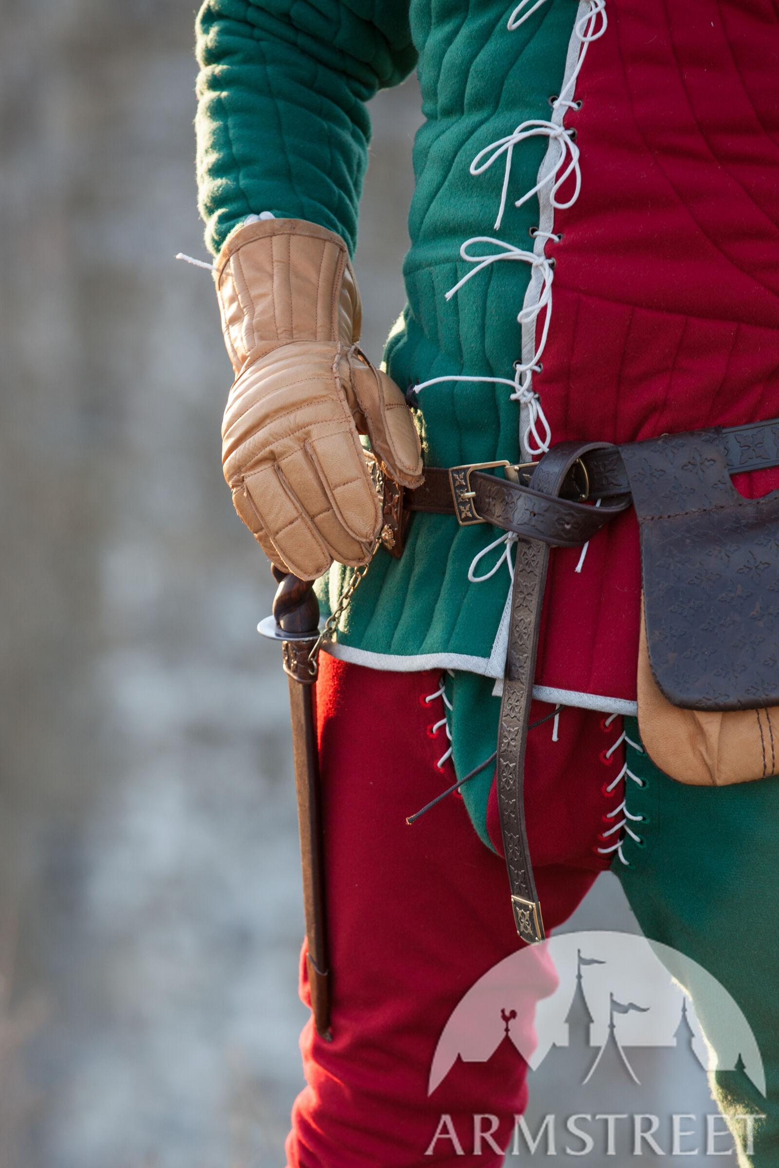 Évidemment, le gambison était un élément de rembourrage de première importance pour un combattant à l'époque – mais bien sûr pas le seul. Les gants jouaient un grand rôle : au début c'étaient des mitaines rembourrées encombrantes et gênantes. Mais avec le développement des armures les gants ont beaucoup évolué eux aussi, s'étant transformés en des gants bien ajustés à lacets.