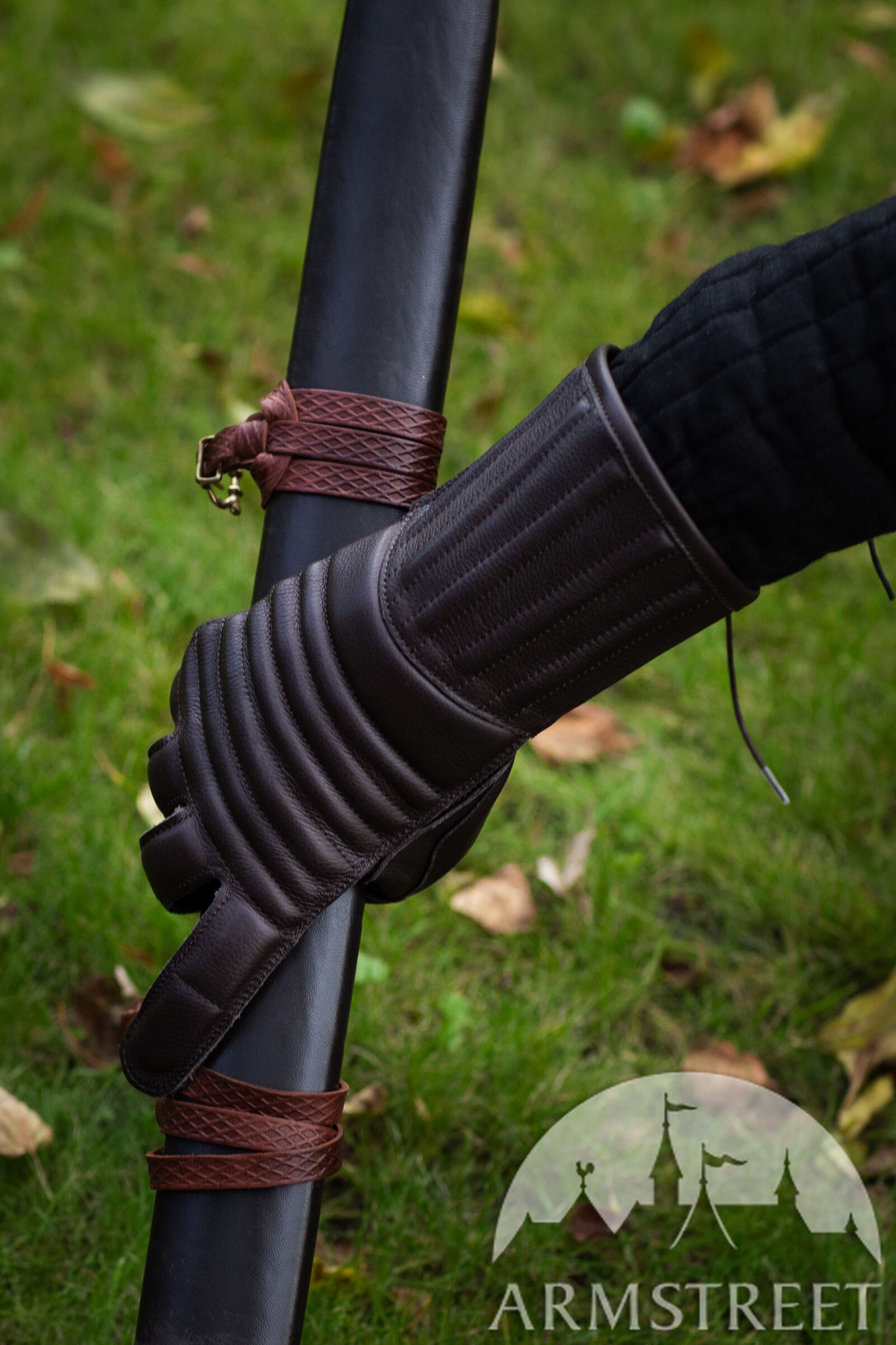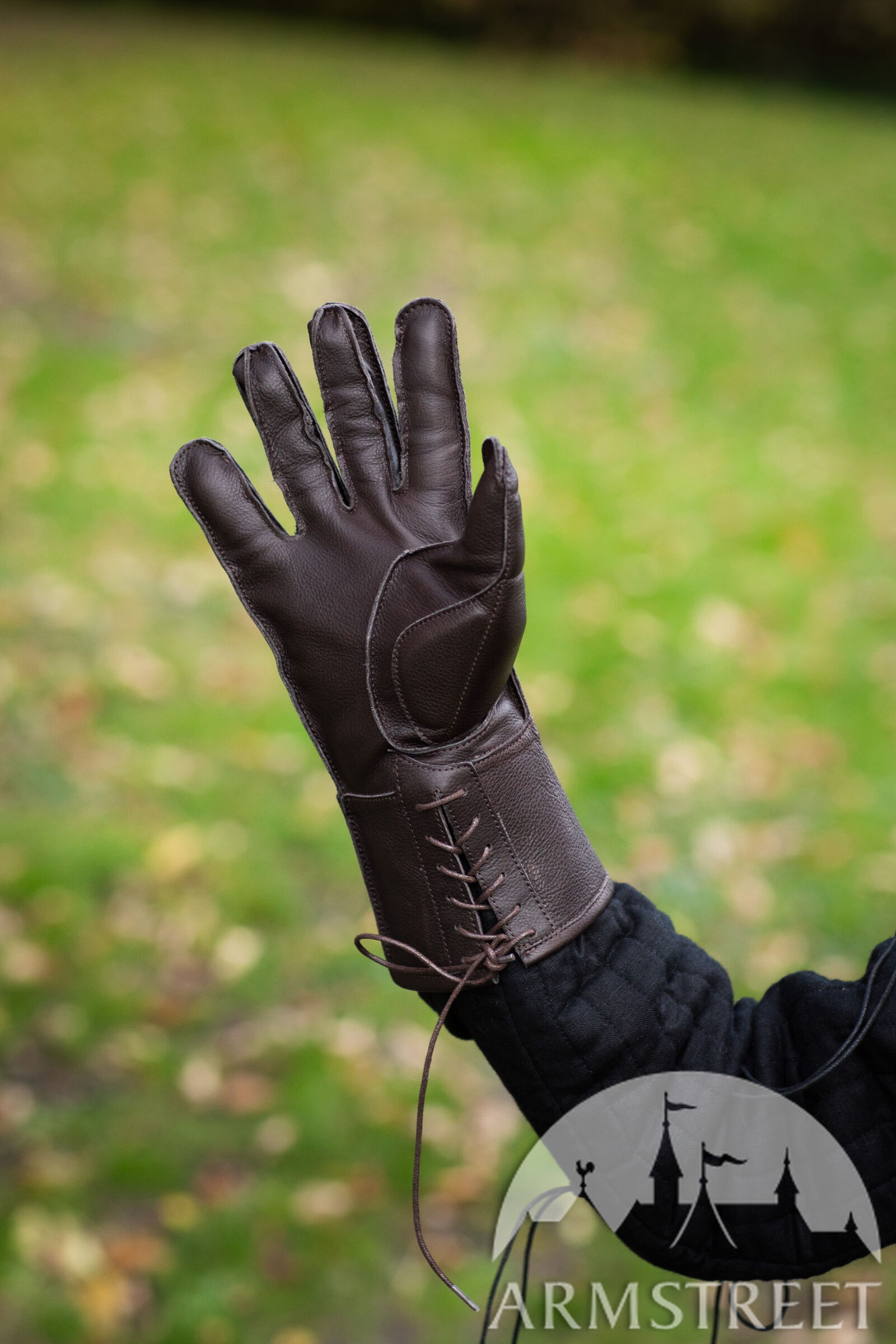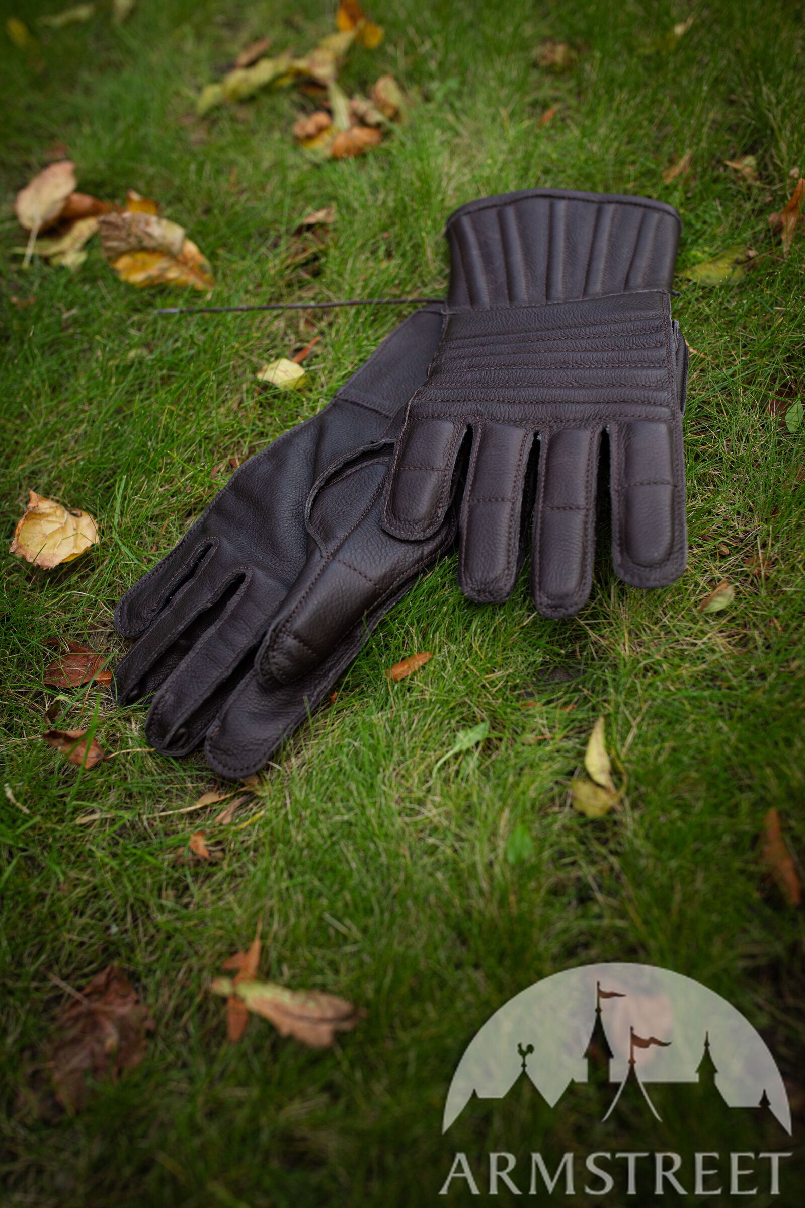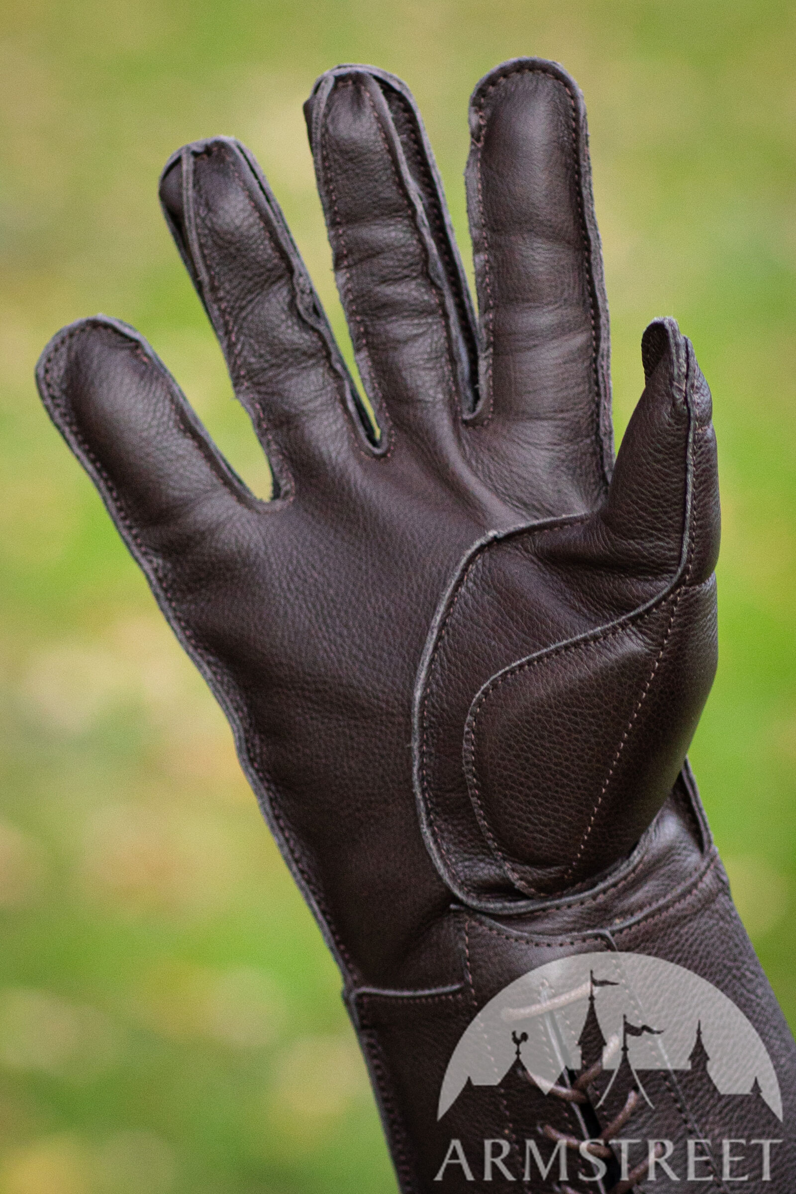 Les doigts articulés et les propriétés tactiles de cuir assurent une prise parfaite et la flexibilité maximale. Vous pouvez les porter en vous servant d’épée ou de hache. Les gants sont confectionnés de cuir véritable et rembourrés de ouatinage en mousse isolant (5 mm d'épaisseur). Les manchettes plutôt longues protègent les poignets.