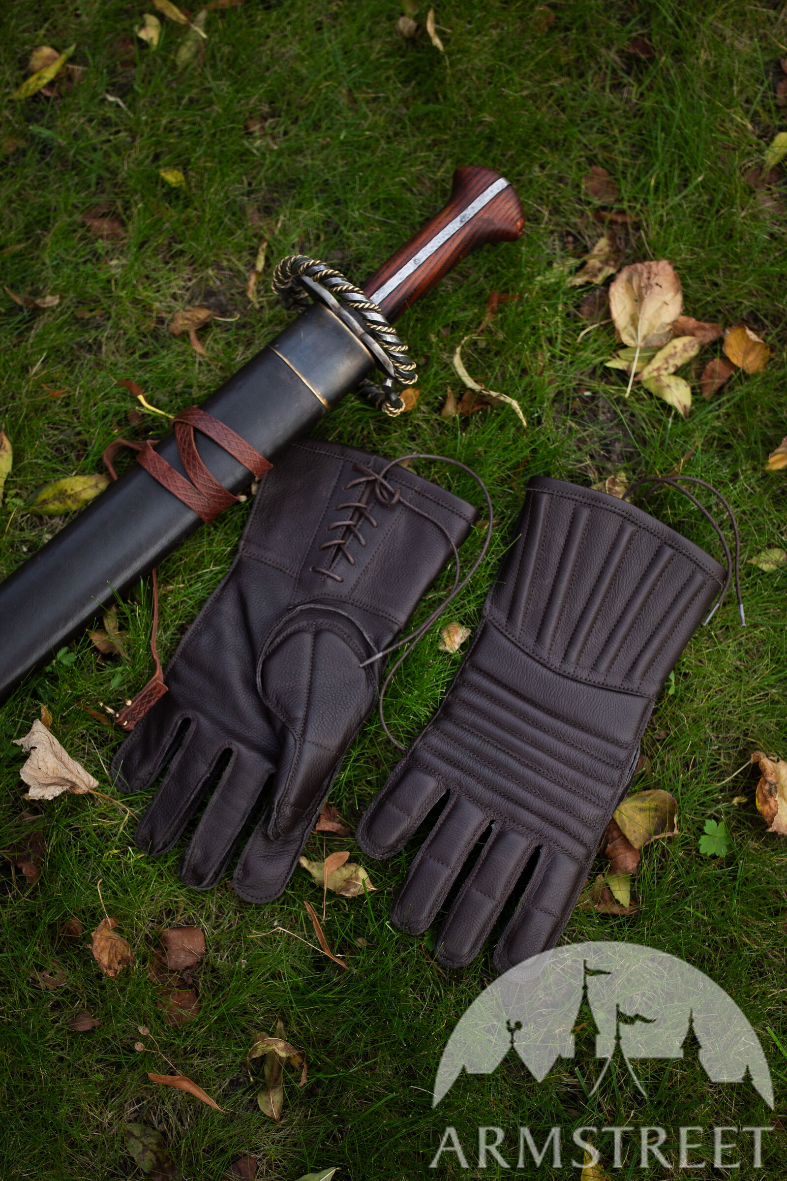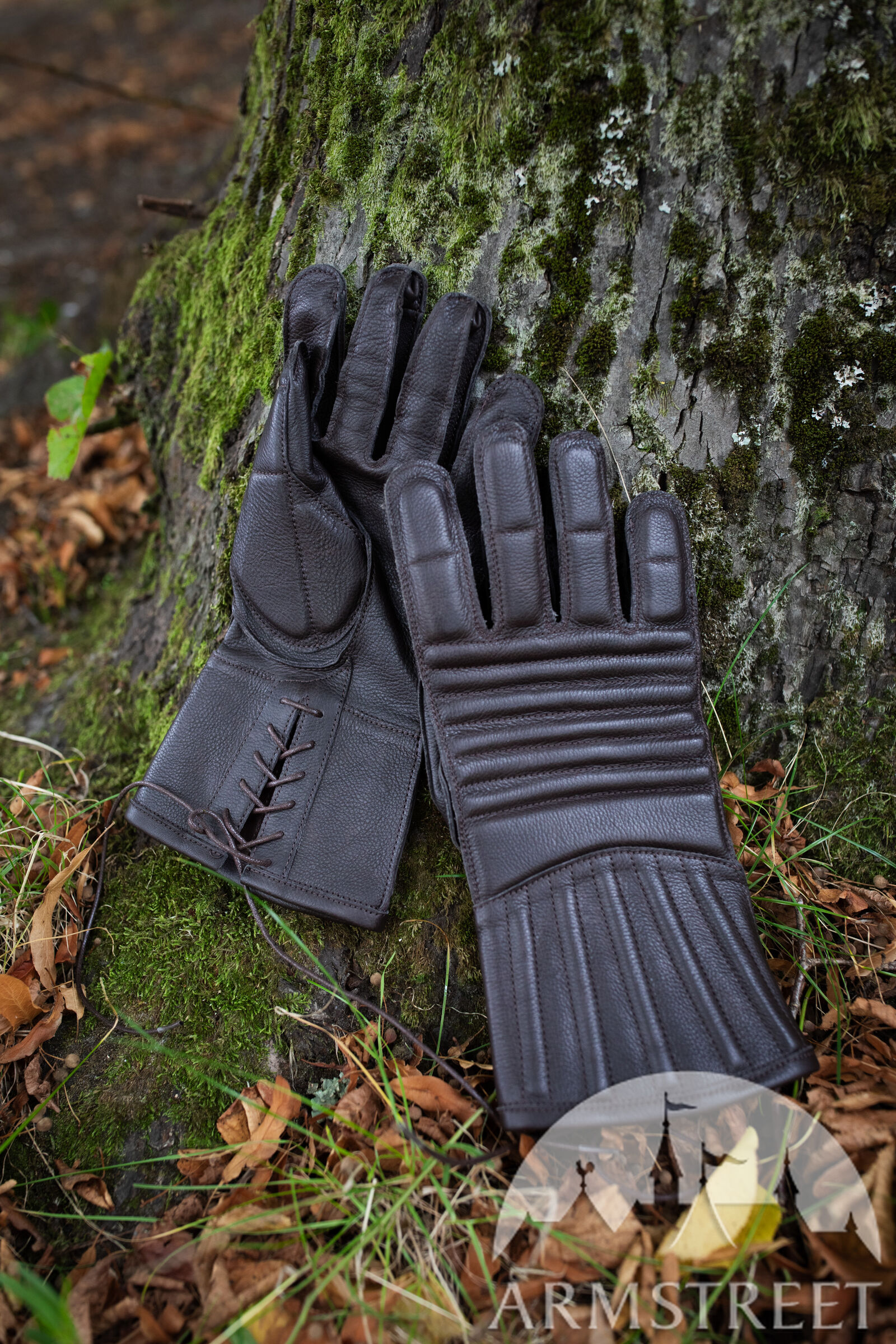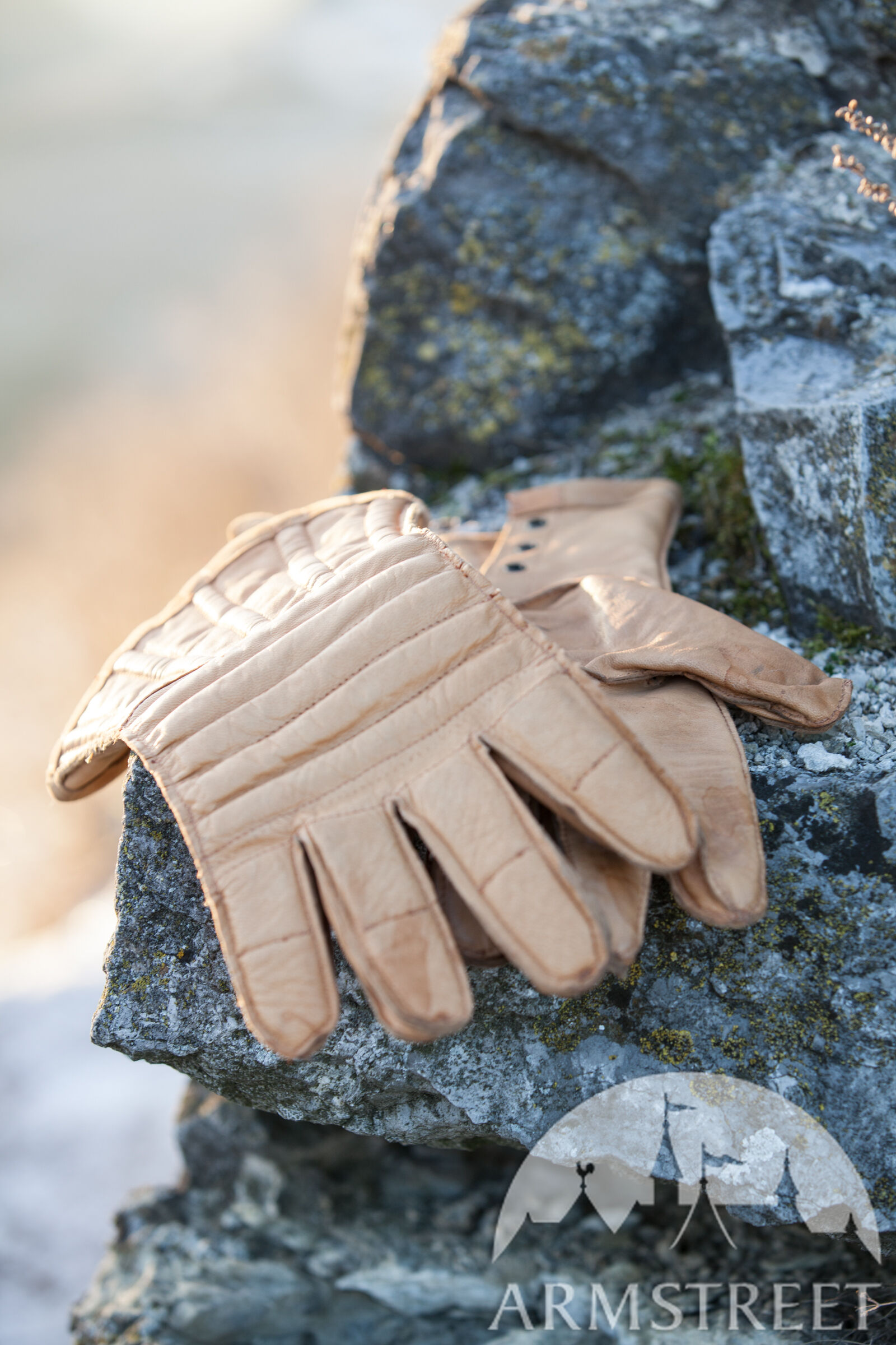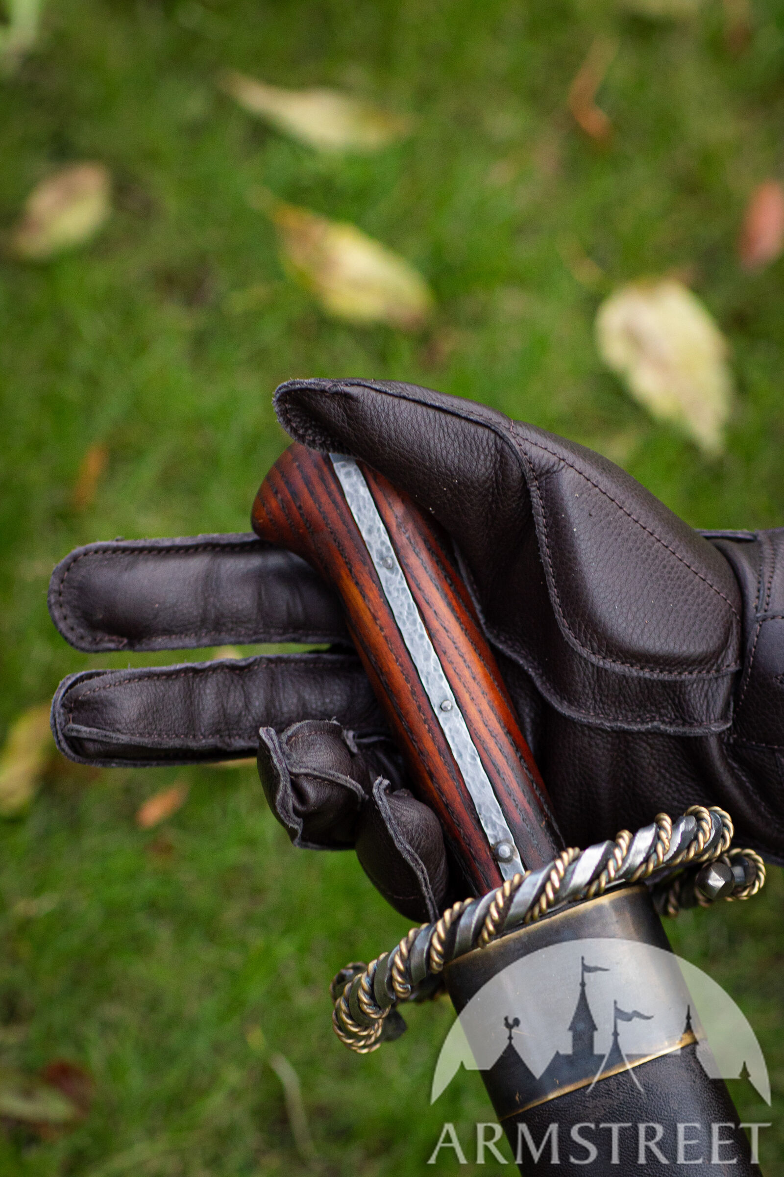 Les doigts articulés et les propriétés tactiles de cuir assurent une prise parfaite et la flexibilité maximale. Vous pouvez les porter en vous servant d’épée ou de hache. Les gants sont confectionnés de cuir véritable et rembourrés de ouatinage en mousse isolant (5 mm d'épaisseur). Les manchettes plutôt longues protègent les poignets.