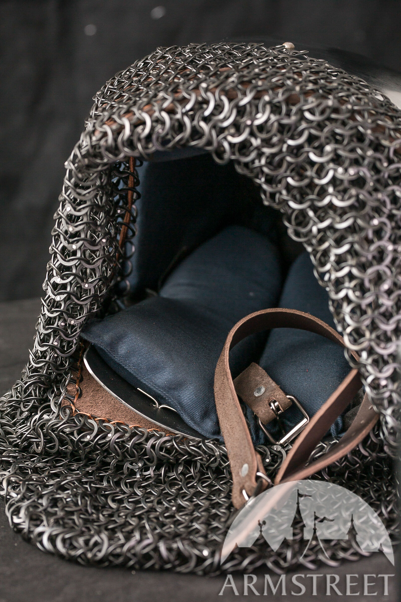 C’est un bon casque d’armure. Sa conception est basée sur le casque bassinet klappvisor médiéval et est martelé à la main en acier inoxydable de 2 mm (jauge 14). C'est superbe, entièrement fait main et poli à la main ! Armure de combat excellente.