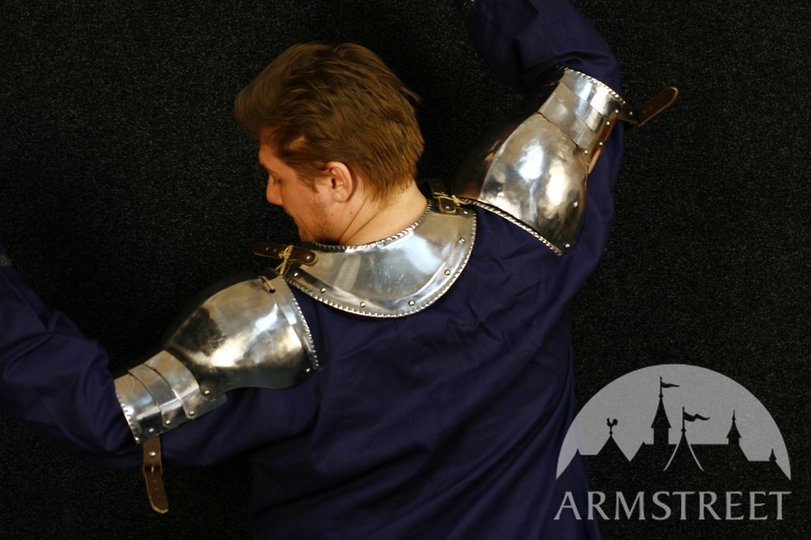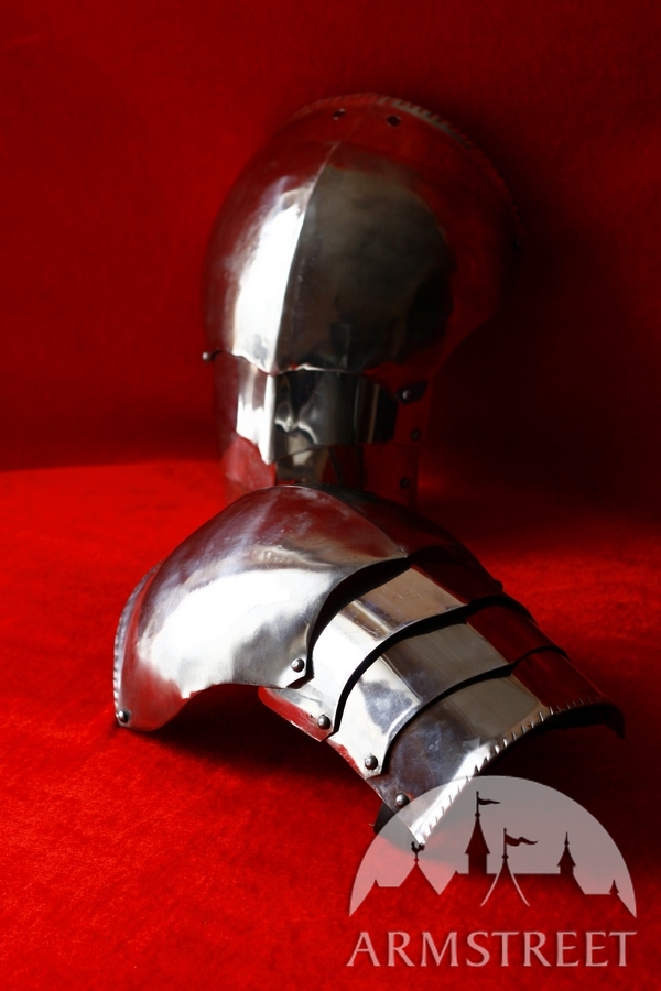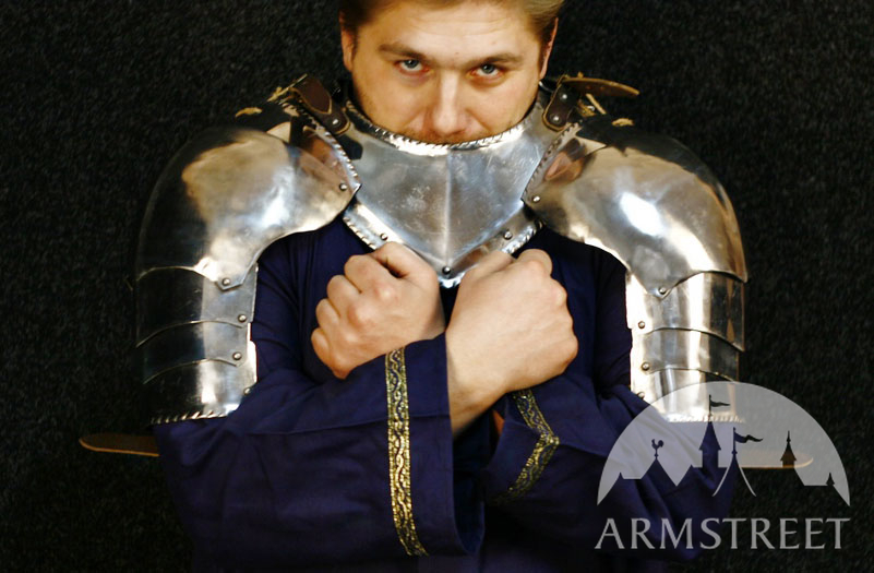 Both gorget and spaulders are available in our store separately in cold-rolled and stainless steel versions