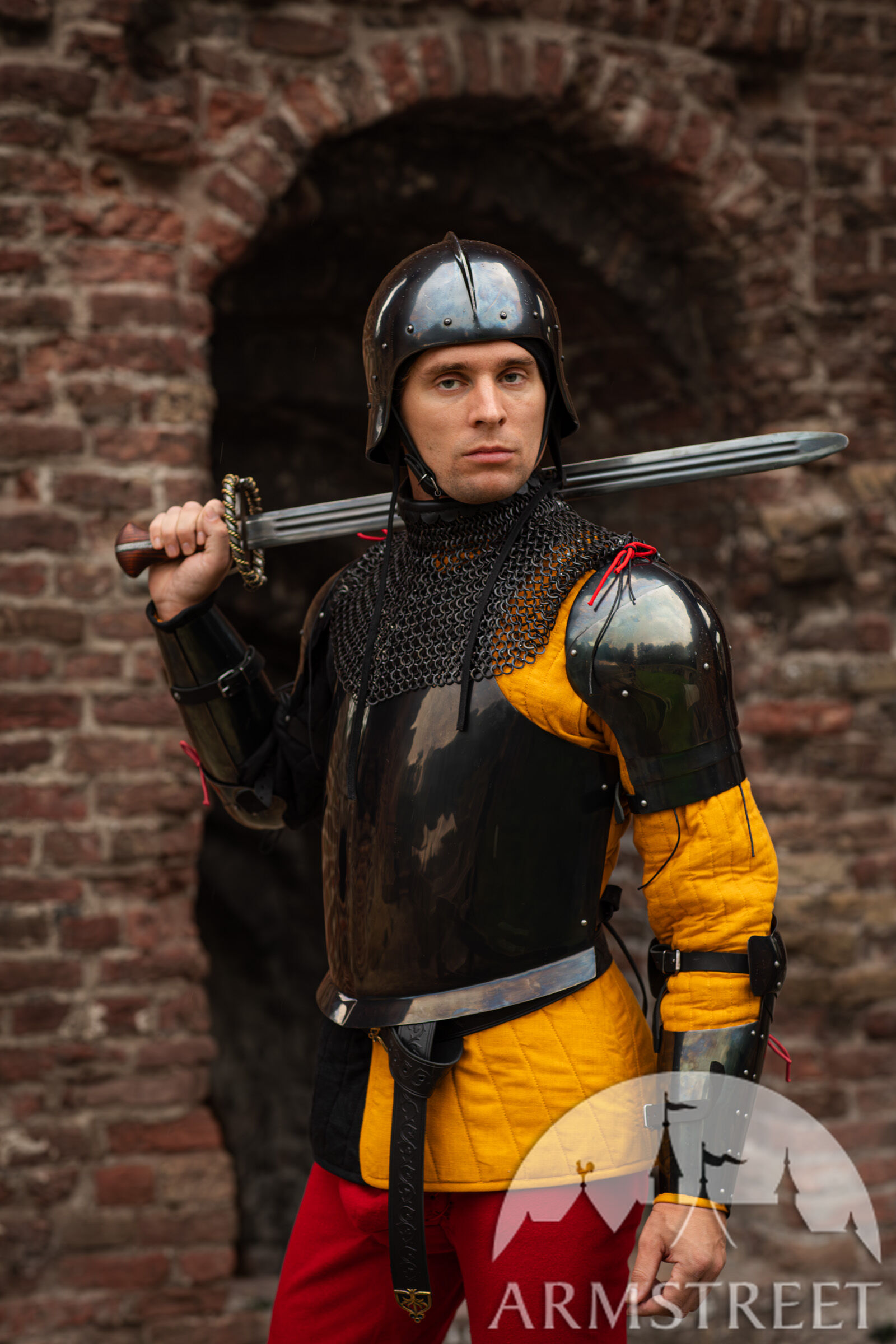 Les Arts Martiaux Médiévaux sont par leur nature des sports dangereux et ArmStreet ne se tient pas responsable de toutes blessures subies par les personnes portant cette armure au cours de telles activités. Nous soulignons l’importance de l’entraînement, de la qualité d’armure et des armes ainsi que la supervision compétente pendant ces activités. La sécurité de tous les participants est uniquement la responsabilité du combattant portant cette armure et de son adversaire.