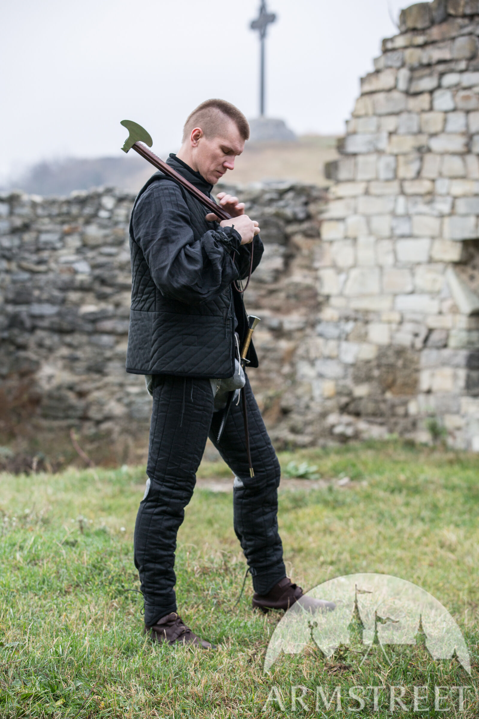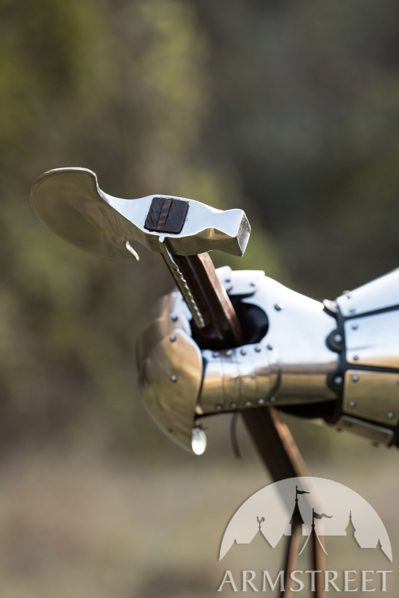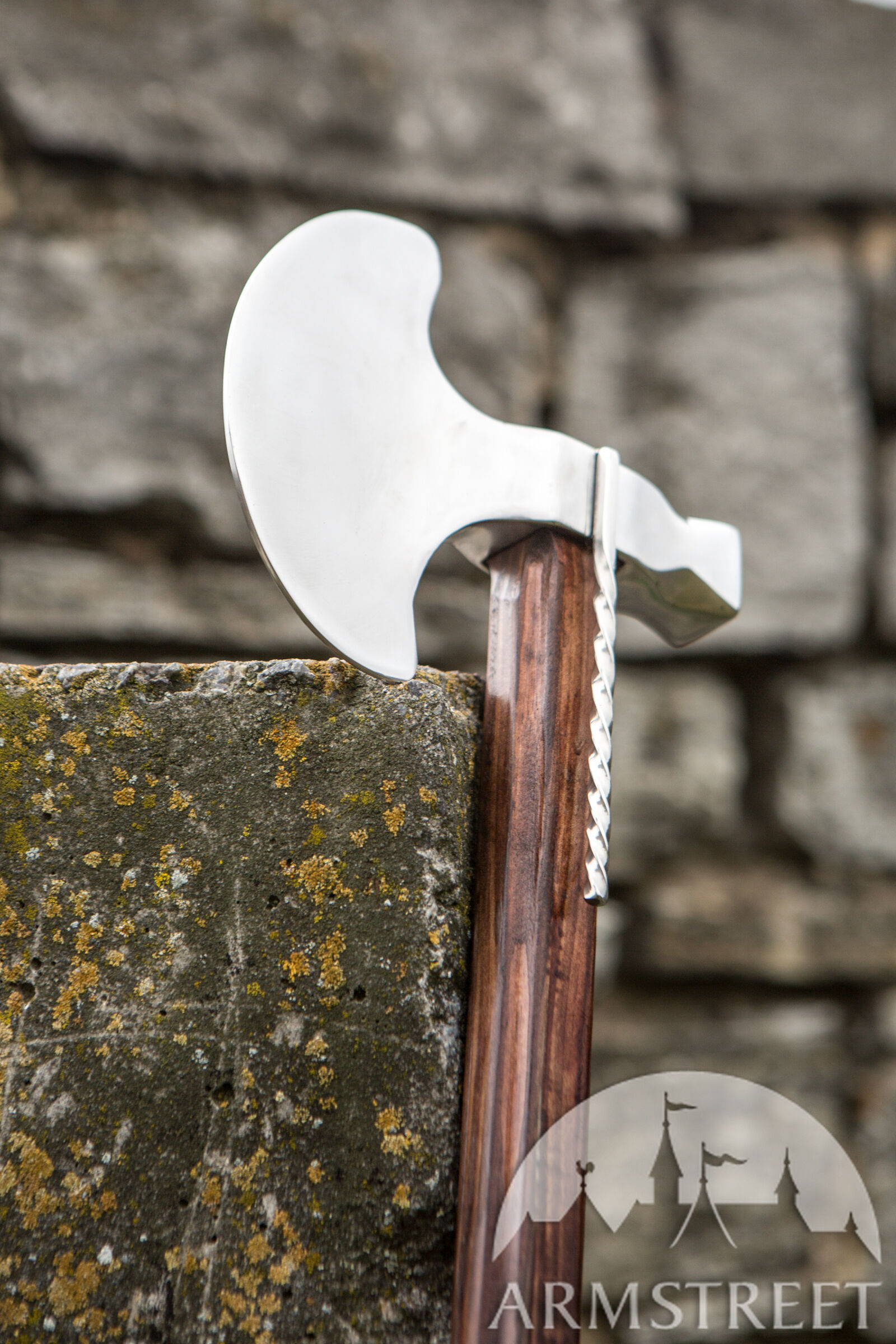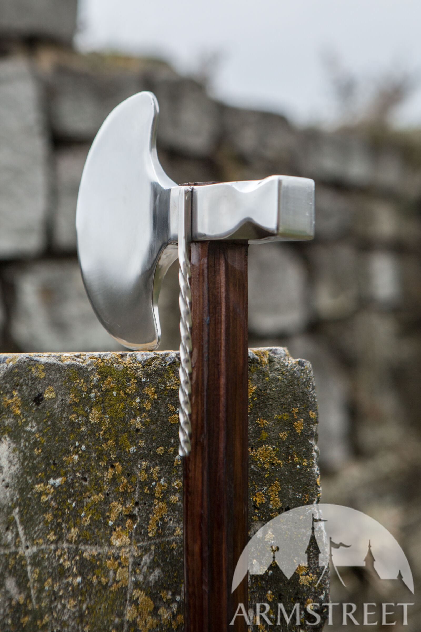 La hache était plus facile à fabriquer et redoutablement efficace contre les adversaires portant une armure légère ; même les armures de plates pouvaient être endommagées, surtout si l’on utilisait le côté de la tête de hache ressemblant à une masse.