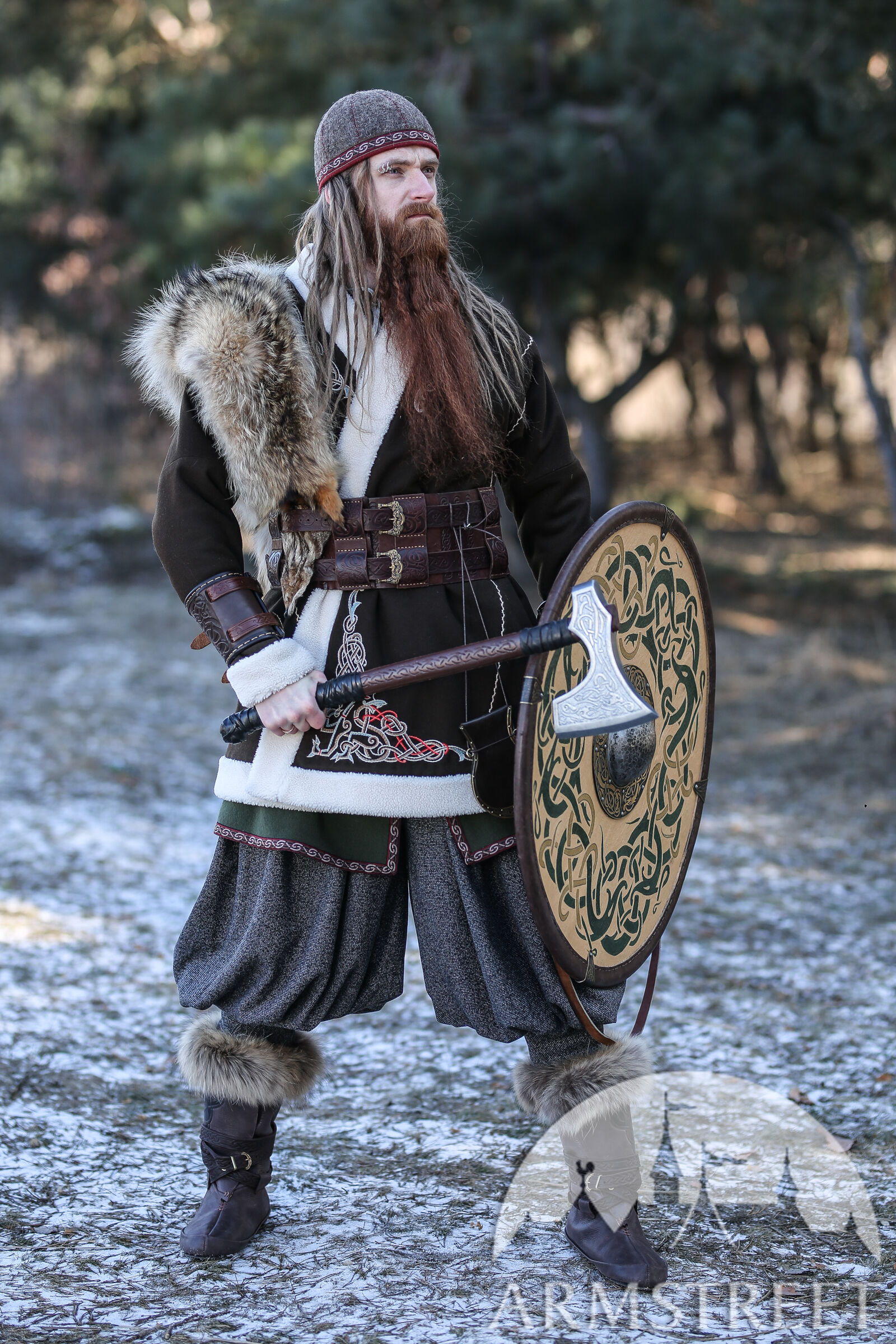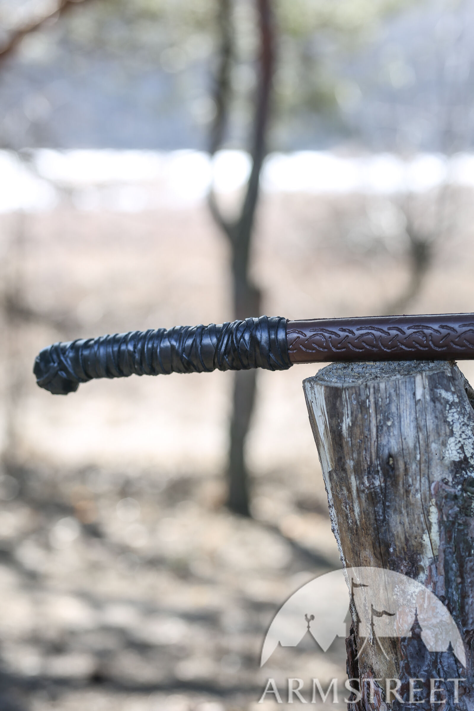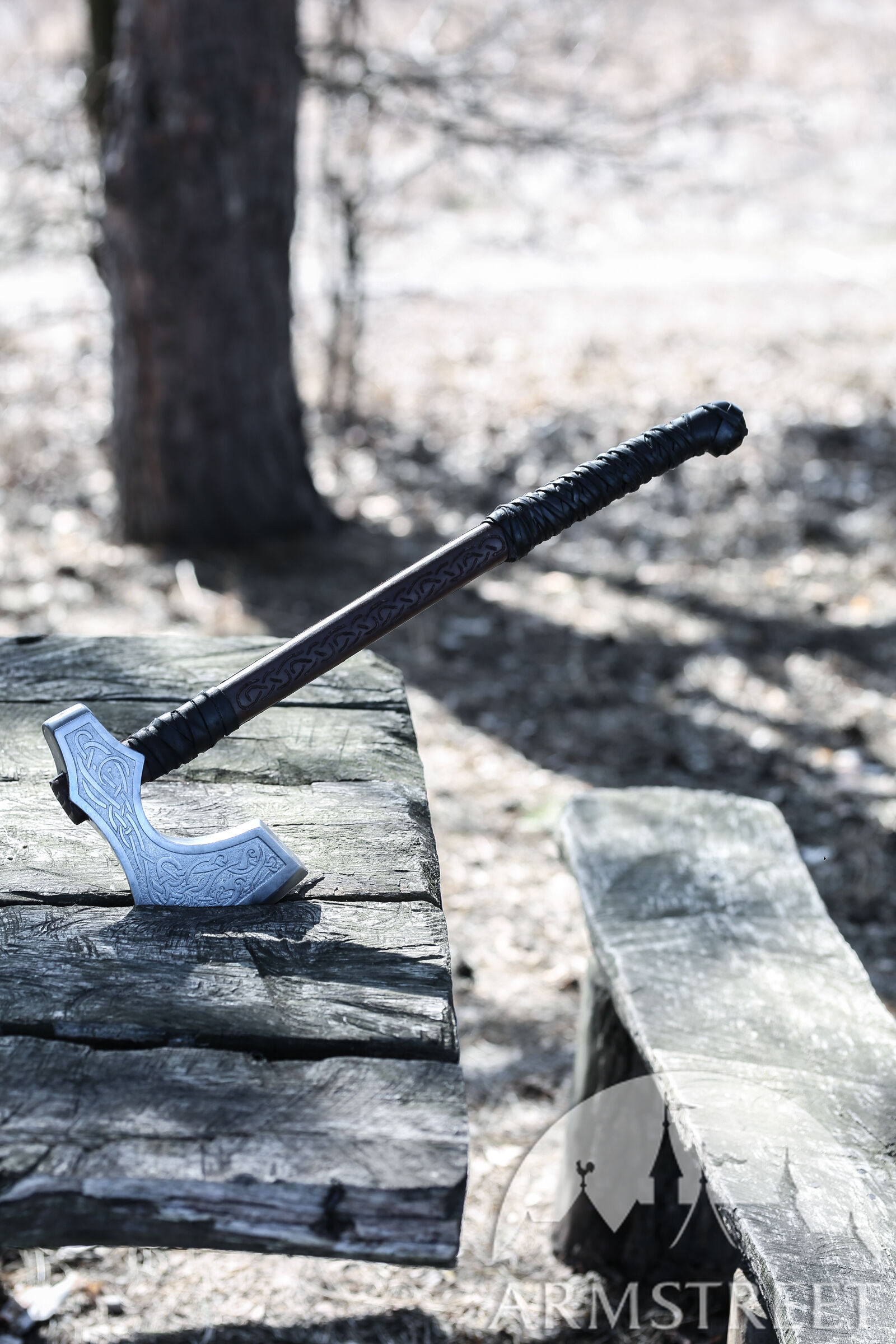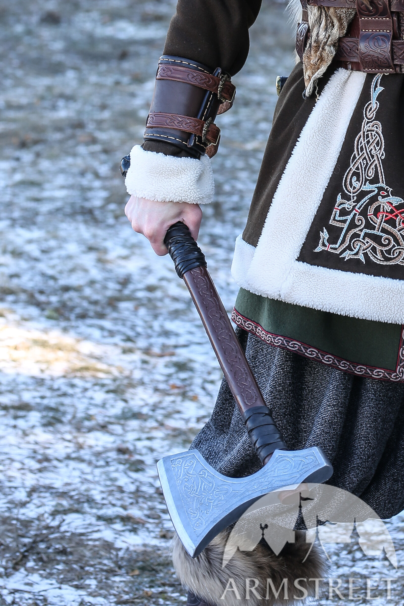 Tous les designs de ce type d’arme sont une invention exclusive d’ArmStreet créés par notre équipe de designers et imitent et apportent une nouvelle vision à l’héritage artistique des Vikings. Le motif sur le fer de hache représente les loups qui s’entrelacent. Un motif à l’entrelacs est « sculpté » dans le manche « en bois » de la hache.