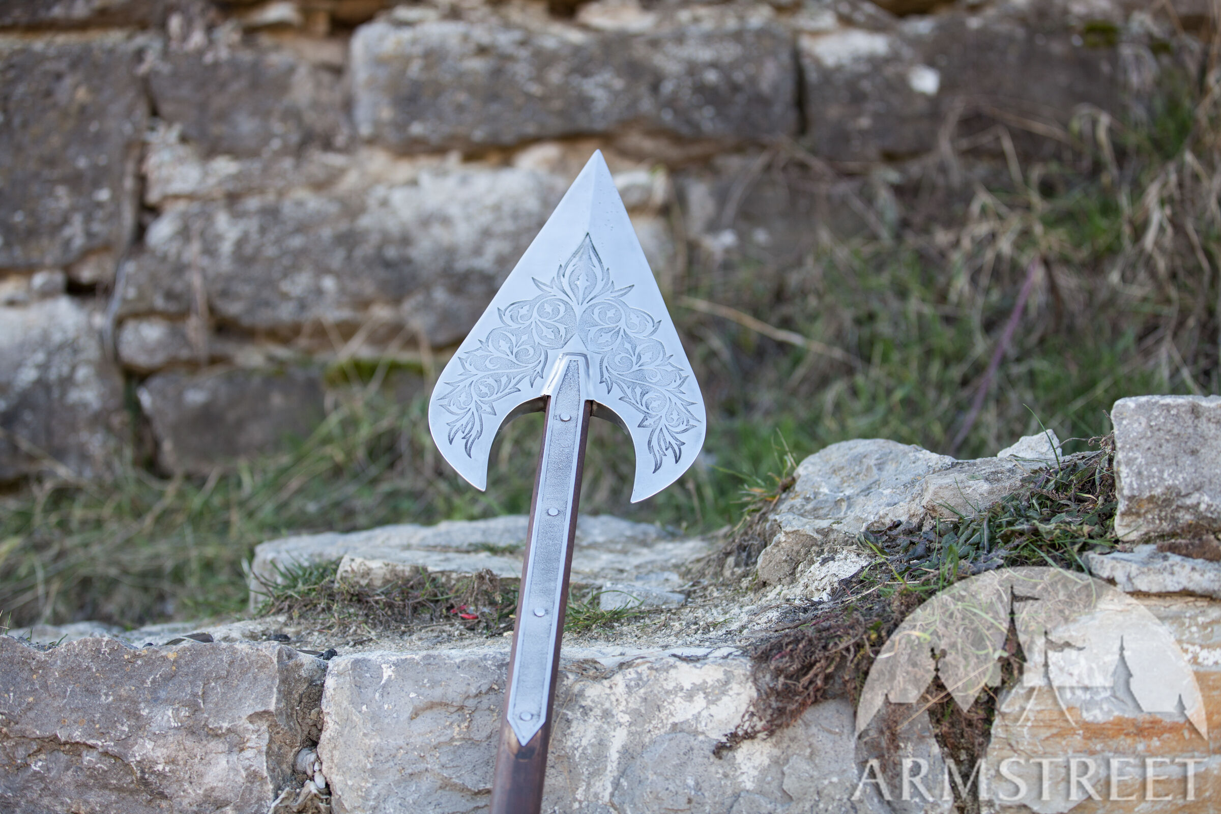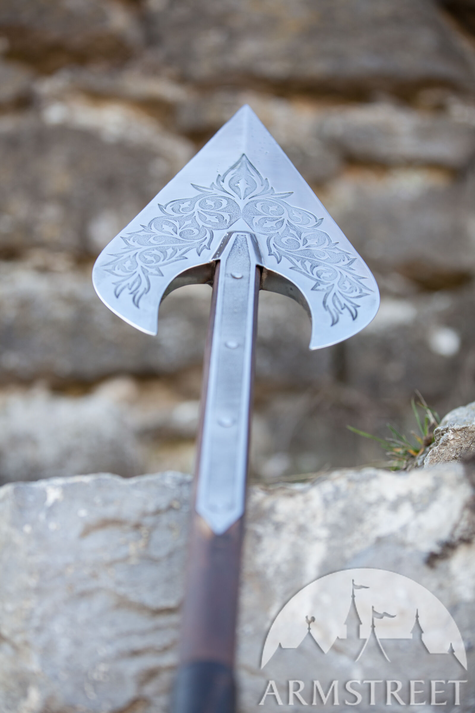 Tête de hallebarde décorative en acier inoxydable gravé