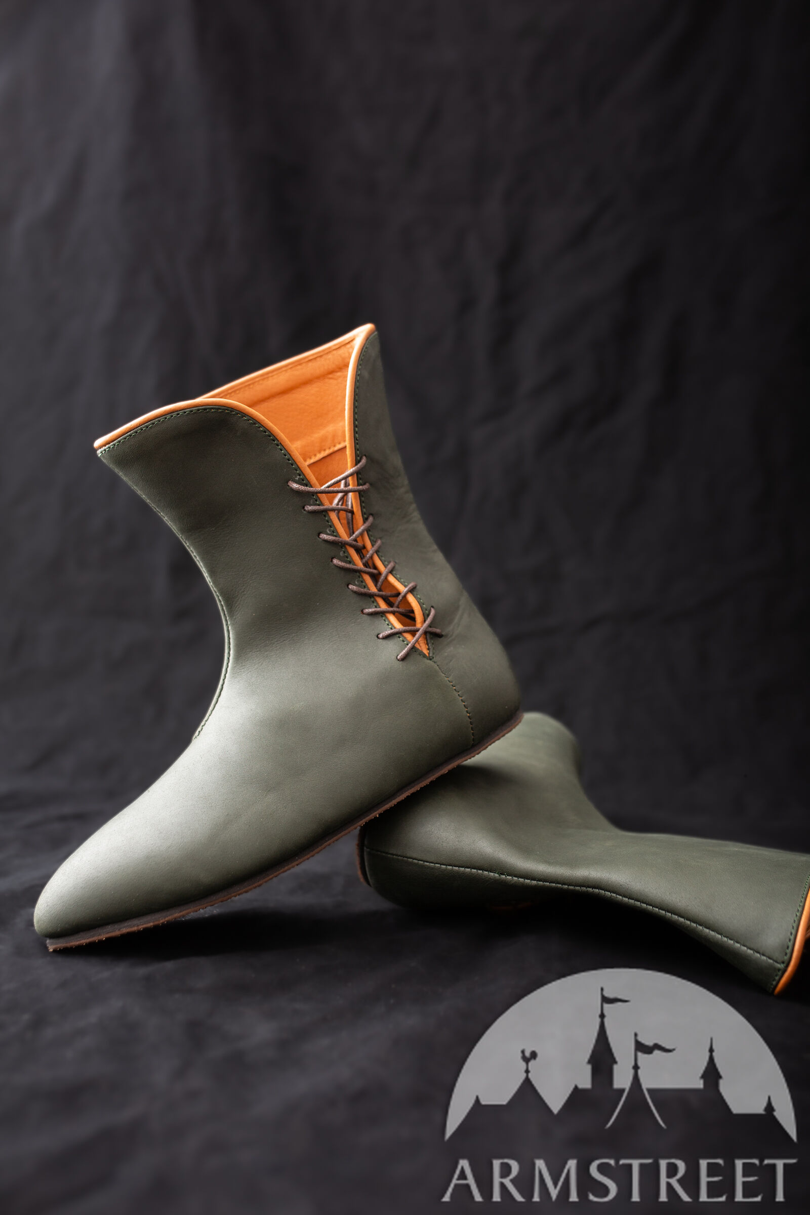 Dotées d’une silhouette élégante, de bordures contrastée et d’une doublure, ces chaussures en cuir sont parfaites pour ajouter une touche authentique à votre ensemble médiéval. Leur coupe ajustée et leurs bouts allongés offrent un look gothique flatteur qui complète n’importe quelle tenue de la fin du Moyen Âge – ou toute autre tenue de votre garde-robe, car vous ne voudrez probablement aucune autre paire de chaussures médiévales après avoir essayé celles-ci.