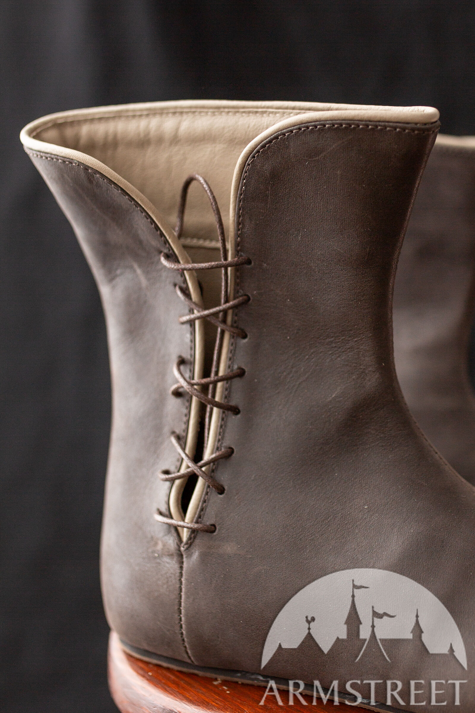 Nous concevons nos chaussures médiévales pour qu’elles soient à la fois fonctionnelles et belles. Ces bottes comportent une fente pratique sur un côté qui permet de les mettre et enlever très facilement. L’ajout de laçage assure un ajustement personnalisable.