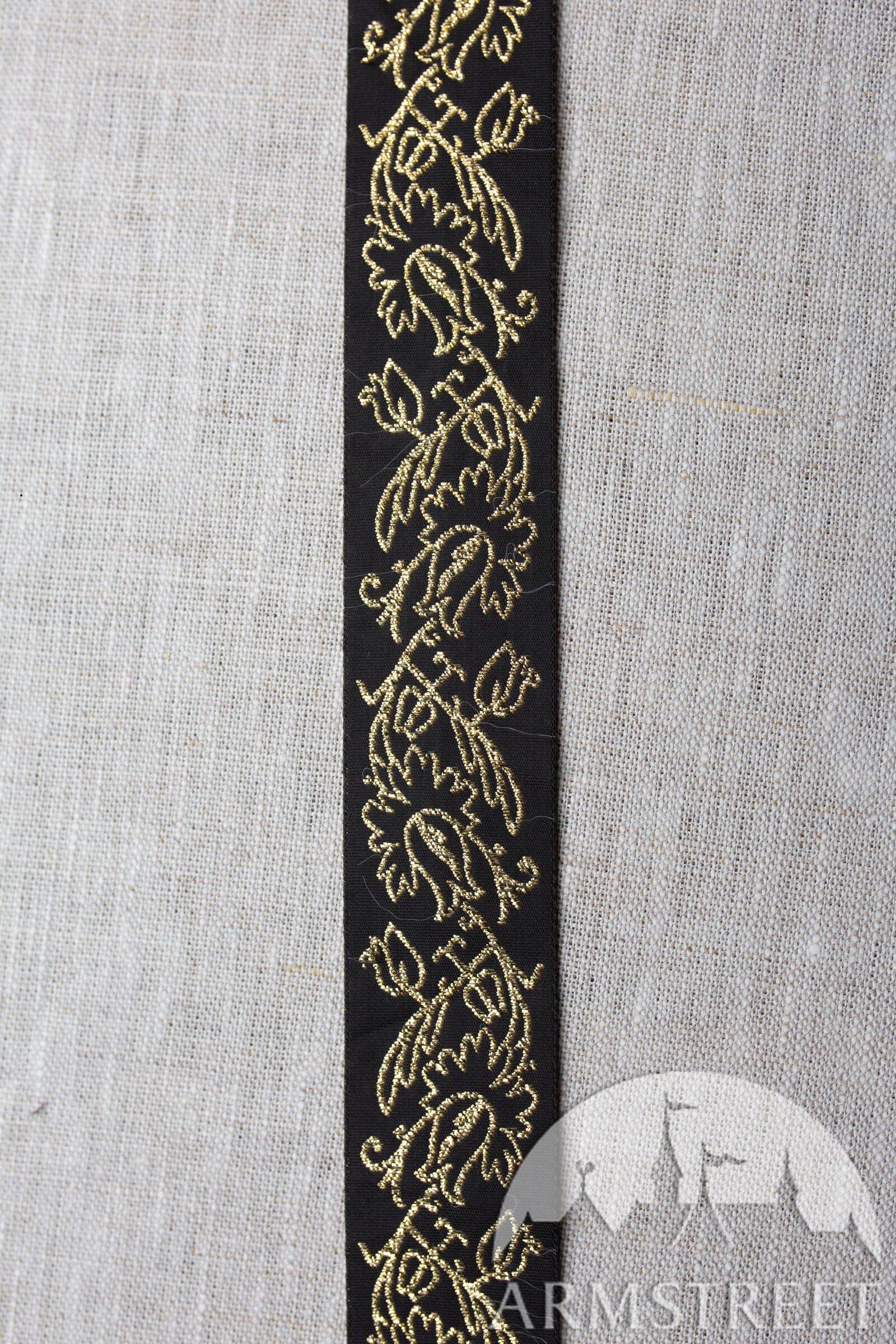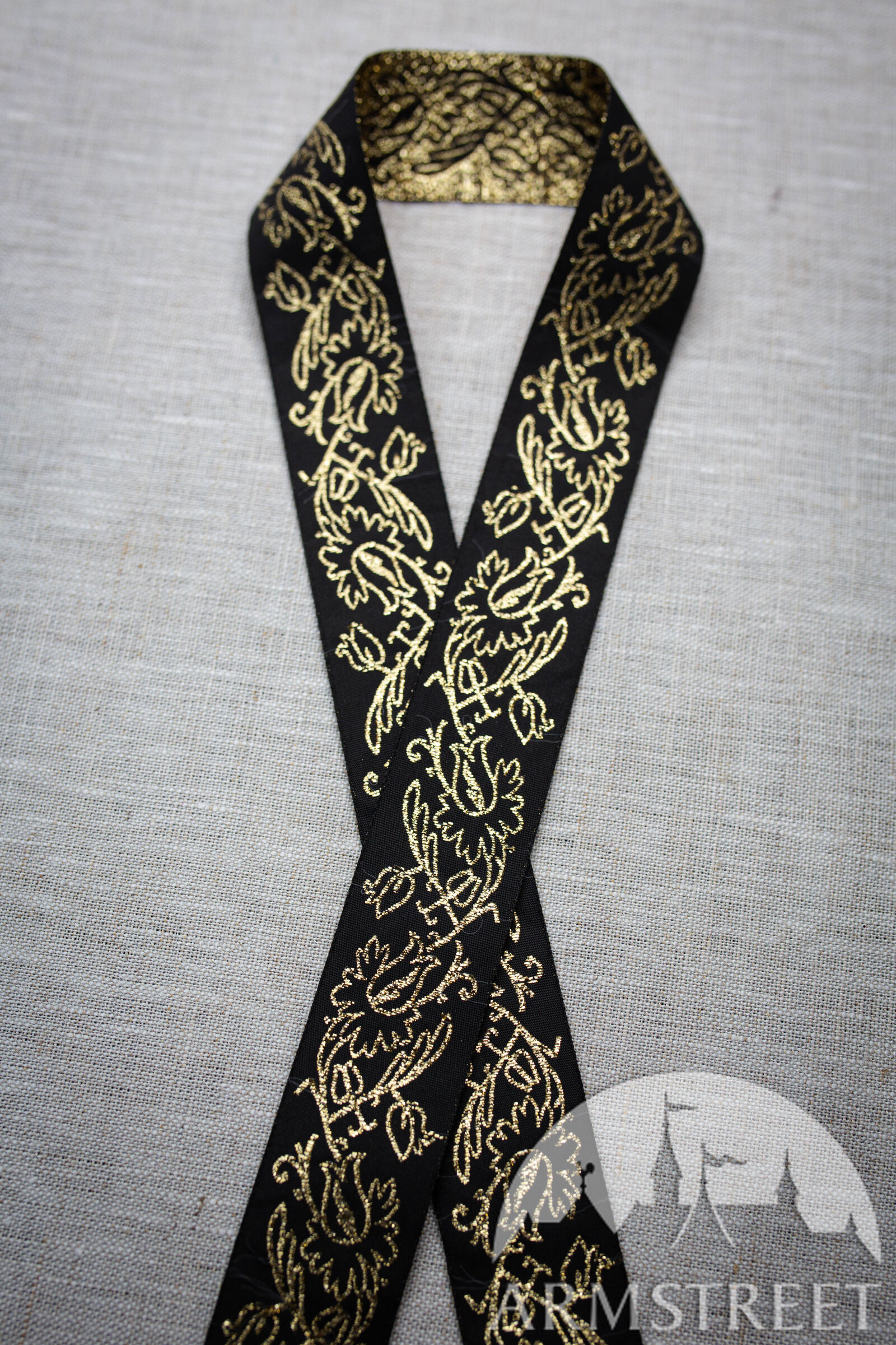 Cette bordure présente de délicats ornements d'épines dorées sur fond noir - une touche finale contrastée délicate adaptée à divers projets de costumes médiévaux DIY.