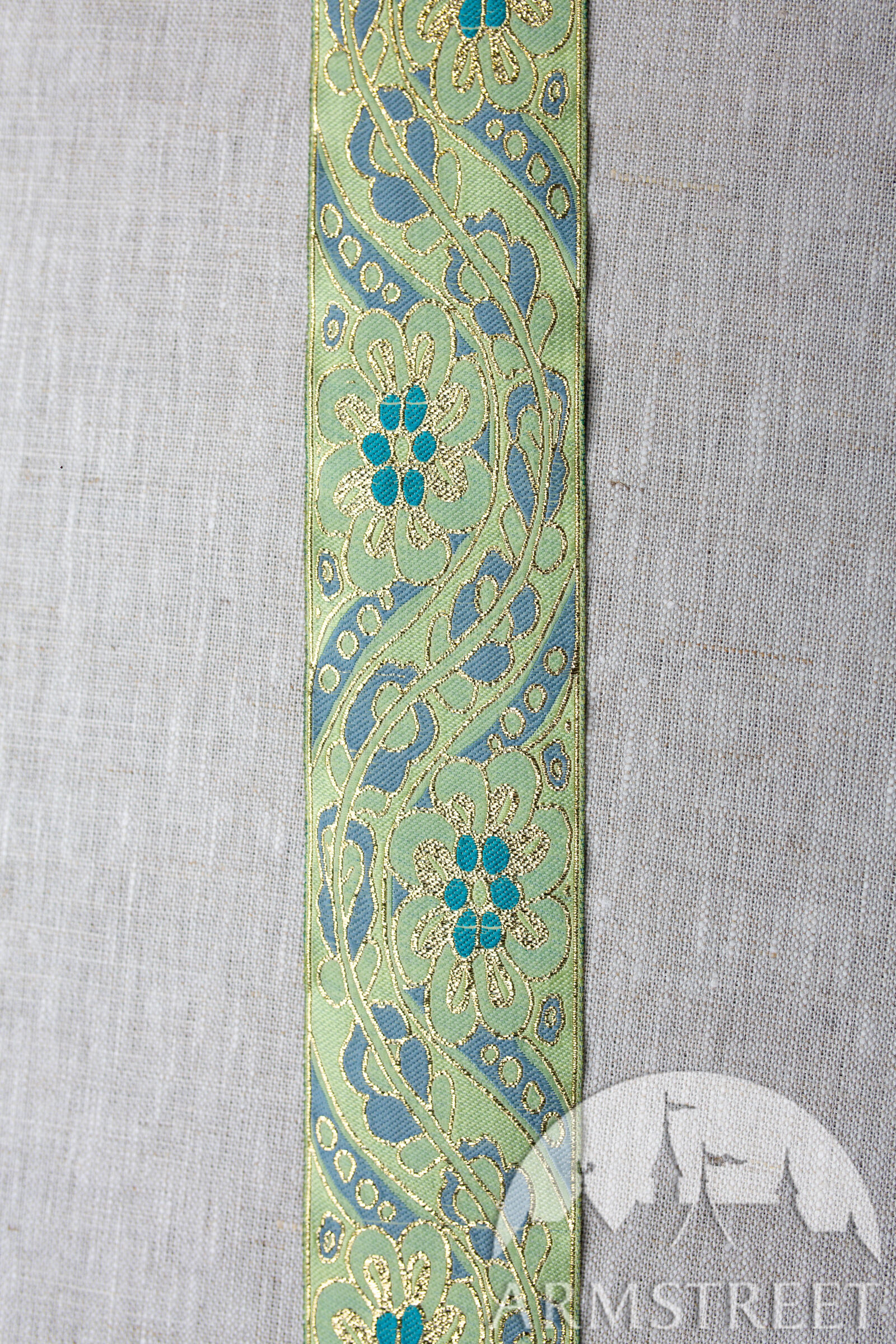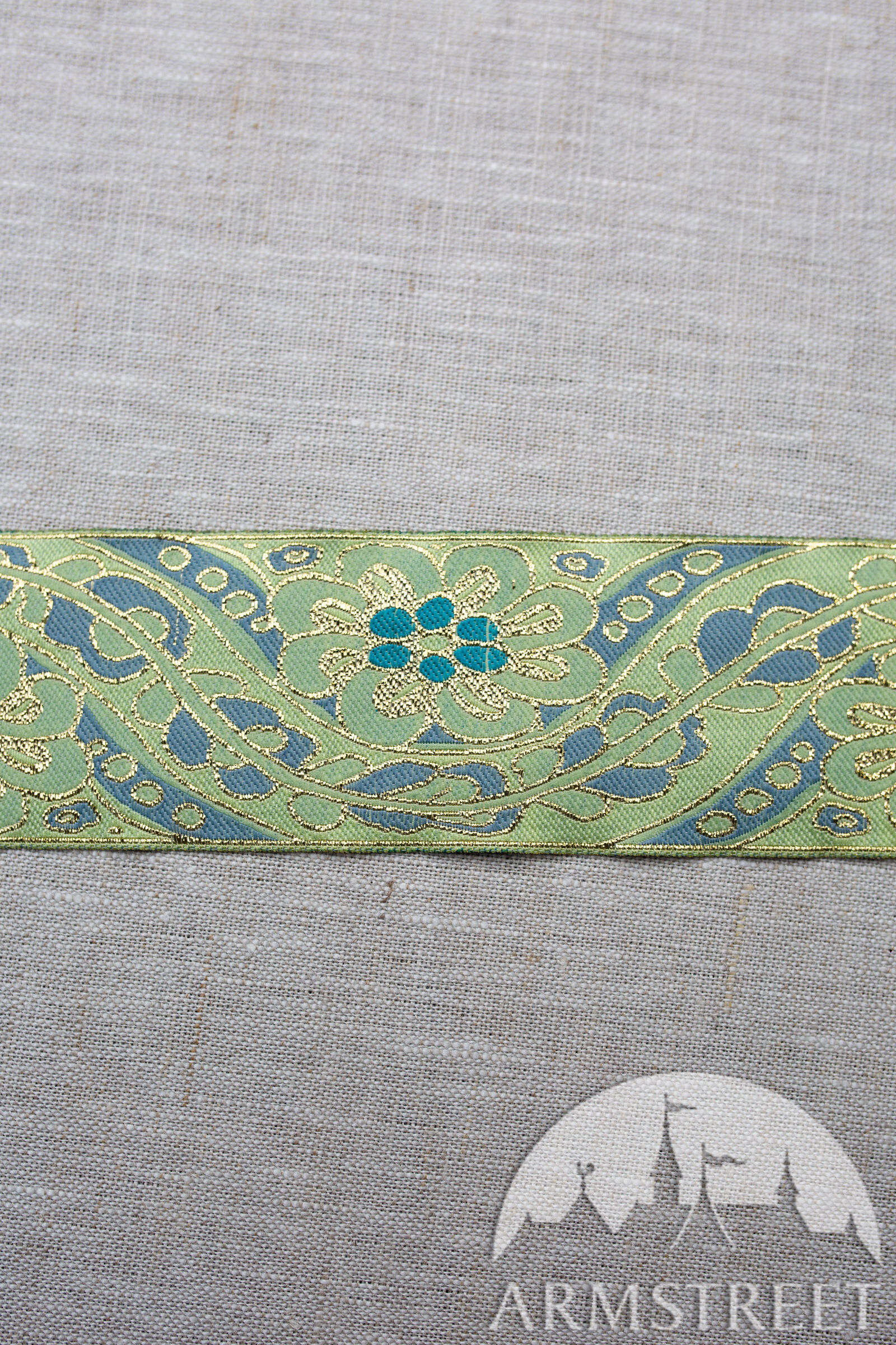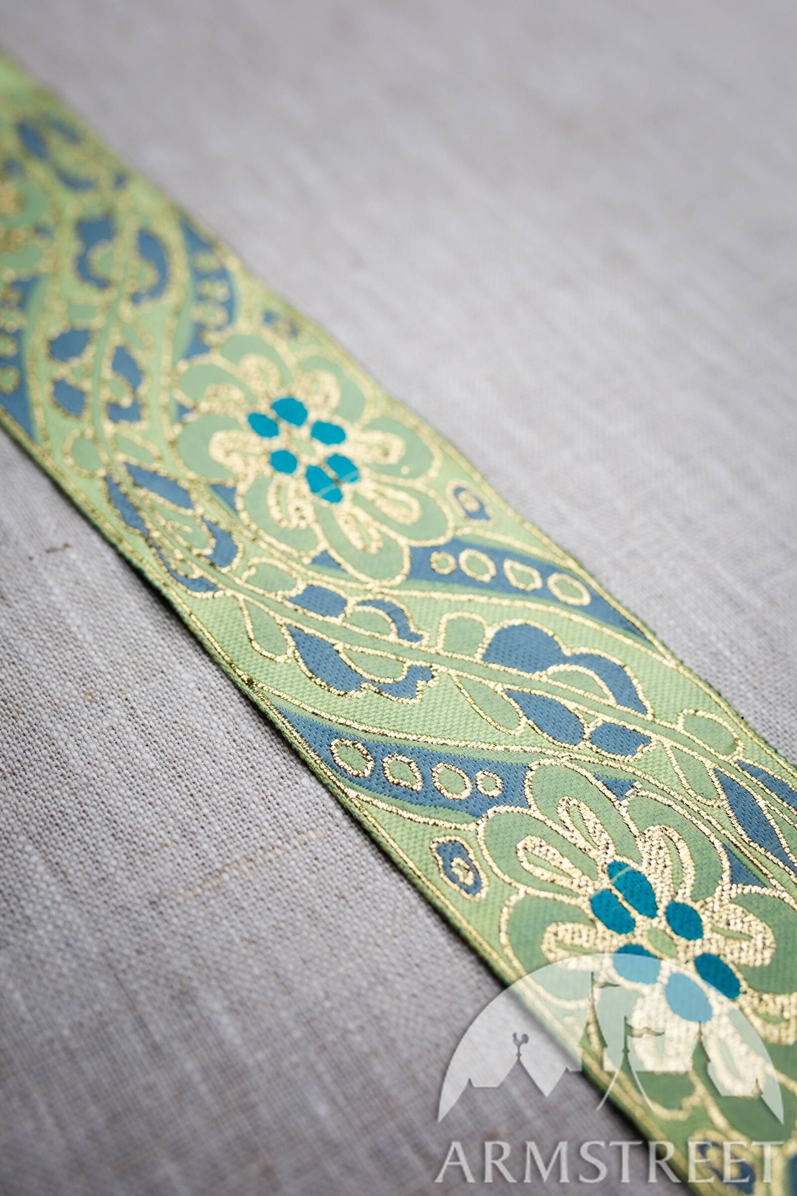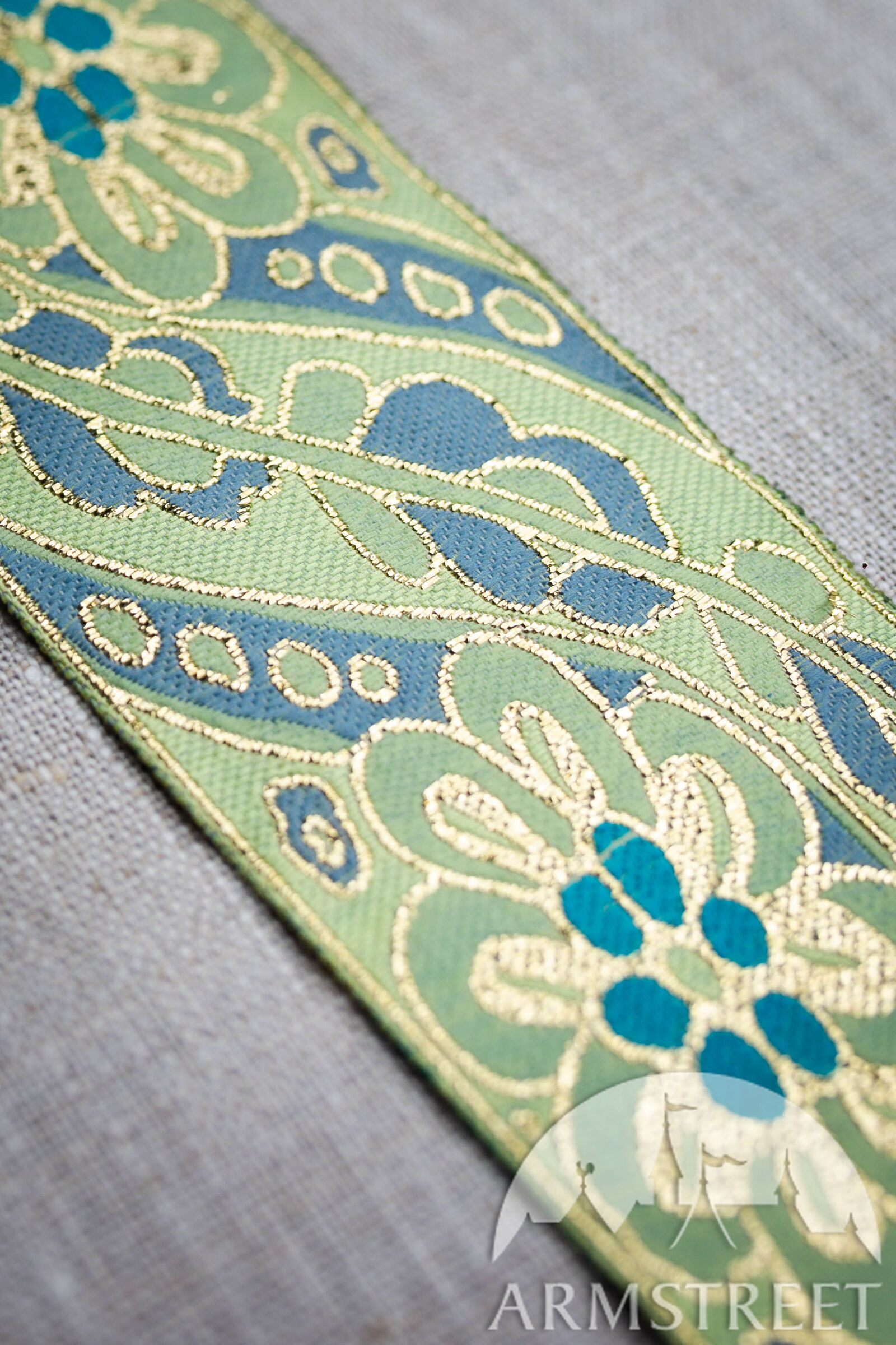 Cette superbe robe du début de l'époque ArmStreet a inspiré de nombreux best-sellers encore disponibles dans notre boutique en ligne. Mais c'est maintenant à votre tour de jouer avec cette belle bordure large. Faites-vous partie des heureux propriétaires de la robe ou du corset « Maîtresse des collines » qui ont toujours rêvé d'ajouter un accessoire à votre tenue médiévale préférée ? Ou peut-être aviez-vous prévu de faire quelques ajustements ? Ou de créer quelque chose de complètement nouveau et qui n'a rien à voir avec le costume original ? Comptez simplement le nombre de mètres dont vous auriez besoin et nous vous les enverrons bien volontier depuis le stock en un rien de temps !