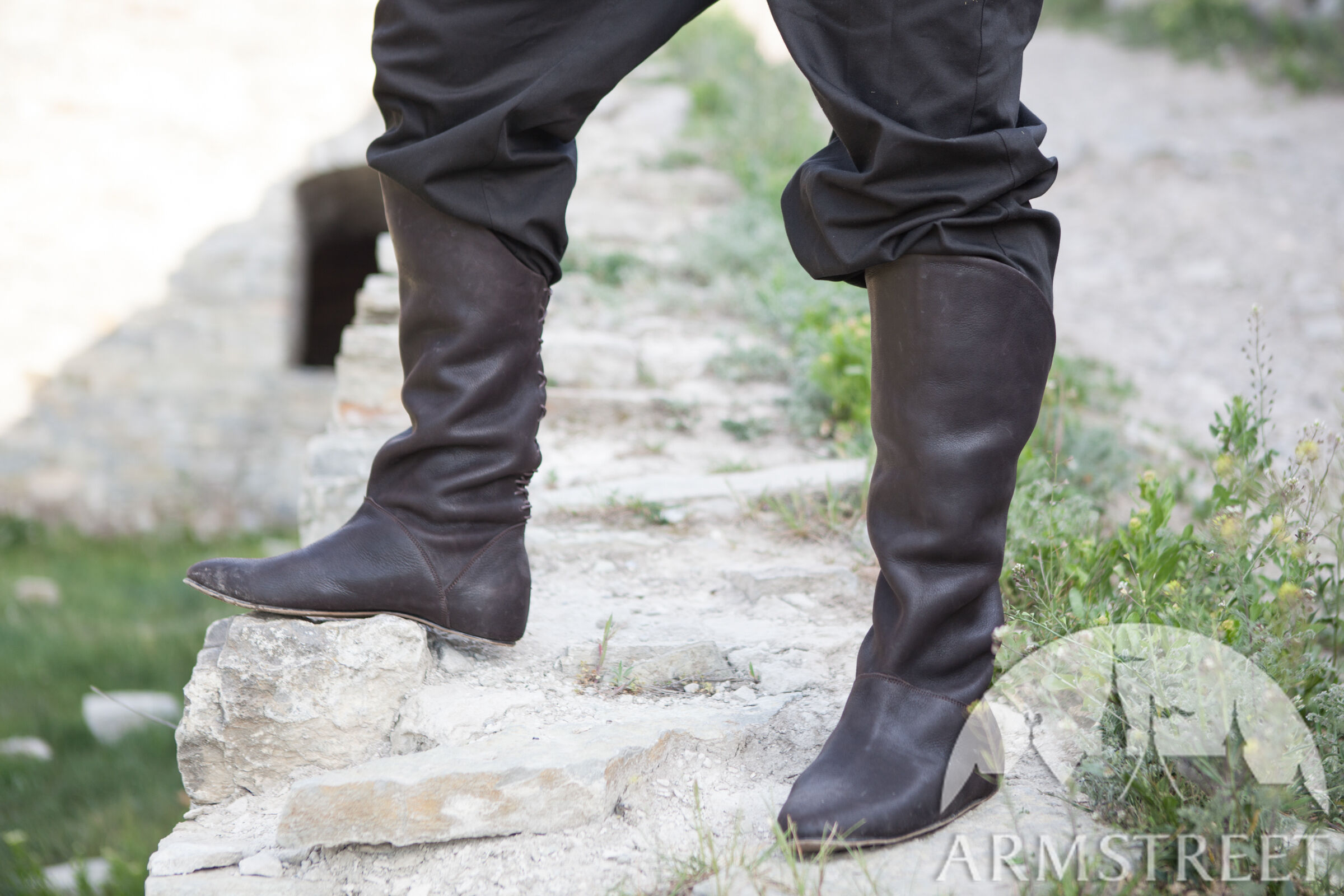 Chaussures médiévales hauteur genou avec laçage arrière, prêtes à l'expédition!