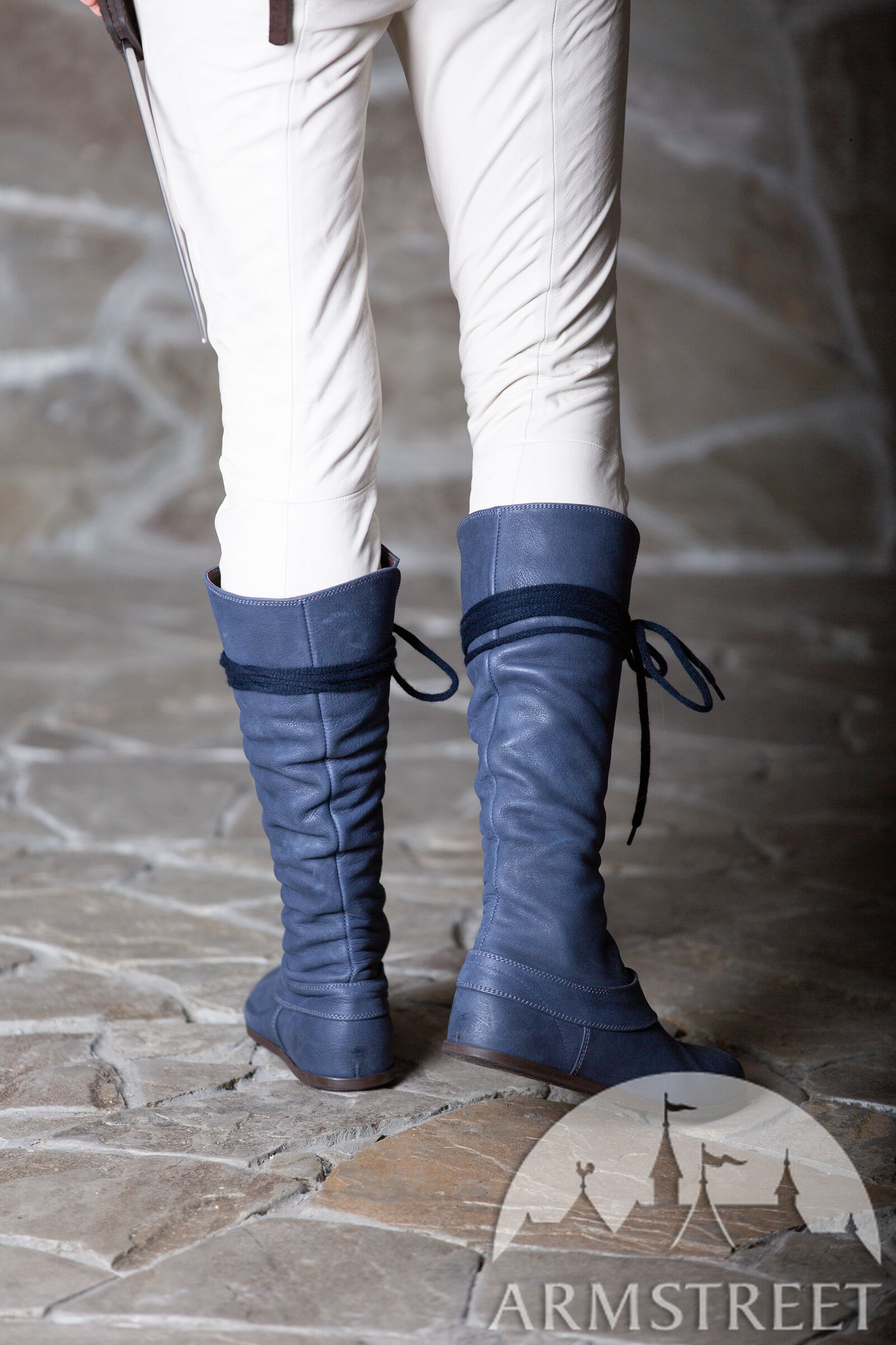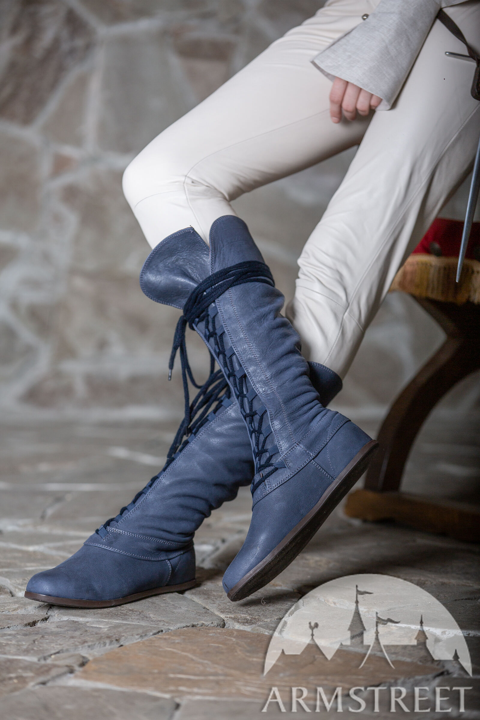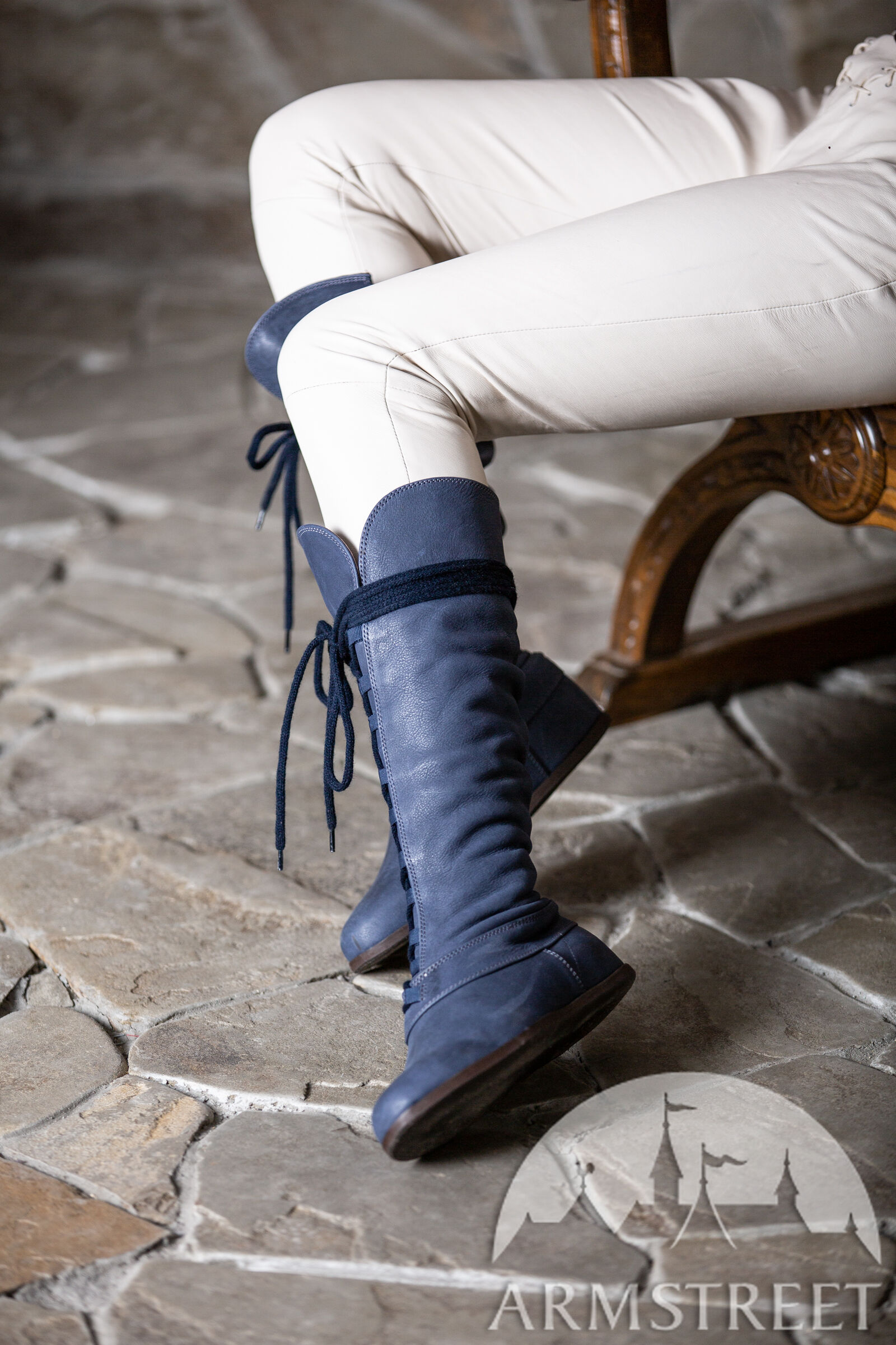 Rabais: Bottes médiévales pour femme «Forêt» | Vente des dernières bottes en cuir bleu mat et en cuir olive mat