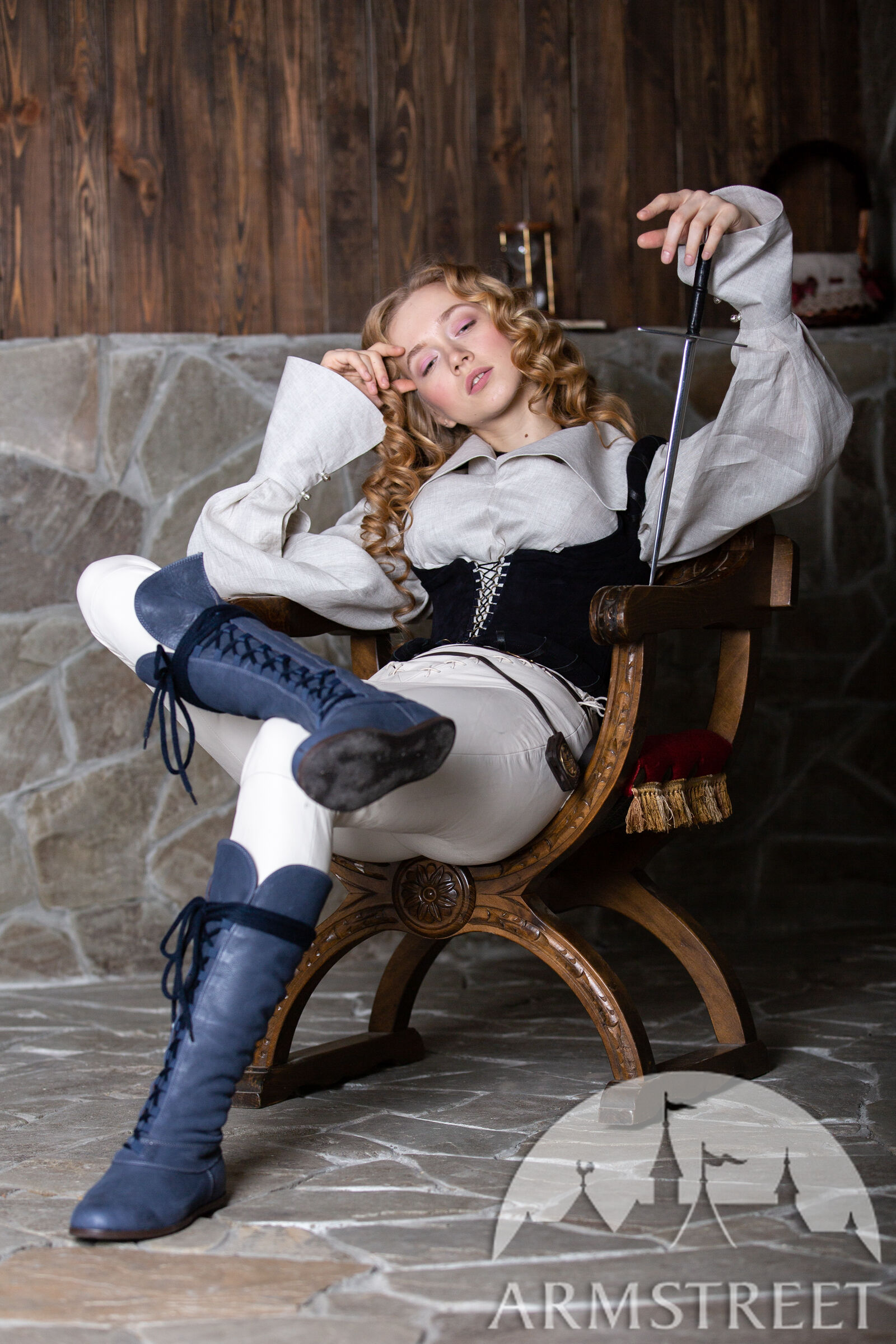 Ces bottes sont assez basiques du point de vue de design : il y a donc une vaste gamme de costumes et de personnages auxquels elles vont aller formidablement. Il paraît que nos clients portent ces bottes dans le monde entier et nous sommes souvent surpris et ravis de voir quels genres de personnages les portent. Bien que traditionnellement ce soit un style masculin, nous avons remarqué que toutes sortes de personnages les portent : princesses, chasseurs, rangers, guerriers, chevaliers, sorcières, apothicaires, voyous, elfes... à vrai dire ce serait difficile de les énumérer tous ! Et nous sommes impatients de savoir pour quel personnage vous allez les adapter à votre tour.