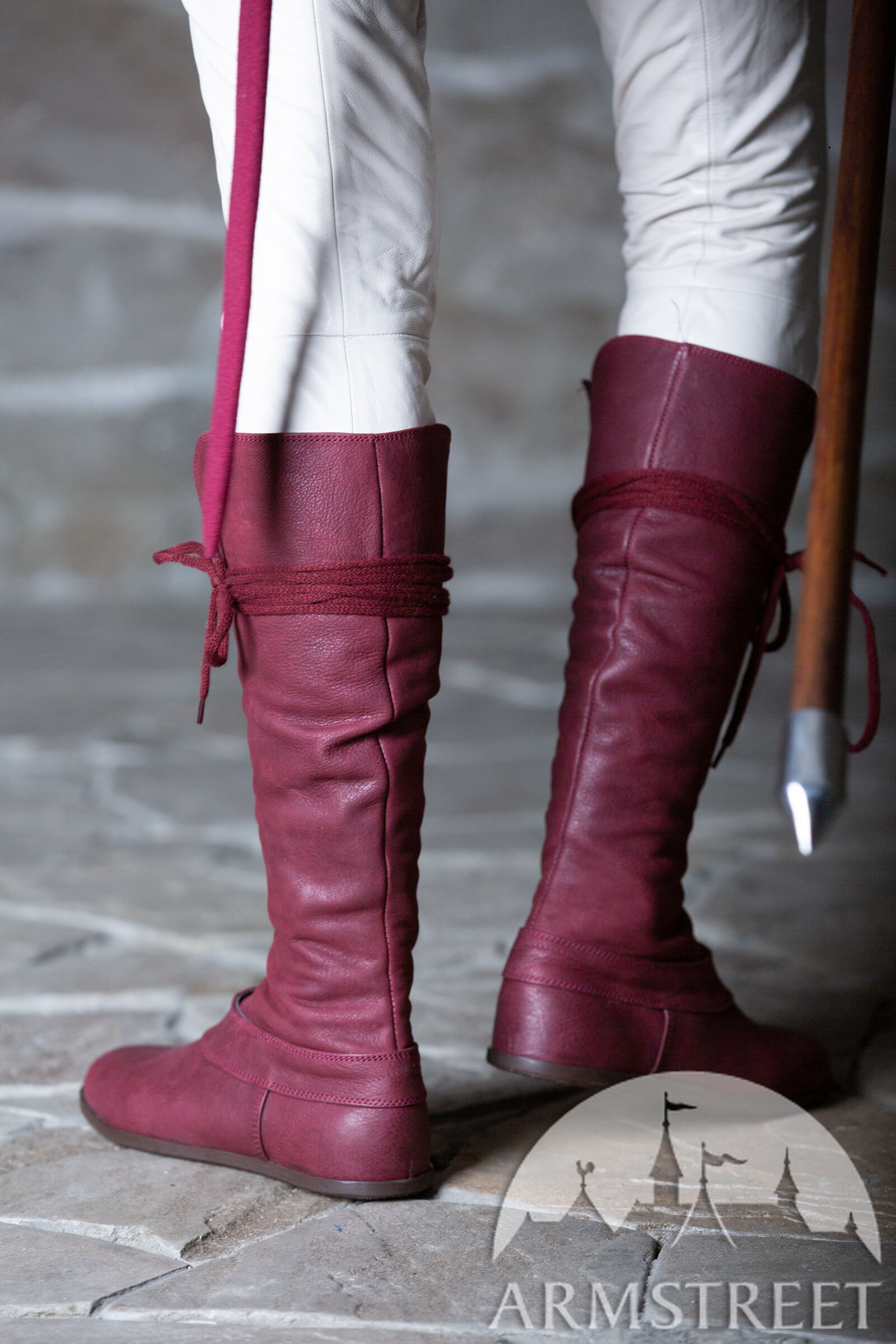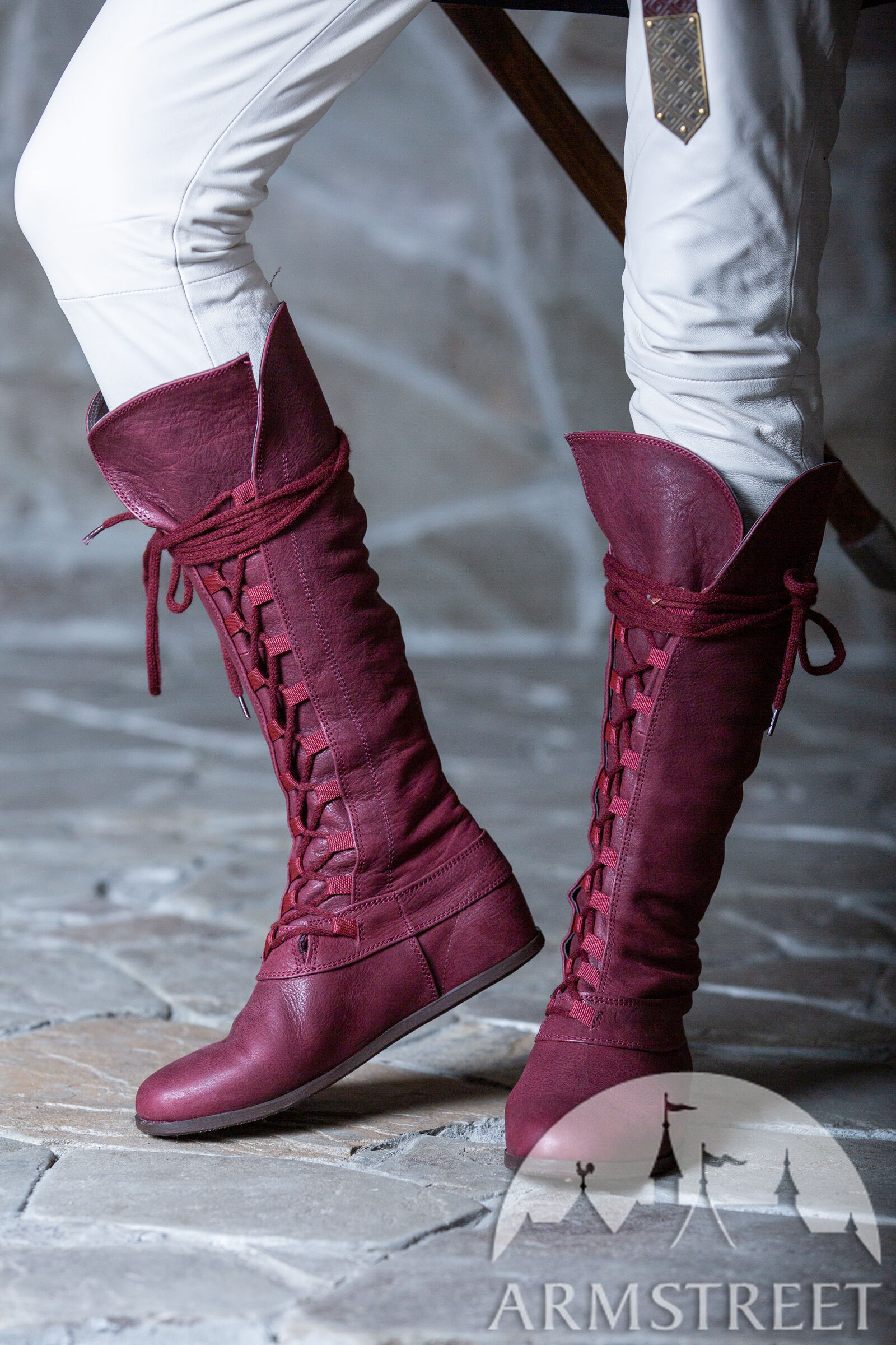 Lorsque notre nouveau chef cordonnier a rejoint notre équipe il s’enthousiasmait à introduire les technologies modernes dans la fabrication des chaussures style médiéval. Et sa solution était d’utiliser la forme de chaussure moderne pour créer la base confortable pour votre pied. Nous utilisons la semelle moderne qui est plate mais fournit un bon soutien à l’intérieur de la chaussure ce qui est beaucoup plus pratique par rapport aux modèles purement historiques ! Parmi les autres modifications modernes il y a une semelle en caoutchouc antidérapante (parfait au combat), coutures solides à la machine et anneaux de laçage robustes.