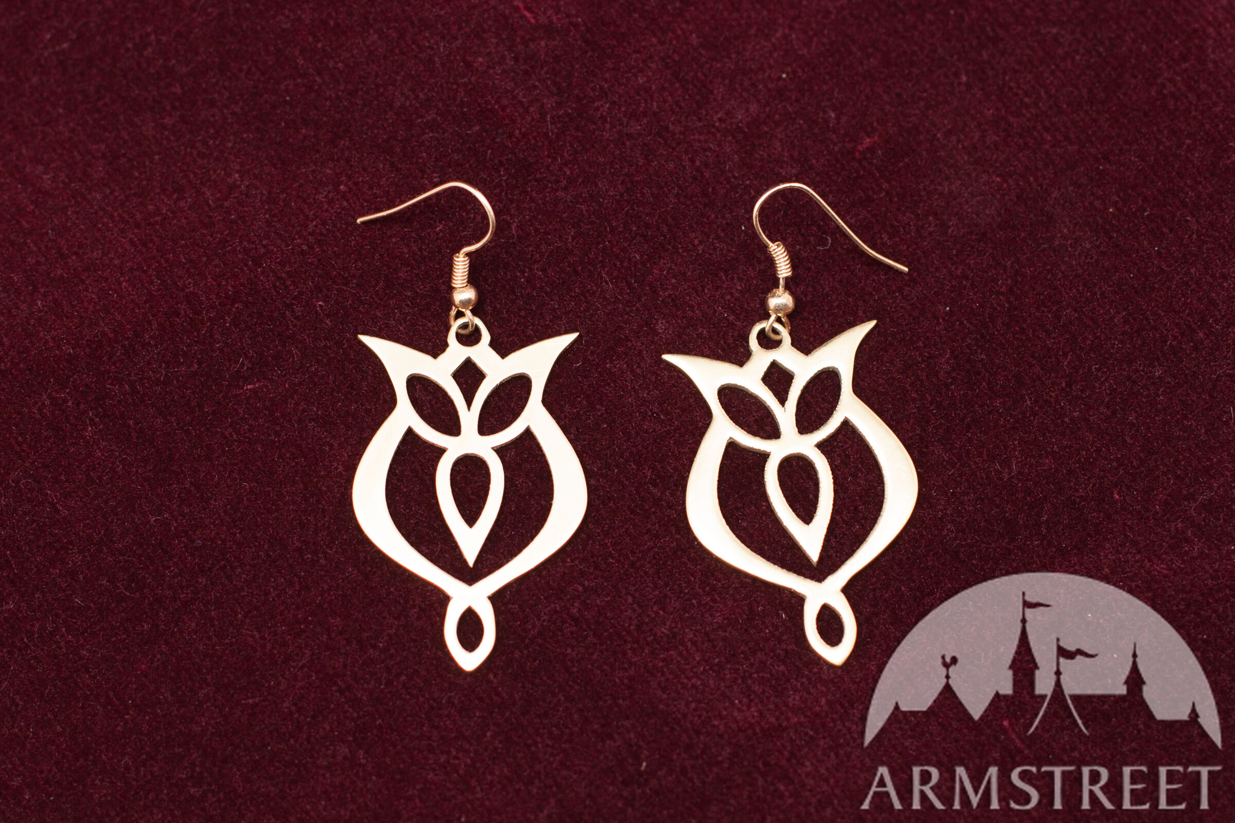 Ces boucles d’oreilles sont un morceau des bijoux de style médiéval pour compléter notre robe franque. Le modèle est basé sur l’un des éléments de la garniture de sorte que ces boucles d’oreilles et la couronne fournissent le moyen excellent de compléter votre ensemble.