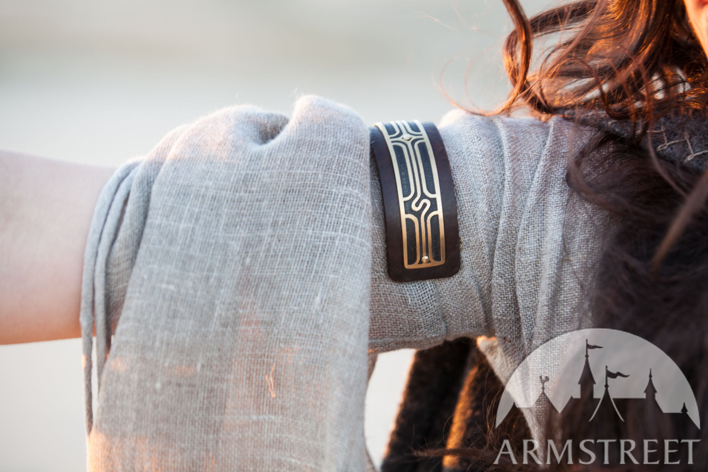 Ce brassard semi-flexible se fabrique d'un cuir épais et il est décoré d'une plaque en laiton. Son design souligne la beauté de la simplicité géométrique, l'effet patine valorisant de plus la pureté des lignes. Le brassard peut être porté sur le biceps, comme initialement conçu, ou sur l'avant-bras. Comme le brassard est entièrement ajustable, il n'y a pas de fermeture : cela reste ou il est mis. C'est simple et élégant, vous pouvez le porter tout seul ou suppléer l'ensemble avec d'autres bracelets de votre collection personnelle.