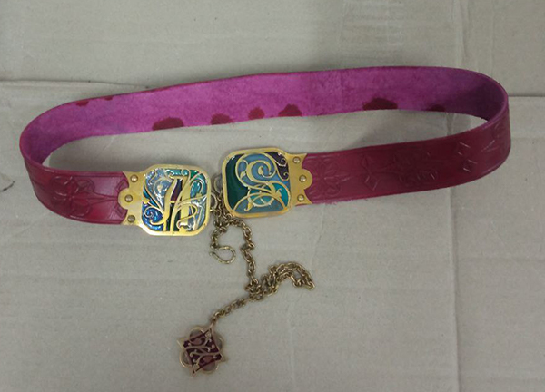 Ceinture en cuir gaufré, échantillon expérimental à l'émail