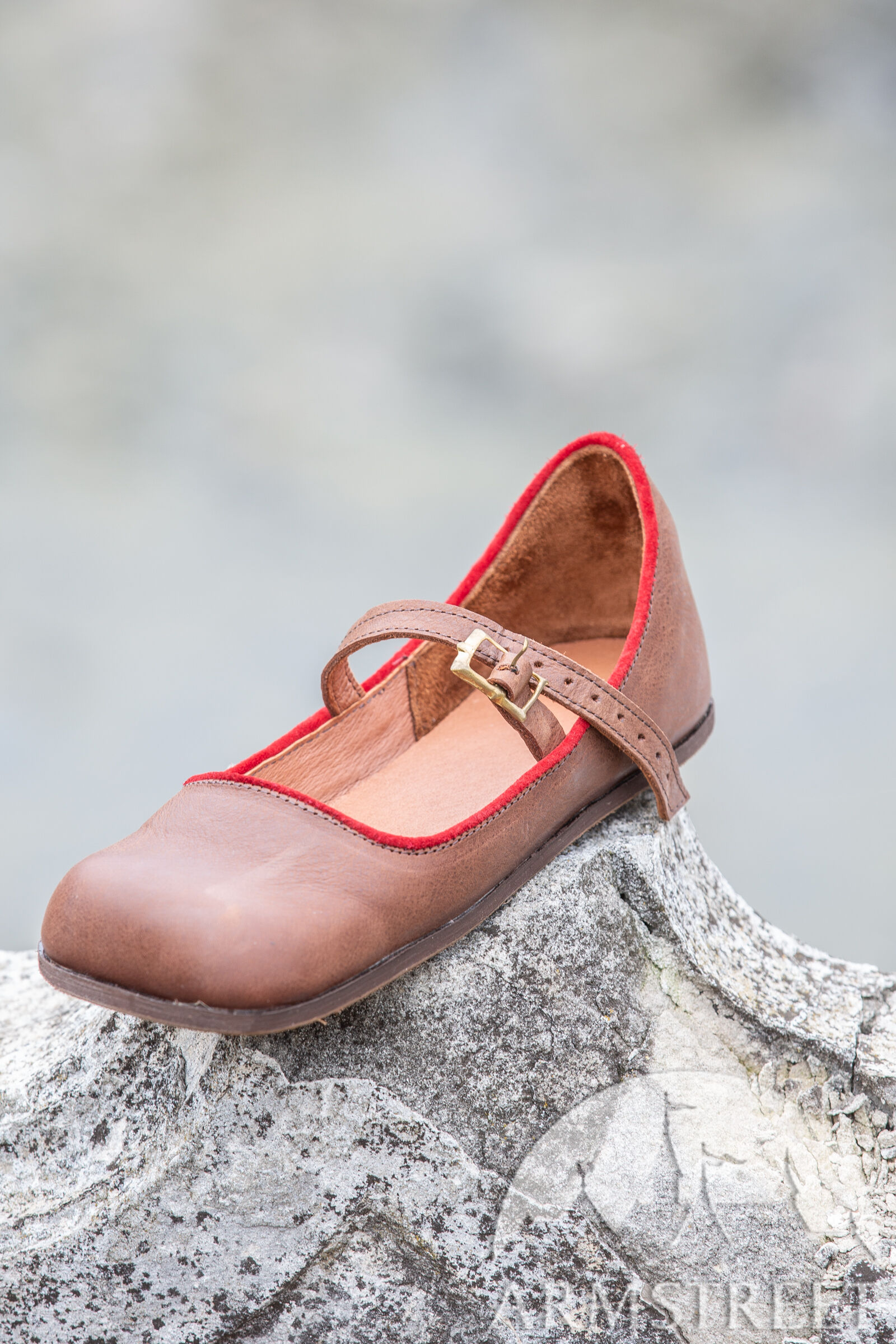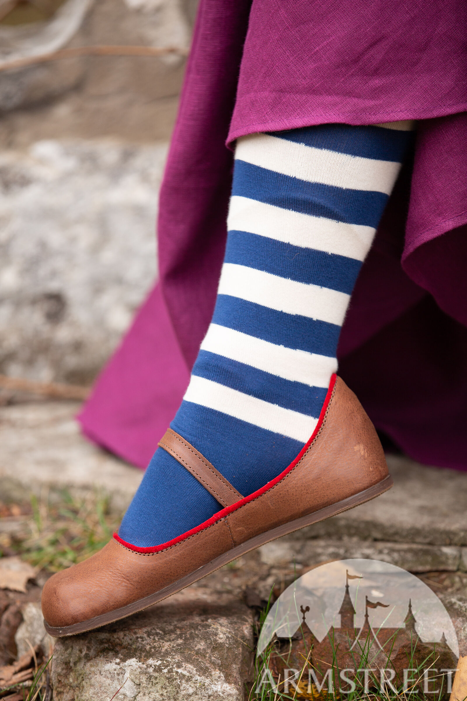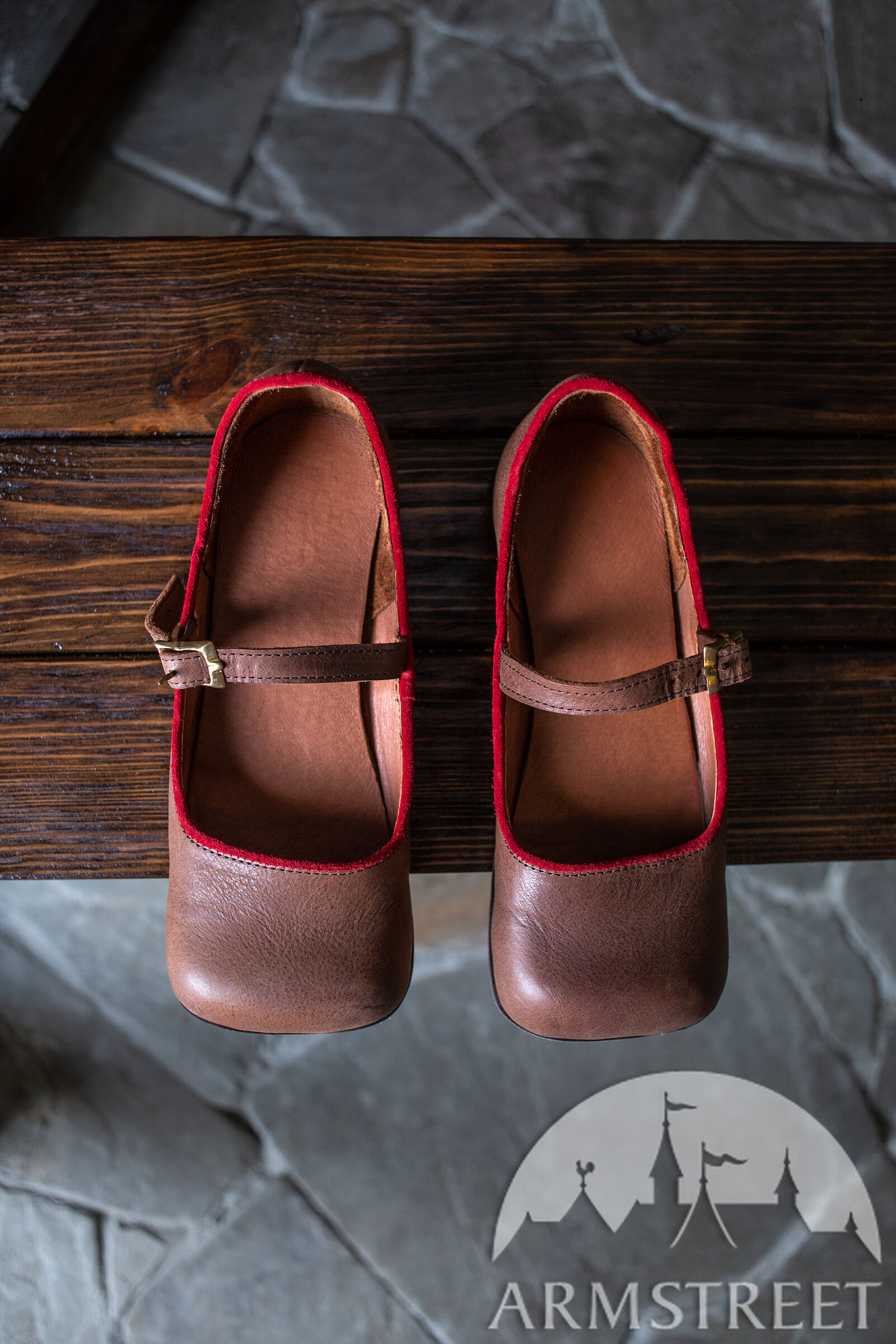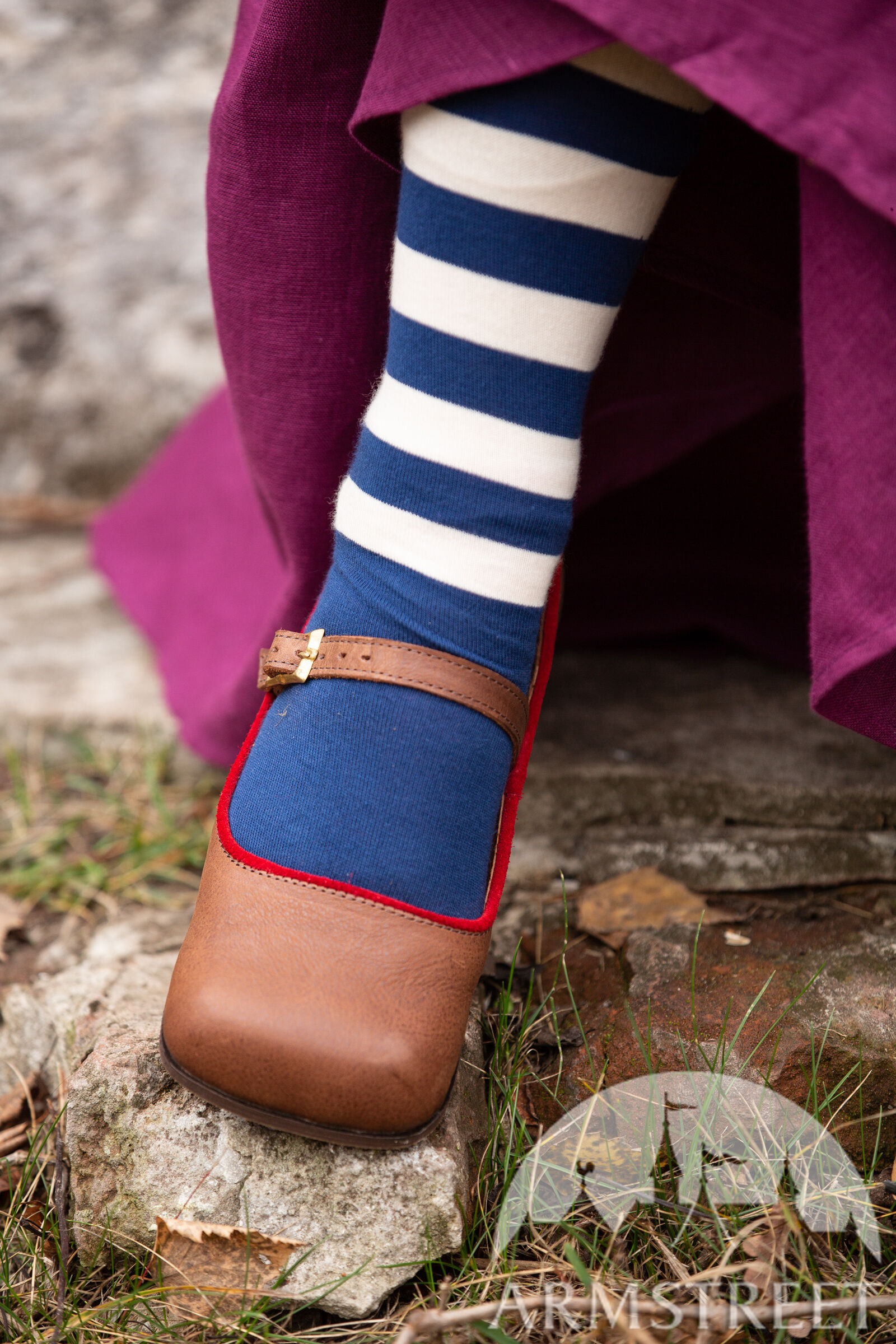 Ces chaussures ont un air médiéval mais elles se distinguent par les aspects du confort moderne. Notre chef cordonnier a fait de grands efforts pour aboutir au résultat qui ressemble les chaussures médiévales mais qui ne sont pas tout à fait plates. C’est là que réside la différence fondamentale entre les chaussures modernes et médiévales : les modèles moyenâgeux étaient pour la plupart complètement plats dépourvus de tout talon.