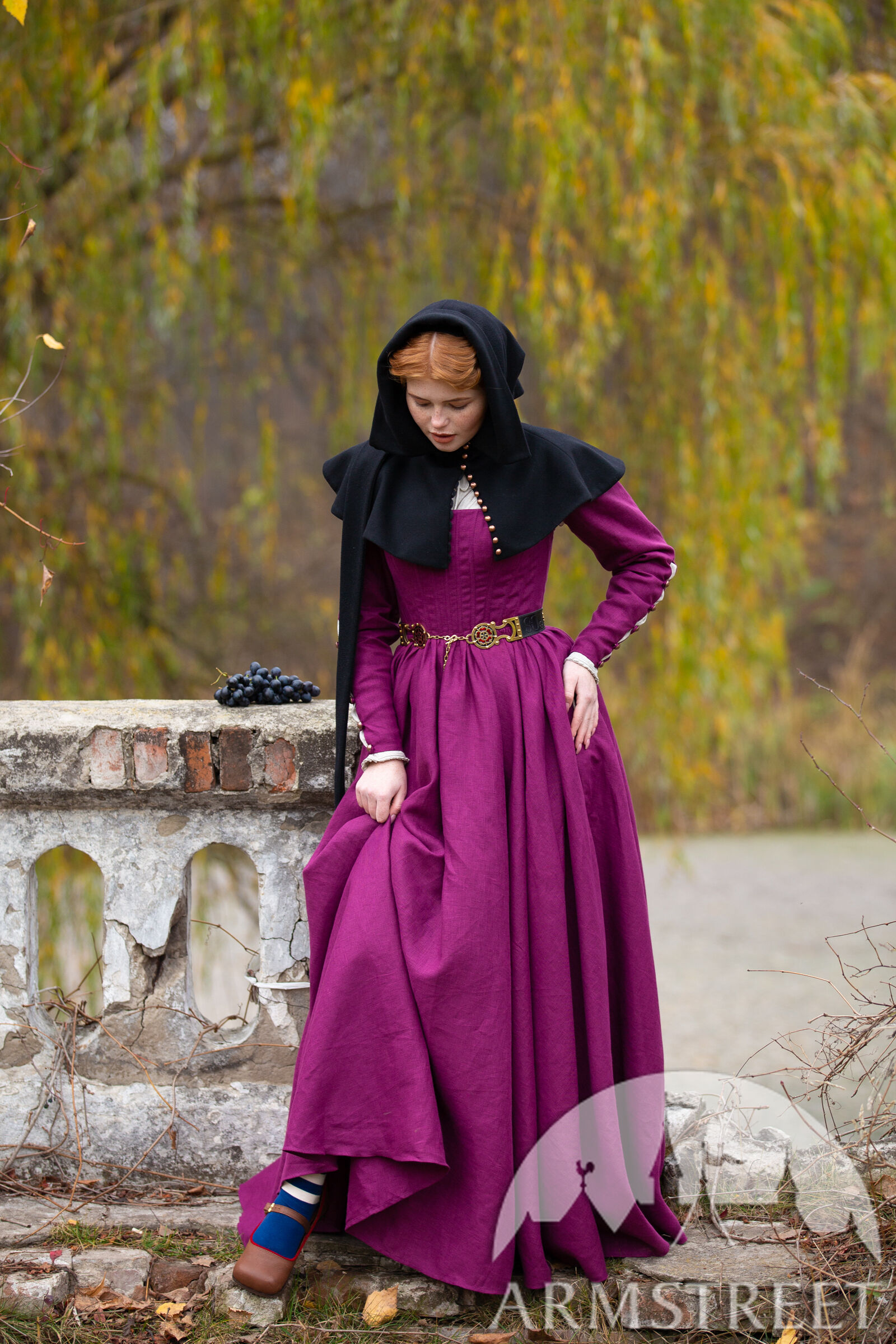 Ces chaussures-là sont très typiques du 16e siècle et assez fidèles aux sources historiques. Les pattes d’ours désignaient les souliers populaires à un large bout carré portés dans quasiment tous les milieux, par les hommes aussi bien que par les femmes. Elles se ferment à l’aide d’une lanière au milieu qui est fermée à son tour au moyen d’une petite boucle en laiton.