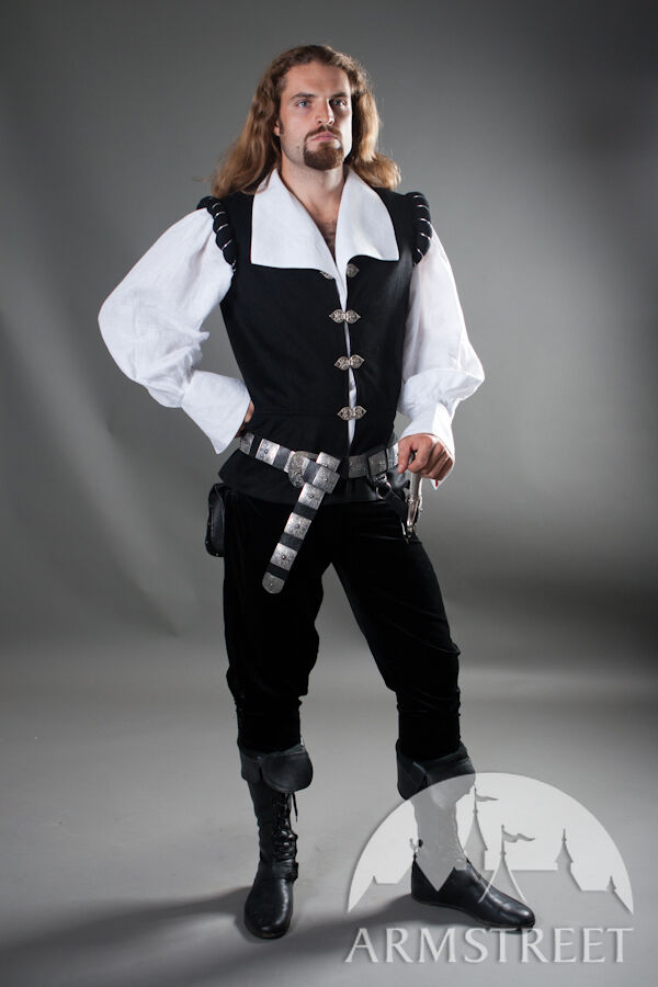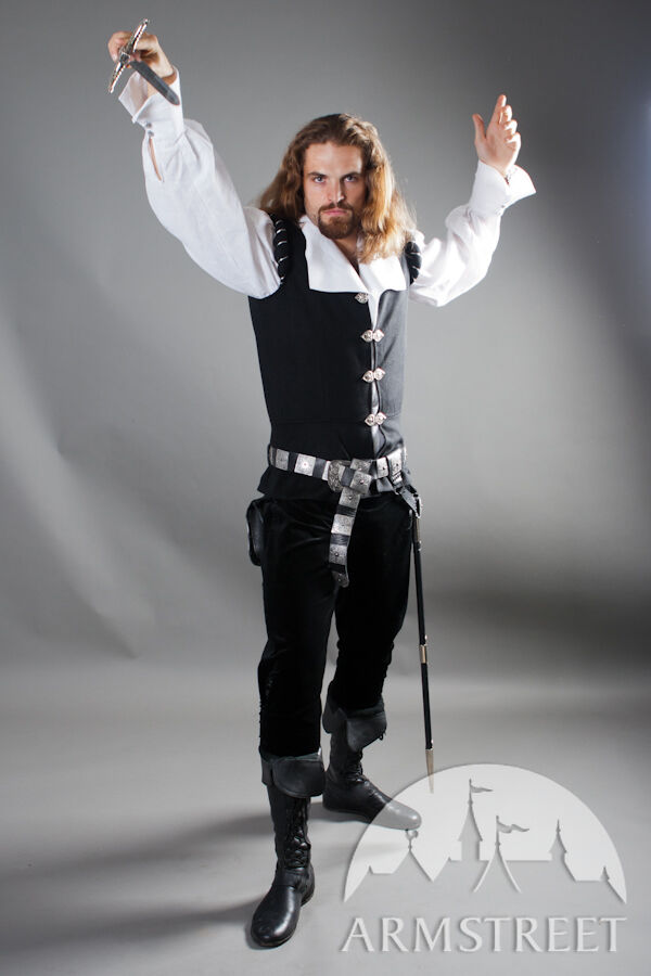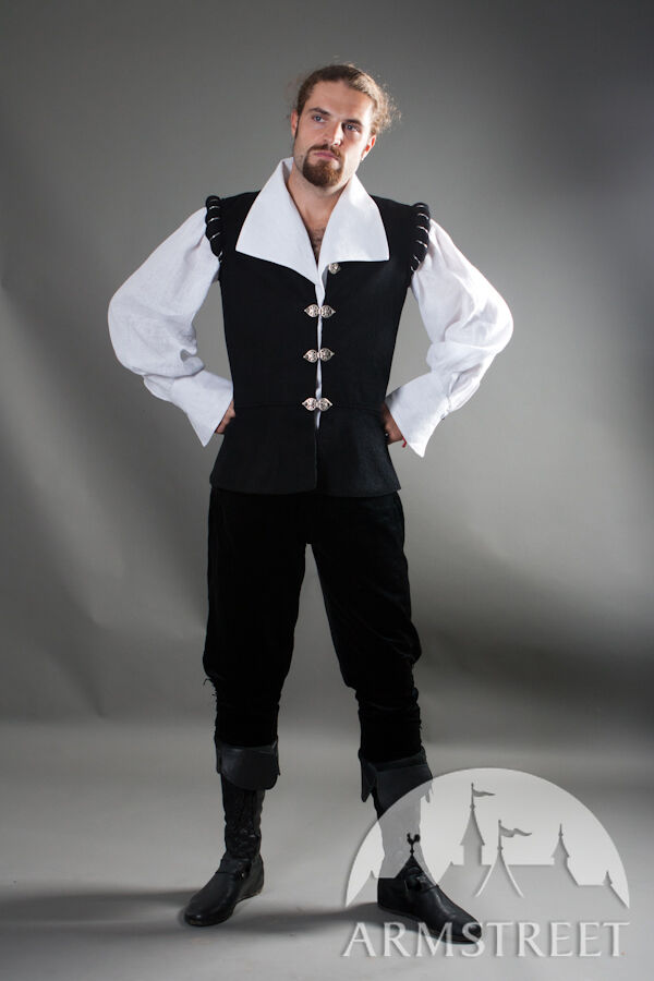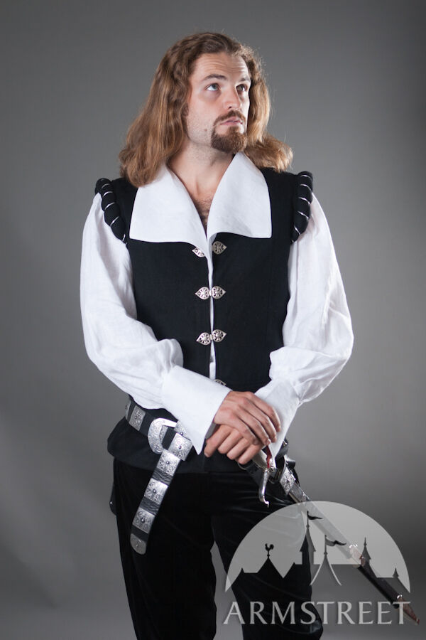 C'est un ensemble de style Renaissance de grande qualité pour les chevaliers et duellistes de cette époque magnifique. La chemise est faite de lin 100% naturel. Le gilet est fait de laine pure avec la doublure en satin (la doublure en satin peut être remplacée par le coton).