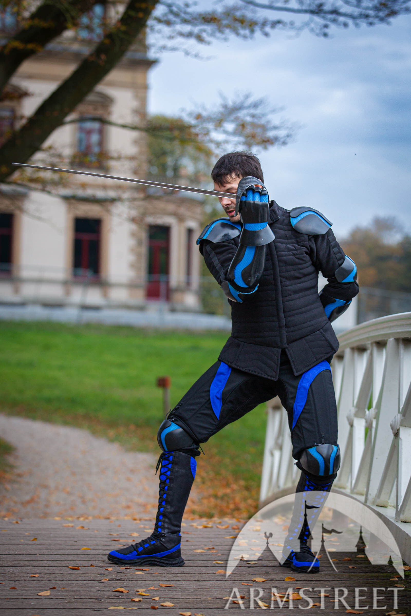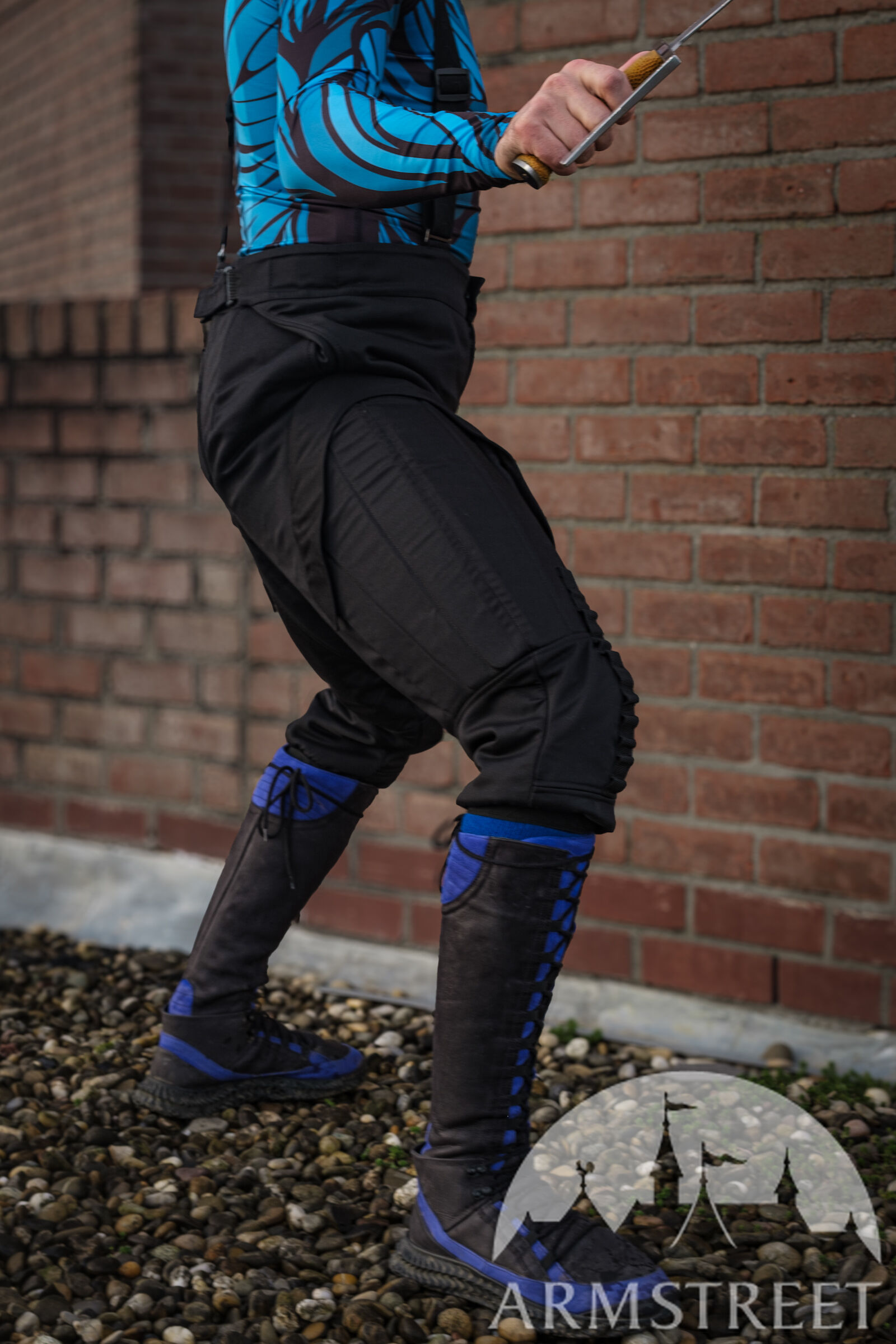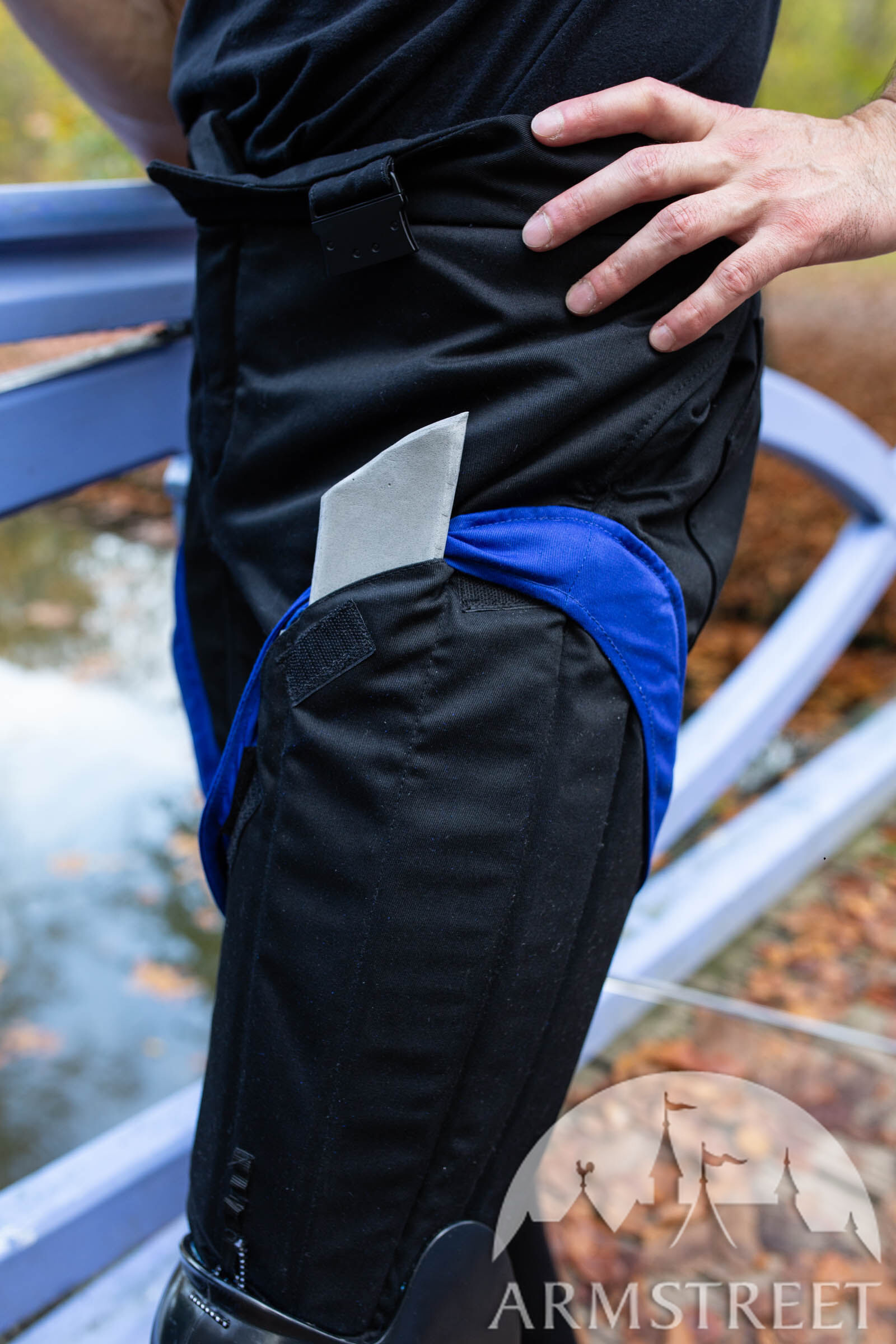 Universalité. Alors que la plupart des escrimeurs ont leurs propres préférences et spécialisations en matière d'armes, beaucoup d'entre nous pratiquent également plusieurs disciplines. Il est donc essentiel de disposer d'un équipement qui peut être utilisé confortablement pour tout. Toutes les fonctionnalités, du réglage de la taille aux boucles de montage en passant par les plaques de protection remplaçables, ont été conçues pour constituer une solution unique pour les combattants d'escrime historique. Et bien, nous y sommes parvenus et espérons vous voir bientôt sur le terrain dans votre nouveau pantalon de combat à l'épée confectionné par notre équipe.