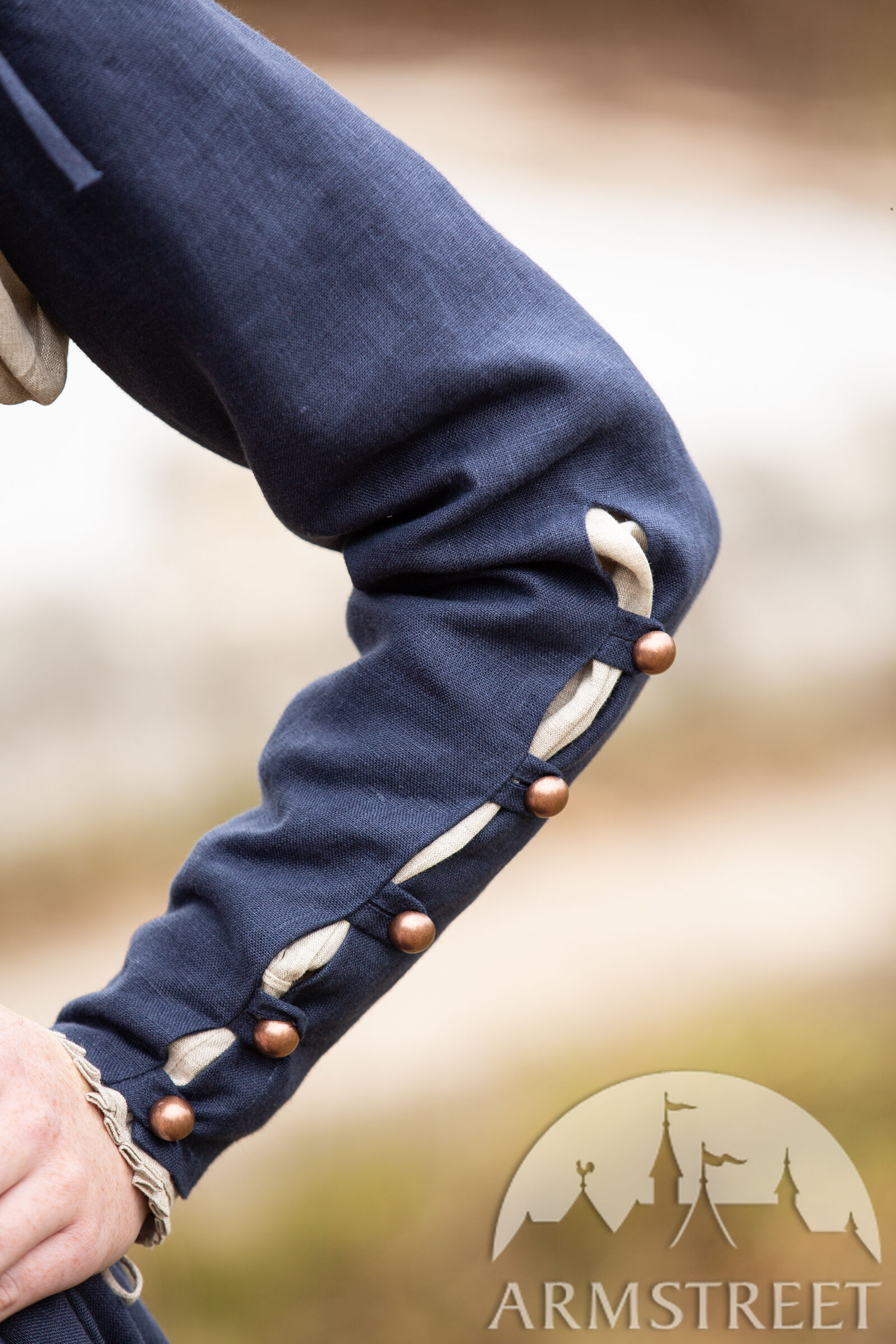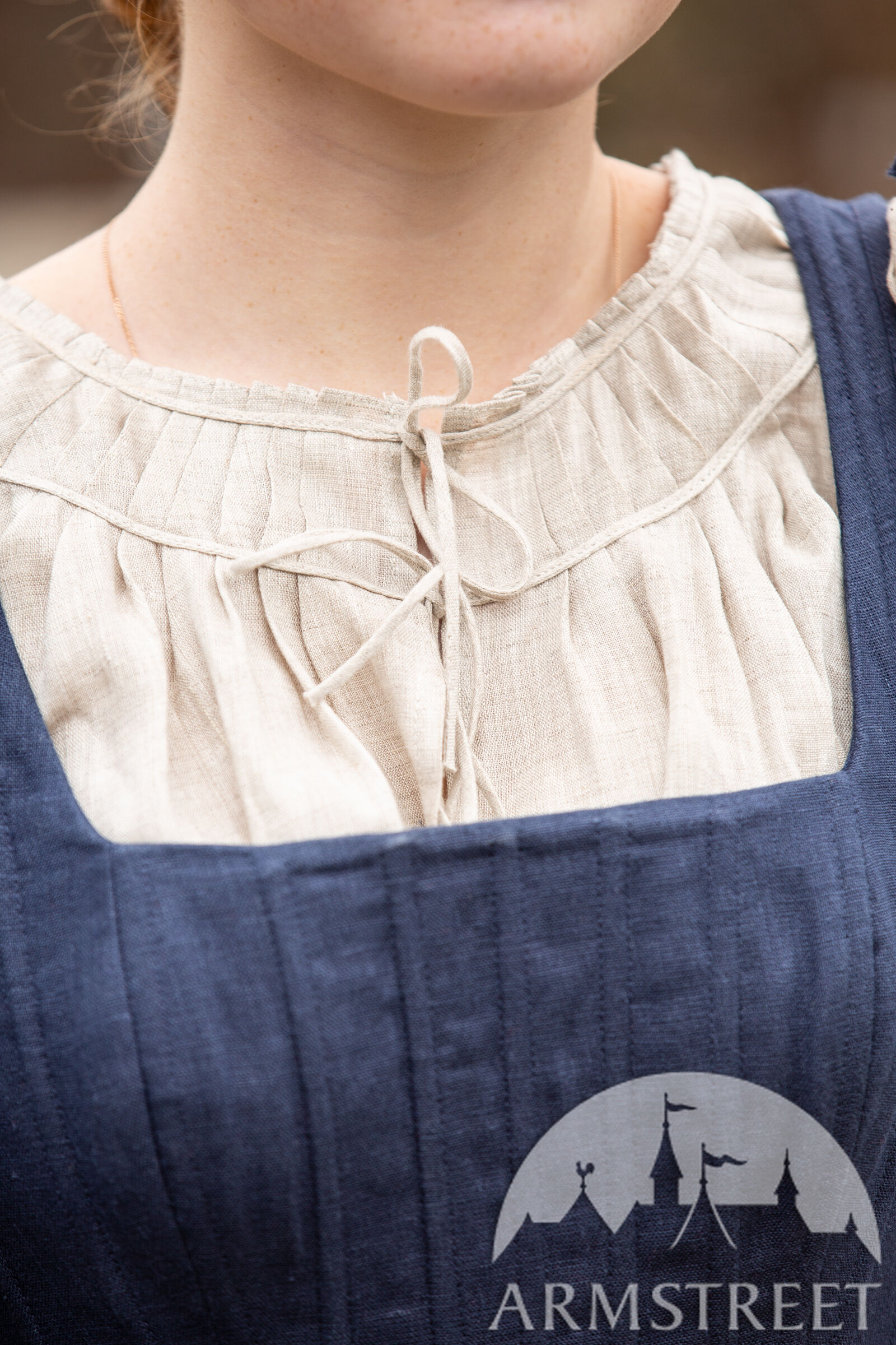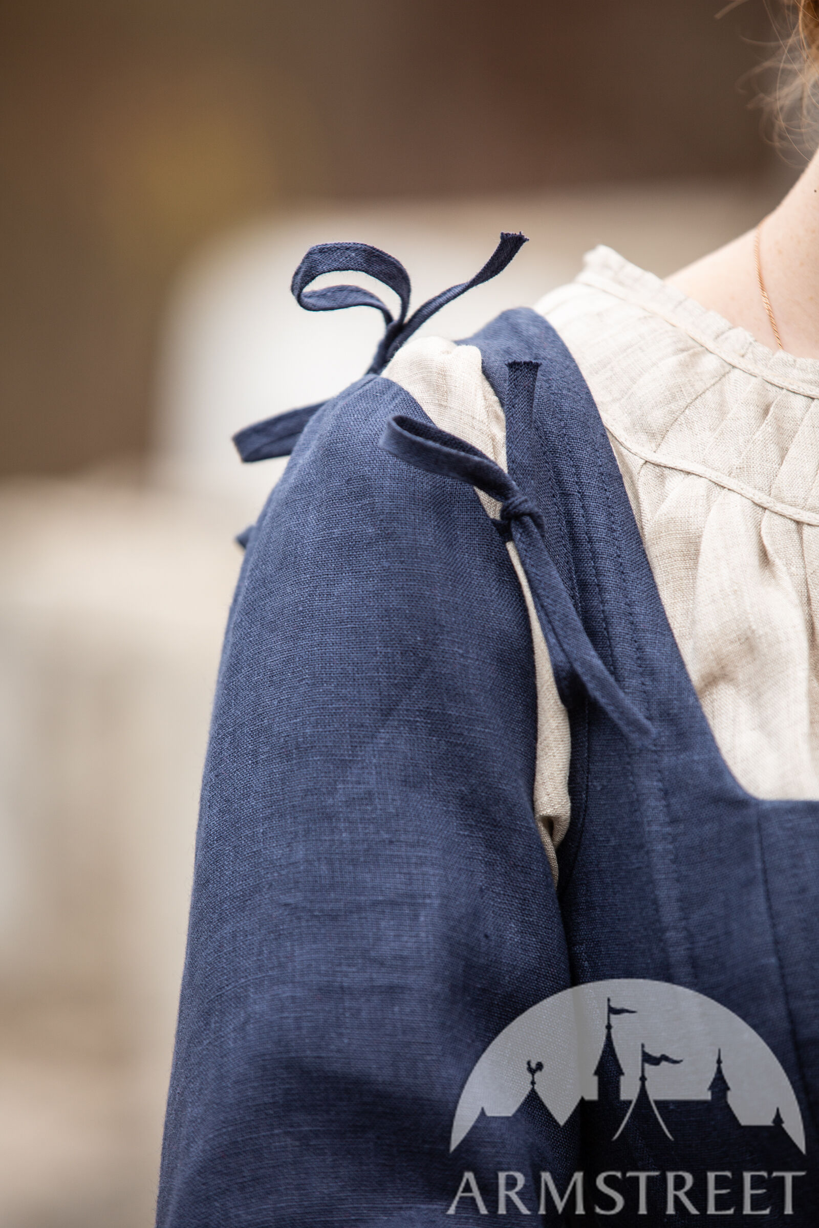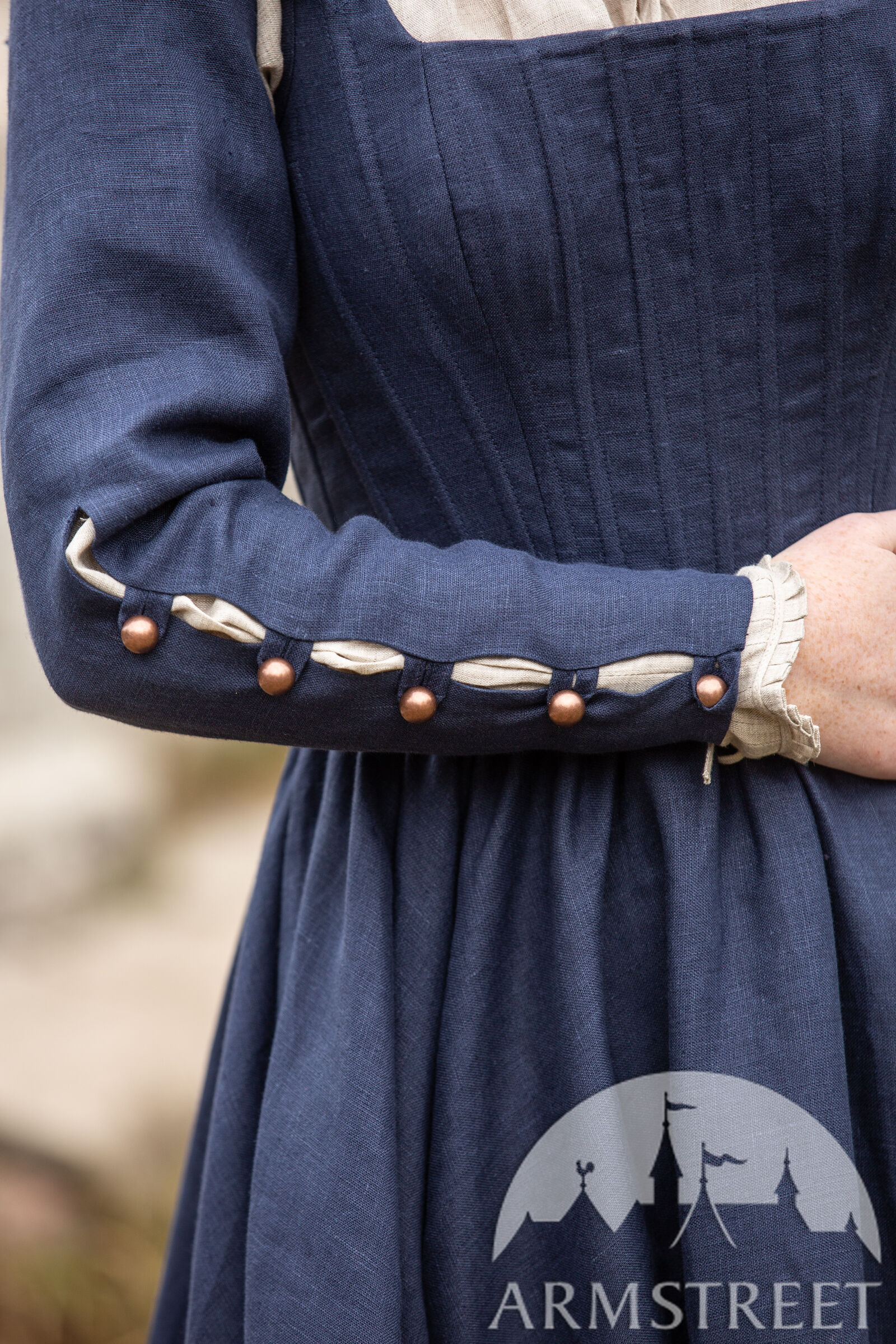 Le lin naturel n’a pas été utilisé traditionnellement pour ce type de robe (c’était plus probablement de la laine) mais nous aimons bien créer des choses qui sont confortables pour nos clients qui vivent dans les temps modernes ! Le lin a un tissage magnifique qui lui permet d’être bien respirable, ainsi ce tissu convient à toutes les conditions climatiques. Les œillets sur le dos sont faits en métal de sorte que vous puissiez serre la robe bien fort sans craindre d’endommager la robe.