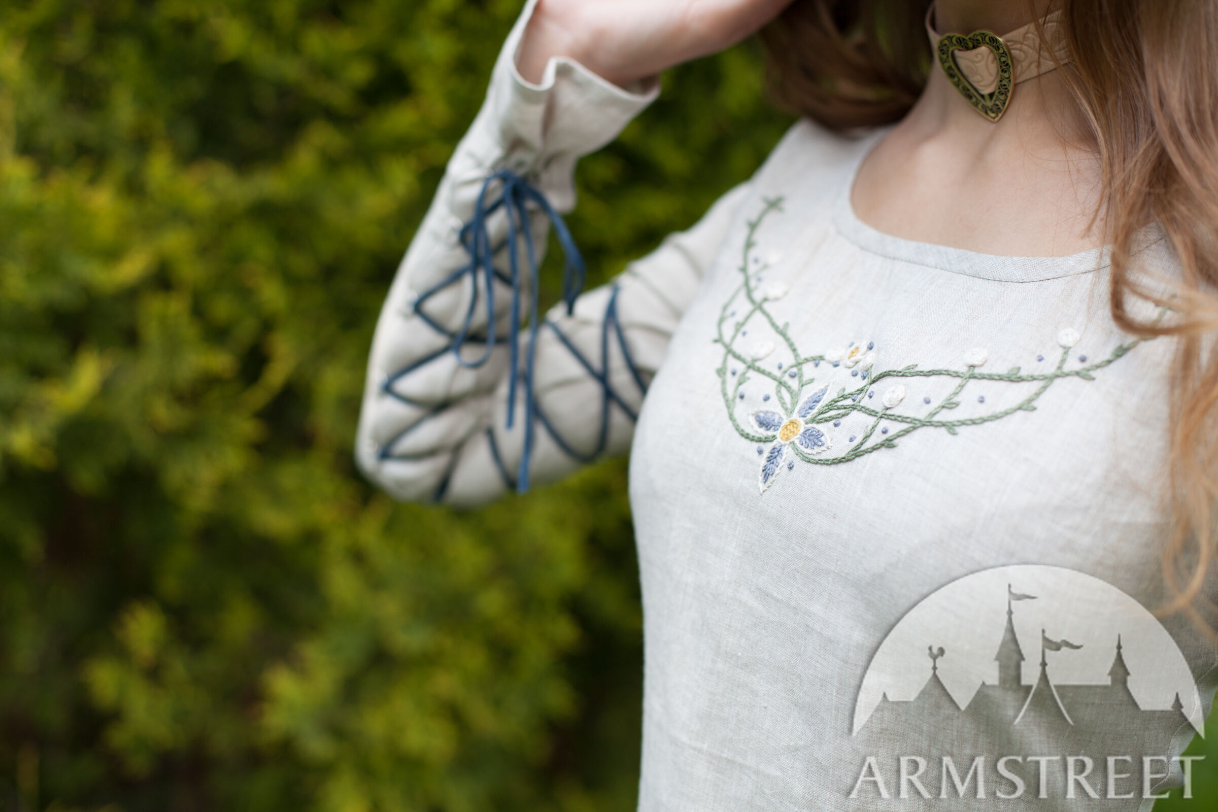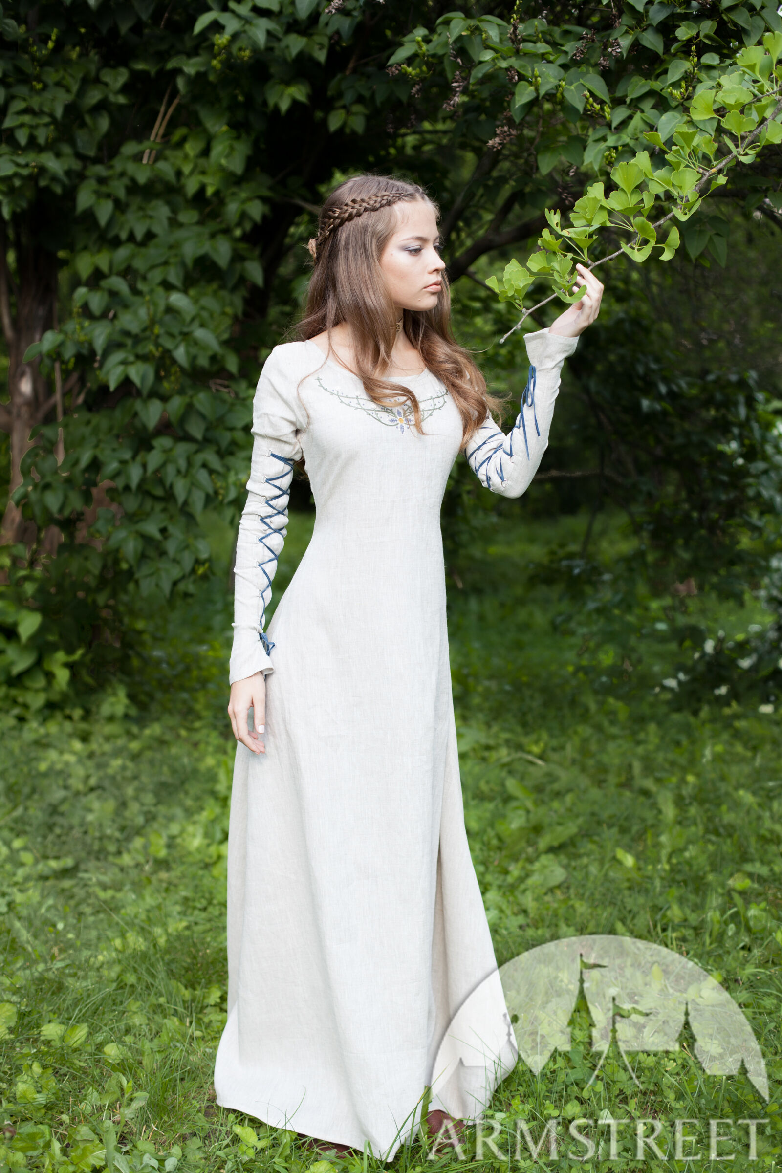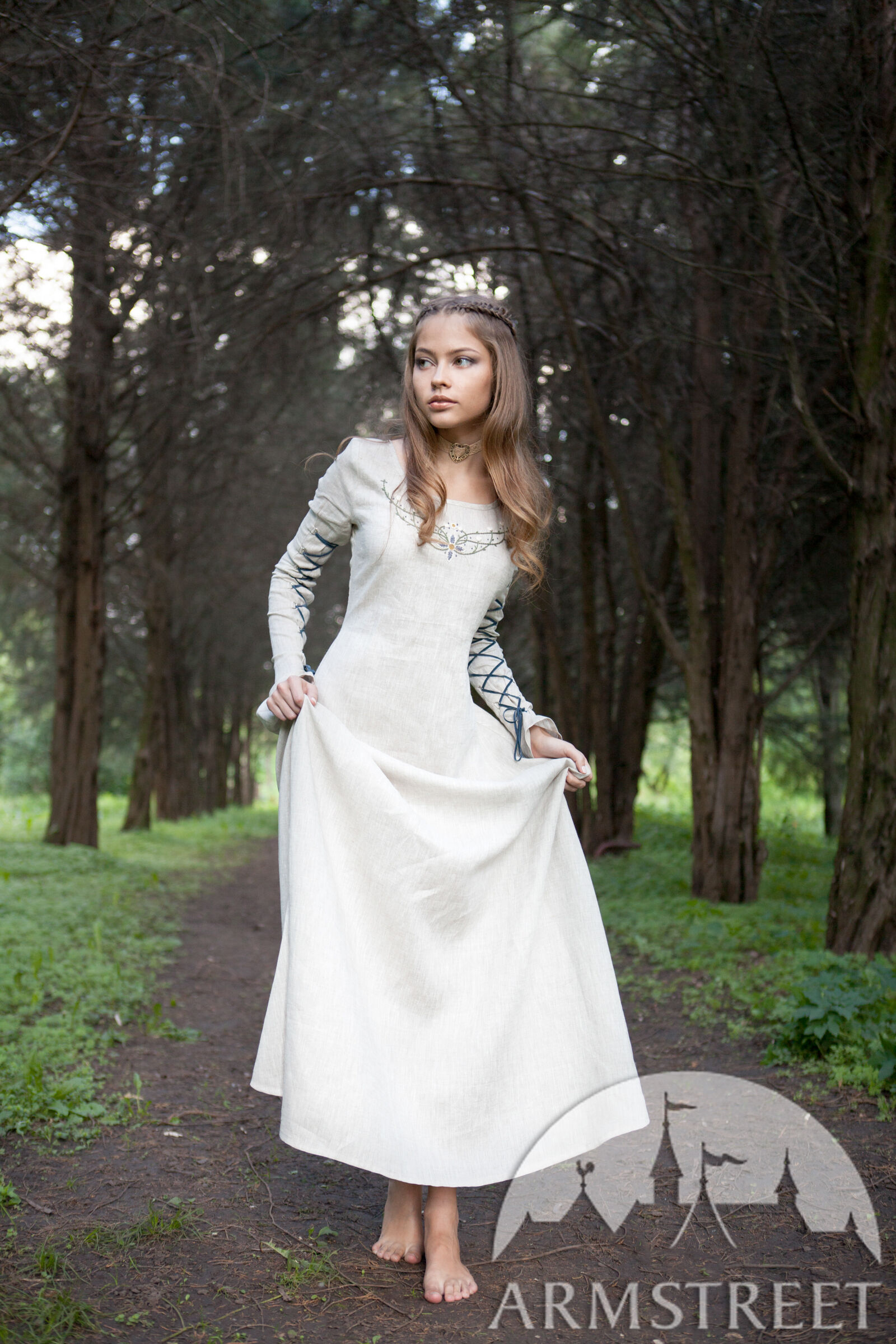 C'est une robe élégante, authentique d’apparence sur la base de l’un de nos modèles les plus populaires. Elle est faite de lin de haute qualité avec la broderie à la main. Le laçage sur les manches et le laçage sur le dos vous permettent d’ajuster sa taille pour correspondre à la forme de votre corps le plus précis possible.