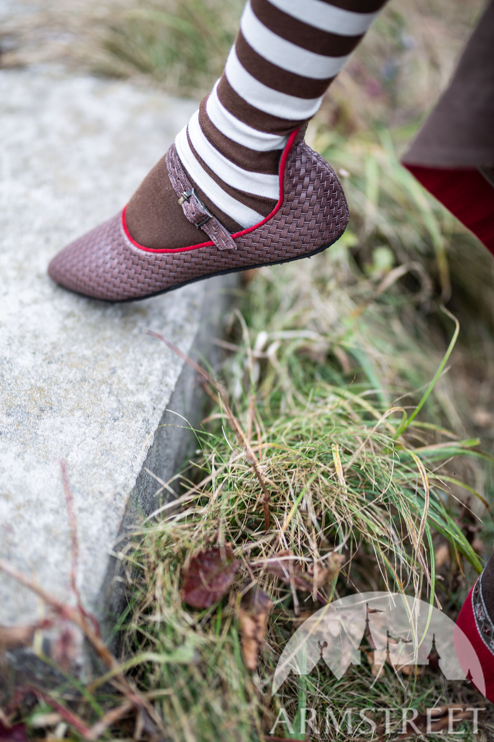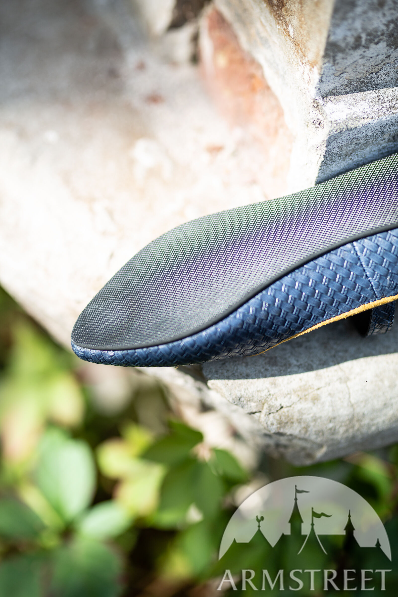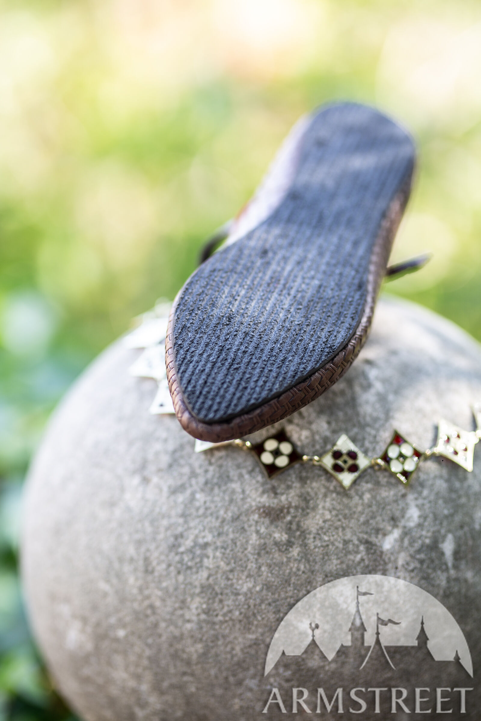 Si vous avez eu la chance d’avoir déjà porté les chaussures médiévales alors vous êtes au courant combien elles peuvent être incommodes à cause de la semelle plate. La forme utilisée pour les chaussures à l’époque médiévale ne marche plus pour les conditions modernes ! Pour résoudre ce problème ArmStreet s’est adressé à un cordonnier professionnel avec des dizaines d’années d’expérience dans ce domaine qui a appliqué ses connaissances de la confection des chaussures modernes confortables à nos modèles médiévaux. Nos chaussures ont ainsi une apparence médiévale mais elles sont soigneusement construites à la base des chaussures moderne avec des matériaux ergonomiques. La construction comprend plusieurs couches notamment la semelle en cuir, une base orthopédique, le panneau de fibres en cuir et la semelle extérieure en caoutchouc pour une magnifique adhérence