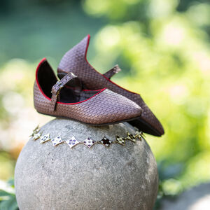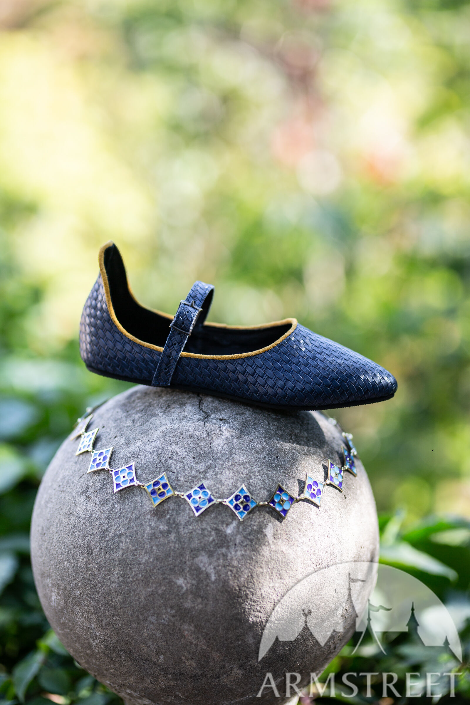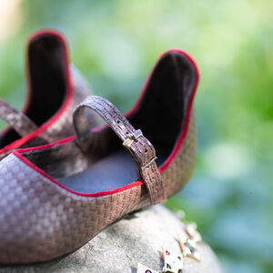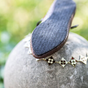 Ces chaussures spéciales font partie de notre collection « Gardienne des Clés » et sont disponibles en nombre très limité ! Toutes les pièces de la collection ont été conçues pour être esthétiquement ravissantes et pratiques dans leur usage. Ces souliers n’en sont pas une exception. Grâce à leur apparence médiévale basique elles iront bien à n’importe quelle tenue médiévale et vont convenir aux costumes de différentes époques, et même aux costumes modernes !