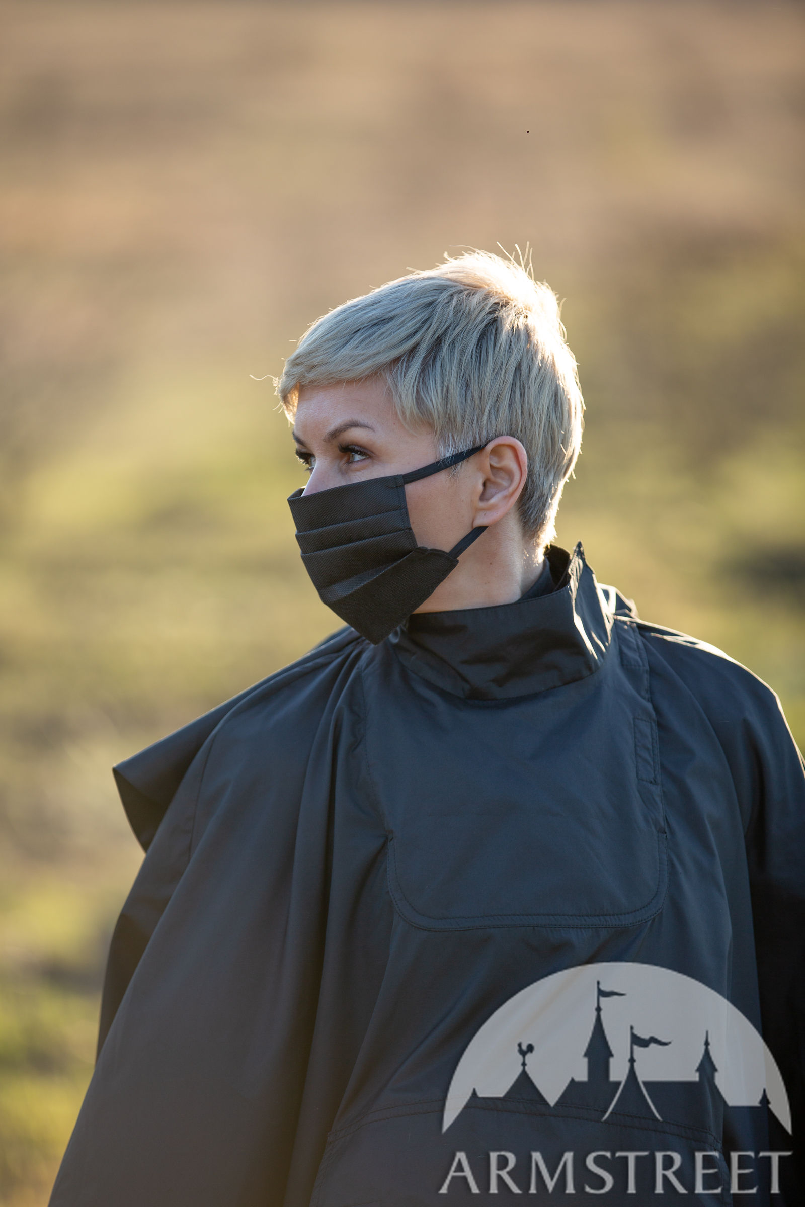 Et pourtant nous ne pouvons pas oublier nos clients ! Notre cape « Éléments » est un moyen de vous offrir un habit relativement bon marché mais quand même assez élégant qui pourra vous fournir une protection à cette période difficile. Nous l’avons conçue comme un sur-vêtement que vous pouvez jeter par-dessus vos vêtements lorsque vous allez vous réapprovisionner en marchandises essentielles et puis la mettre directement dans la machine à laver une fois revenue chez vous. C’est un des articles les plus abordables que nous ayons créés et c’est une pièce qui a pris le moins de temps dès la conception et jusqu’à la réalisation durant toute l’histoire de notre entreprise. Bien que nous l’ayons prévue pour cette pandémie, elle est assez jolie pour servir d’une excellente imperméable aux fêtes médiévales et assez chic pour la porter dans le quotidien. Vous pourrez aussi la garder comme un objet souvenir parce qu’il est peu probable qu’on confectionne jamais quelque chose de pareil !