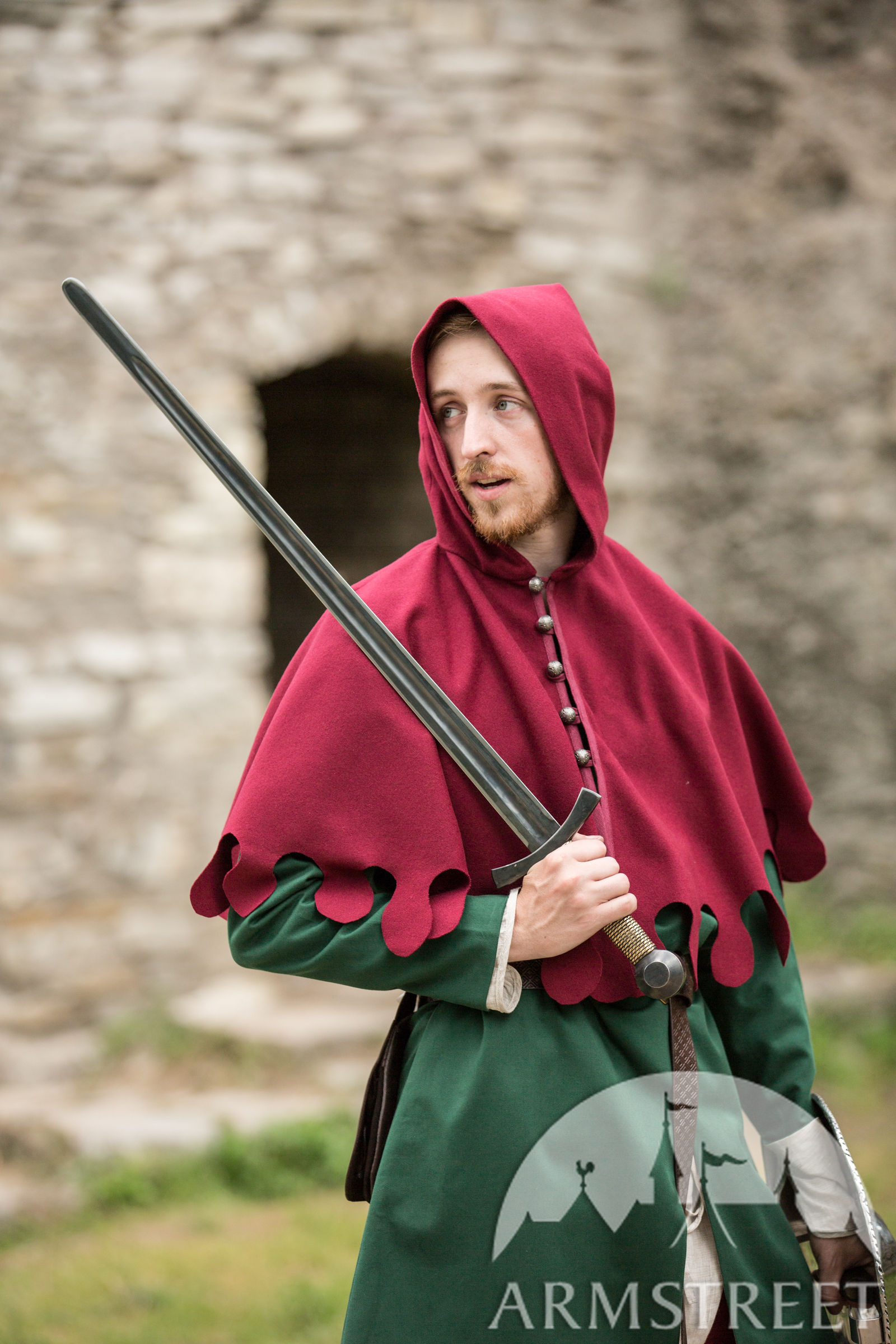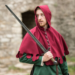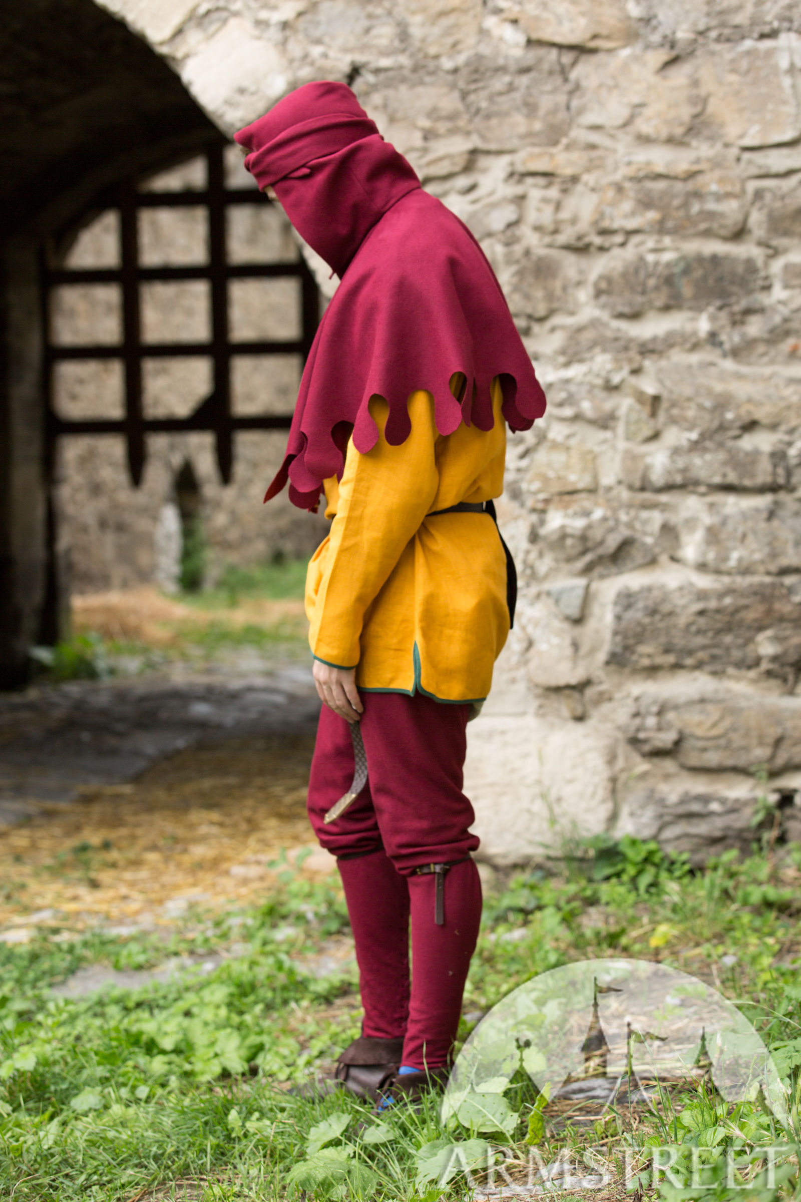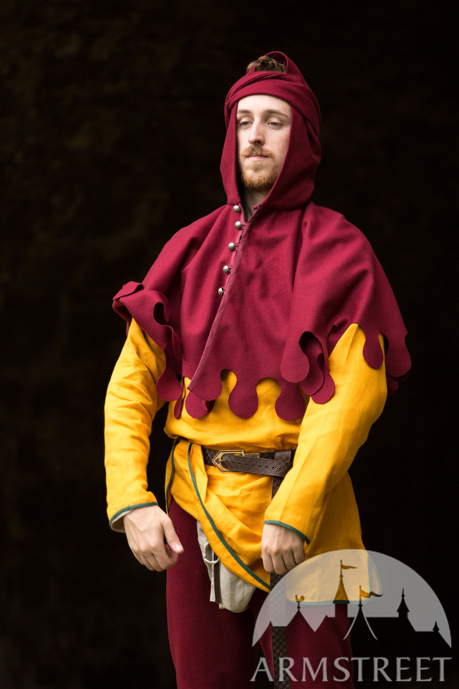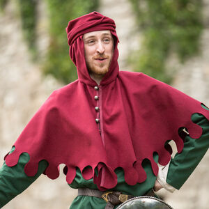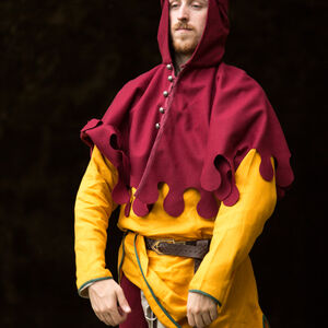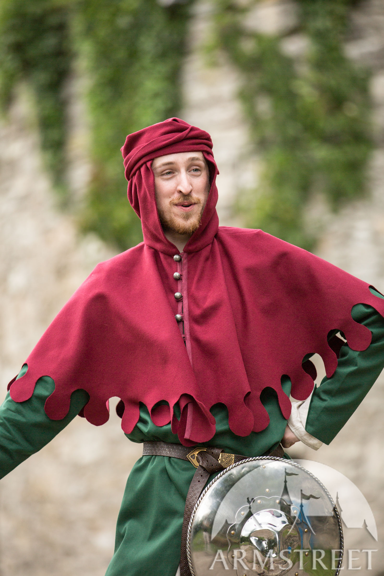 Cette cagoule particulière est conçue sur la base d’exemples des XIVe et XVe siècles et emprunte des éléments historiques et fantaisie pour créer l’accessoire idéal. Ce chaperon est plus grand que beaucoup de modèles historiques, ce qui signifie qu’il vous offre une couverture généreuse et vous protégera bien du vent et de la pluie. Lorsqu’elle est mise haut sur la tête, la capuche projette une ombre décente, ce qui en fait également un excellent pare-soleil en un clin d’œil. Il est facile d’enfiler ou de retirer cette capuche grâce aux boutons métalliques à l’avant pour vous aider à obtenir le bon ajustement.