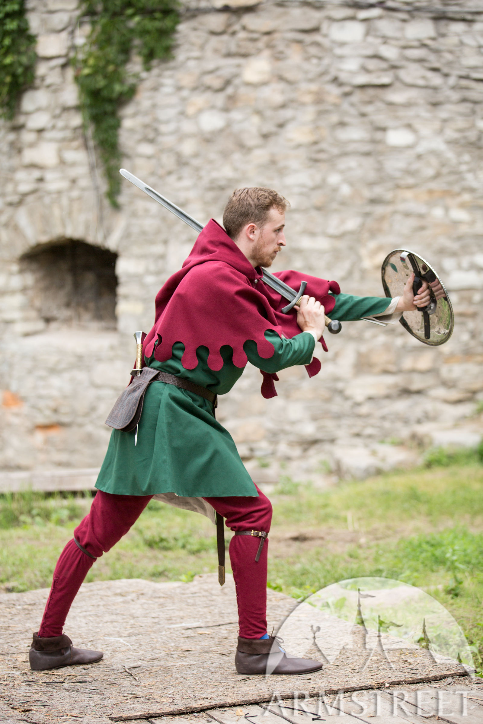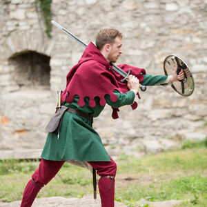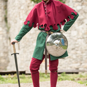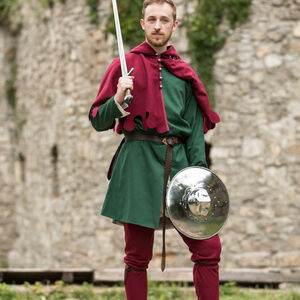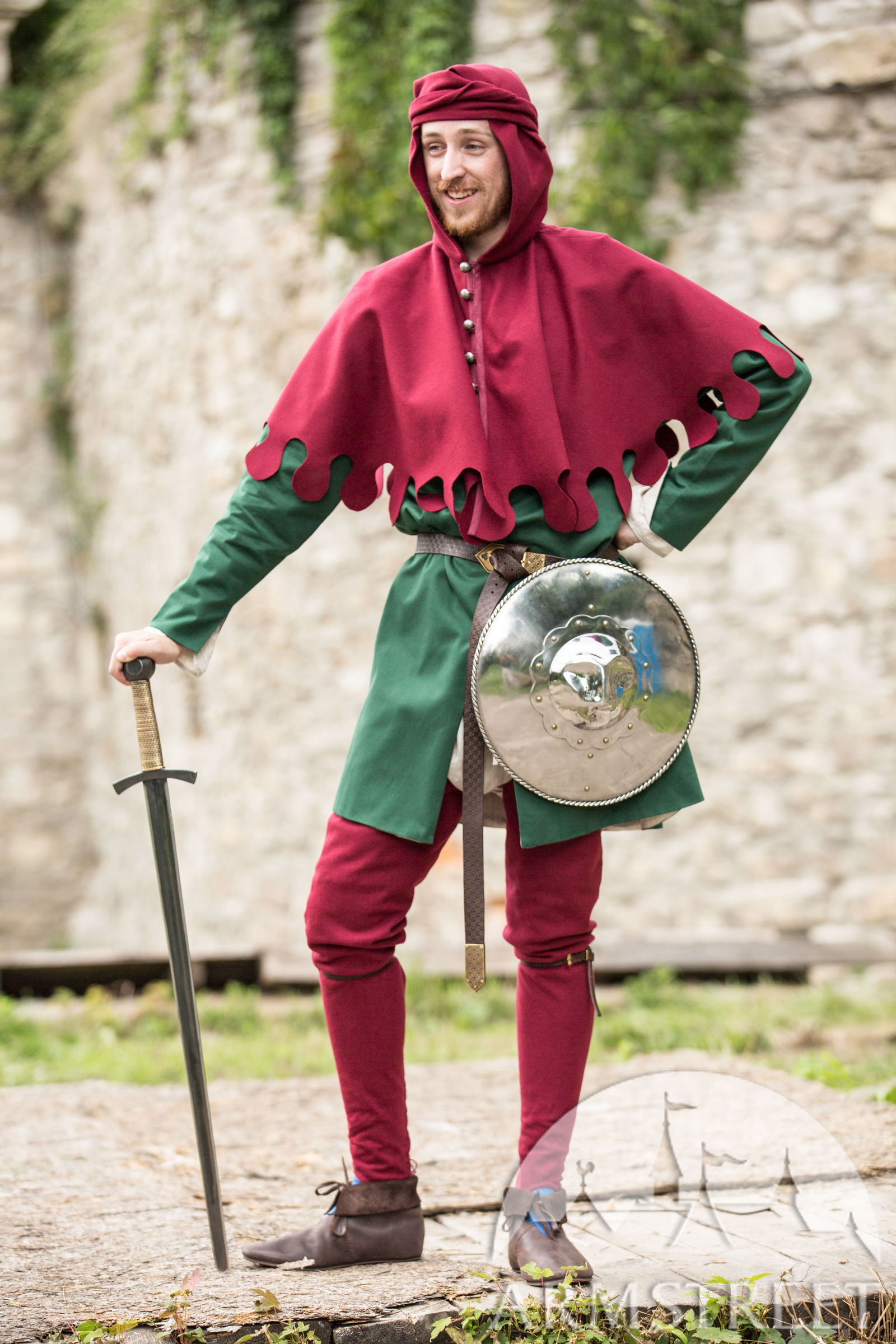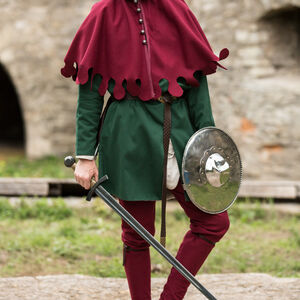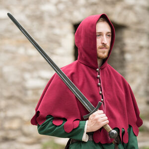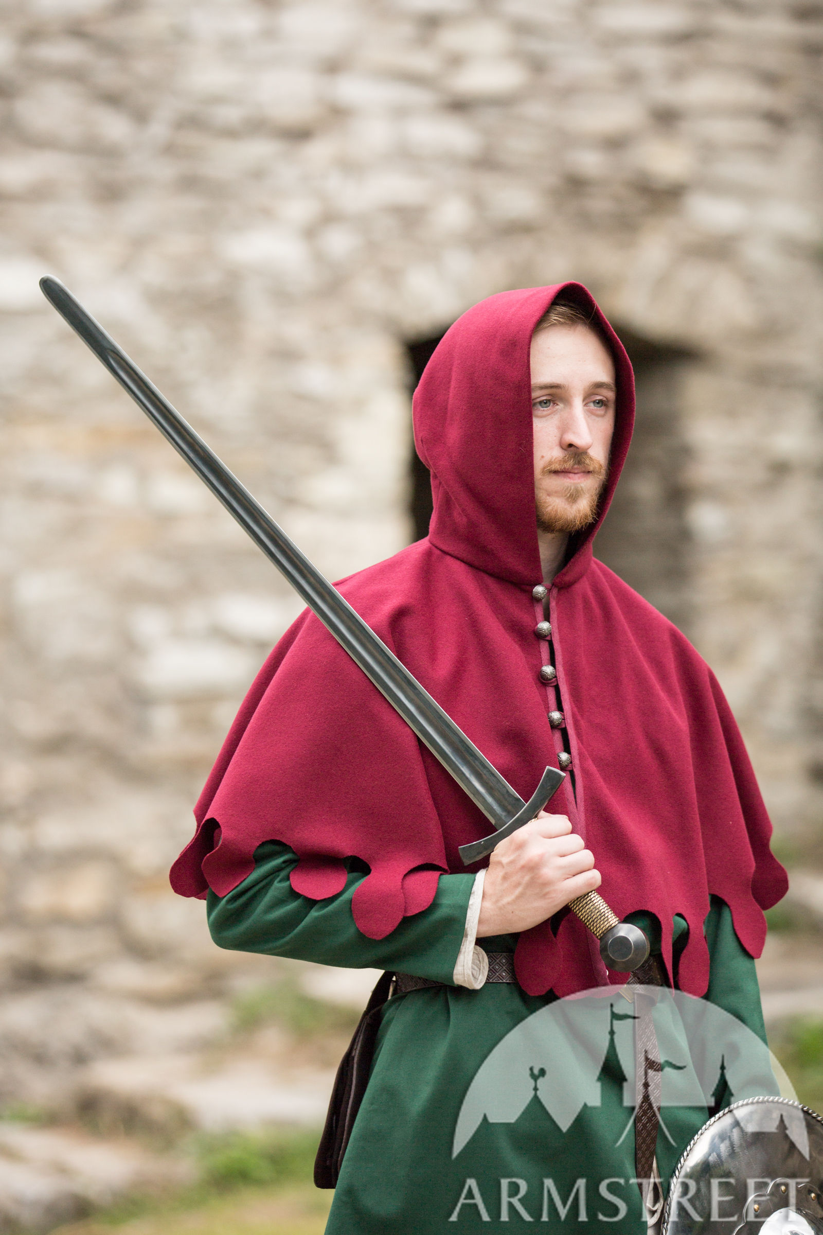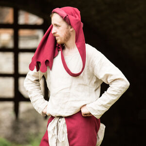 Cette cagoule particulière est conçue sur la base d’exemples des XIVe et XVe siècles et emprunte des éléments historiques et fantaisie pour créer l’accessoire idéal. Ce chaperon est plus grand que beaucoup de modèles historiques, ce qui signifie qu’il vous offre une couverture généreuse et vous protégera bien du vent et de la pluie. Lorsqu’elle est mise haut sur la tête, la capuche projette une ombre décente, ce qui en fait également un excellent pare-soleil en un clin d’œil. Il est facile d’enfiler ou de retirer cette capuche grâce aux boutons métalliques à l’avant pour vous aider à obtenir le bon ajustement.