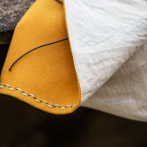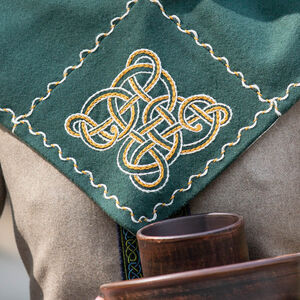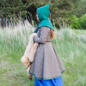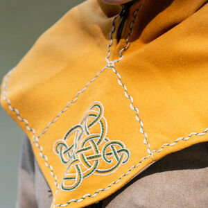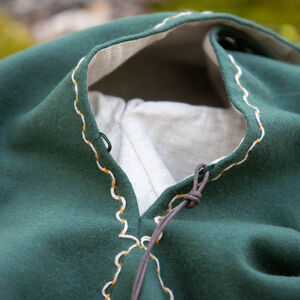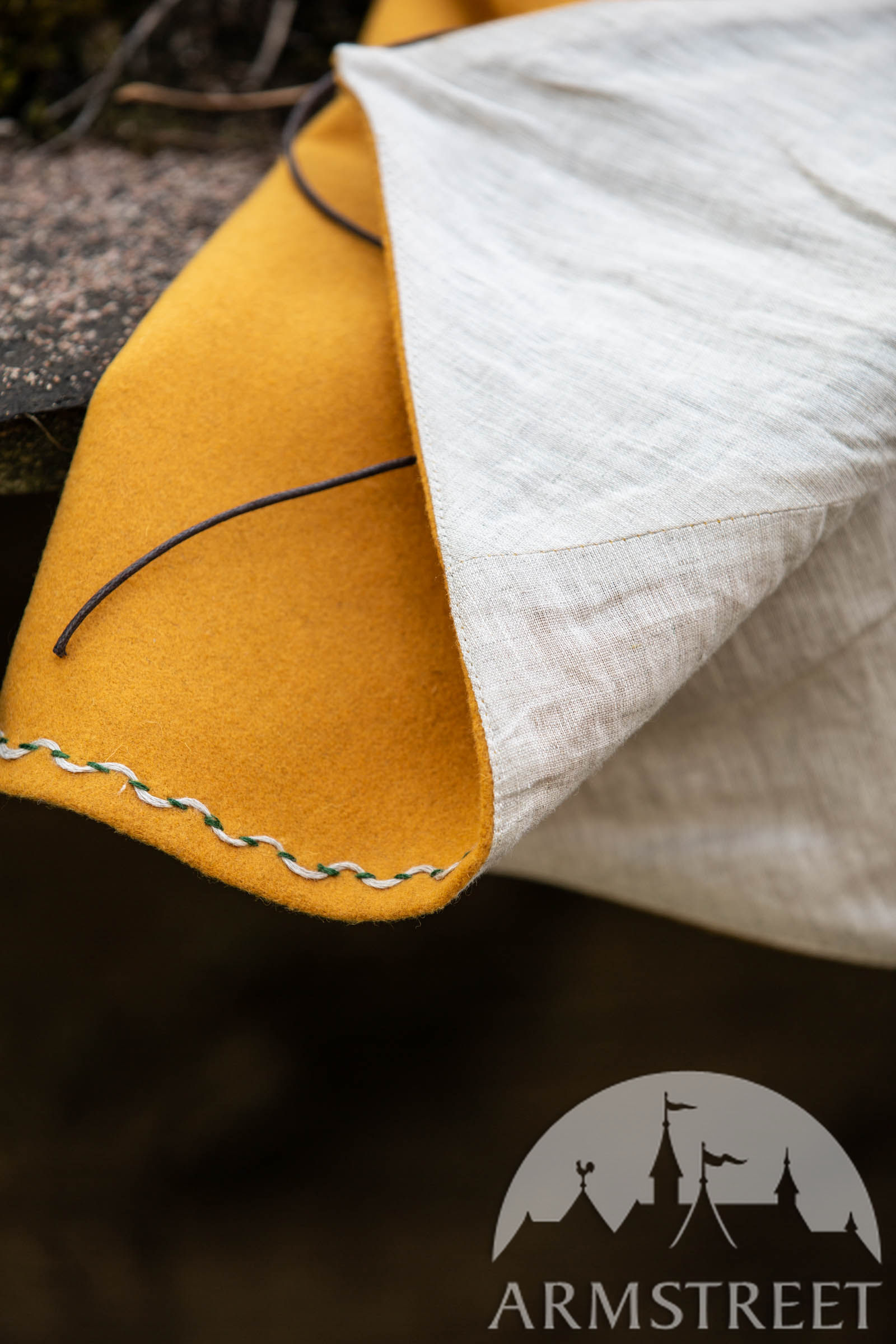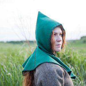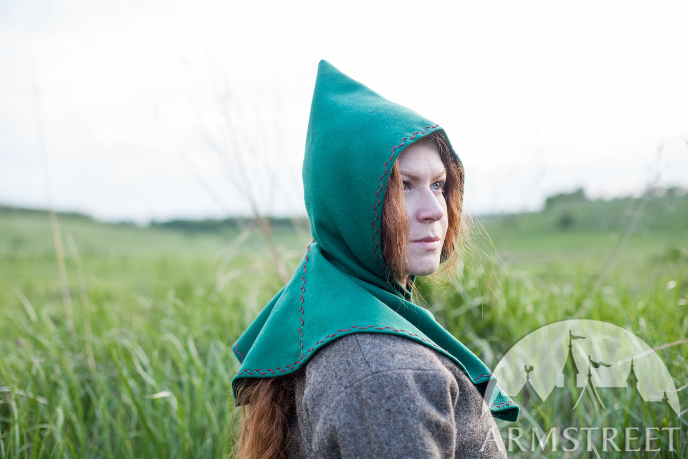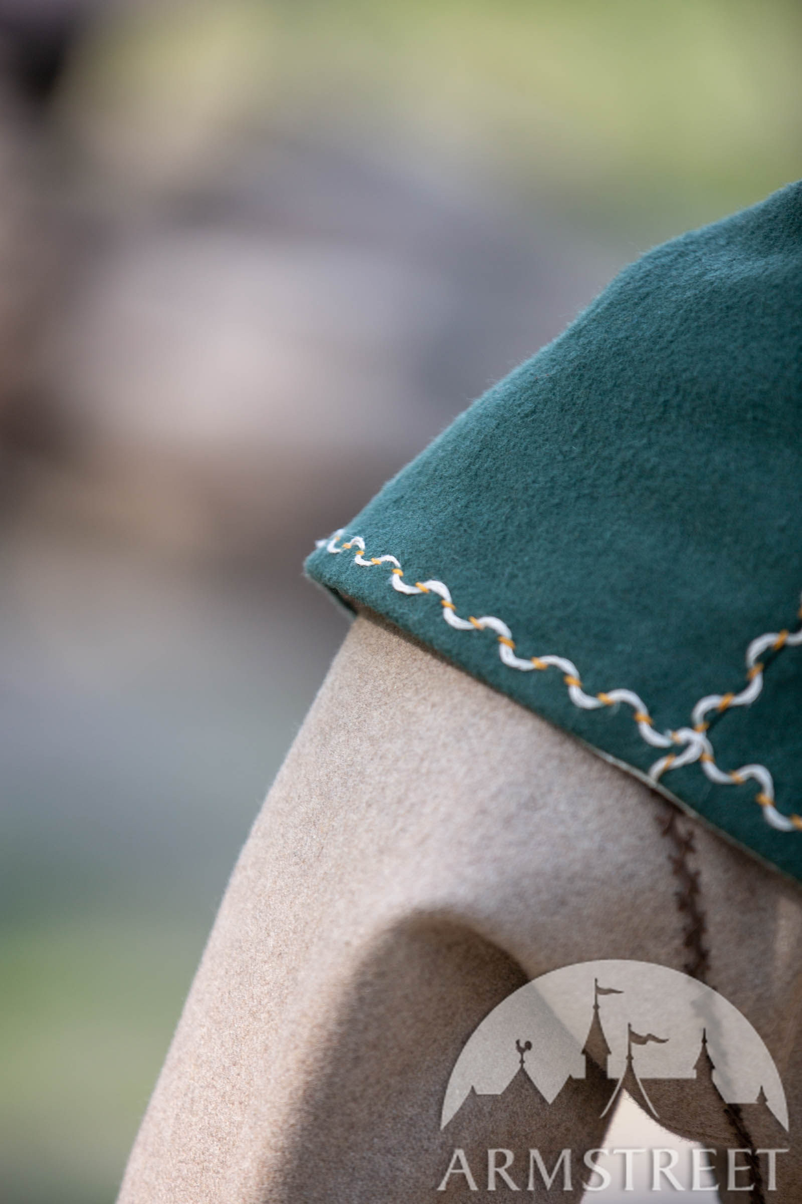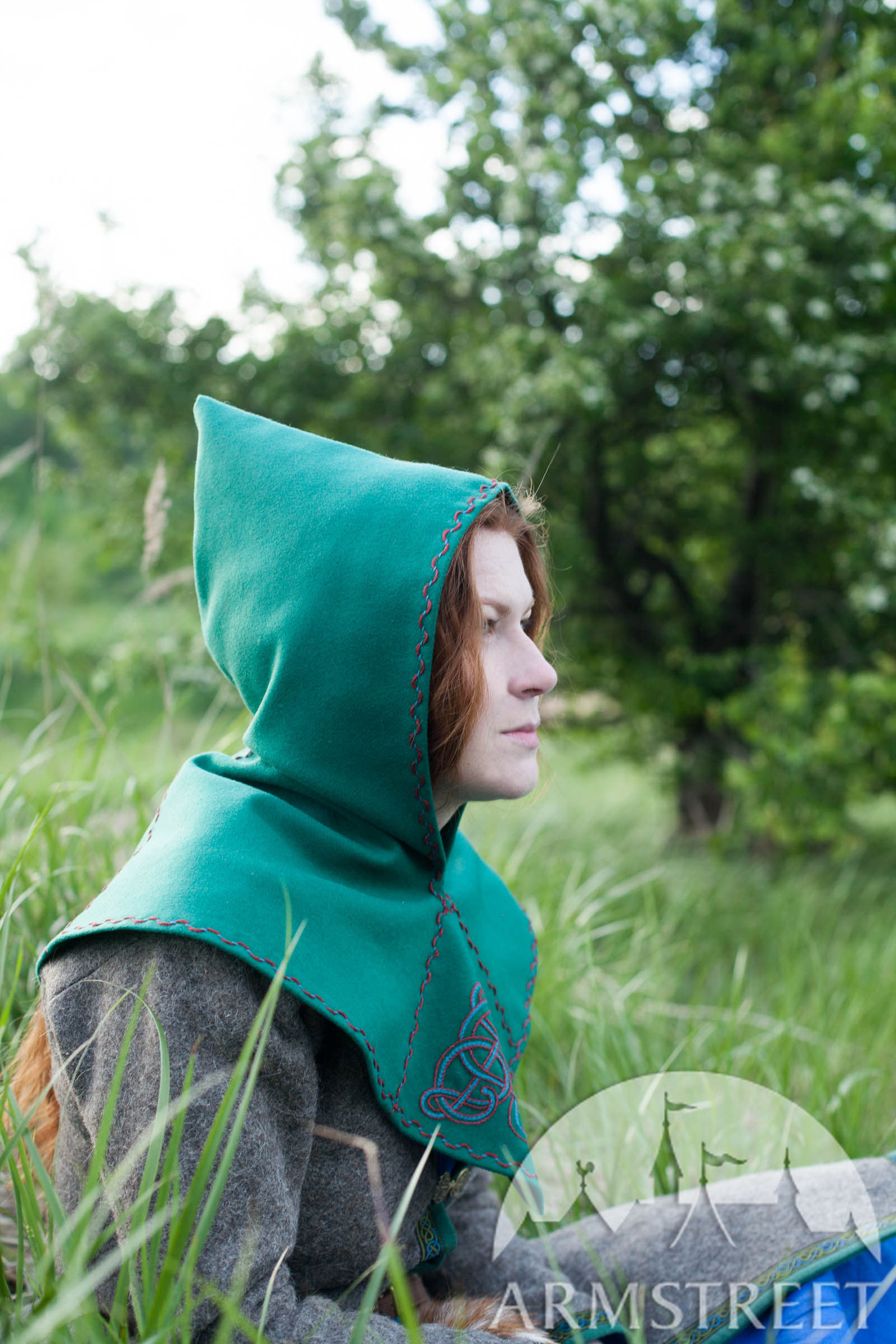 Ceci est un capuchon simple, élégant, confortable et agréable. Il est basé sur le modèle viking traditionnel avec inserts de losanges sur le devant et sur le dos. Il est décoré avec des broderies conçues par ArmStreet et les coutures à la main partout dans les bordures.