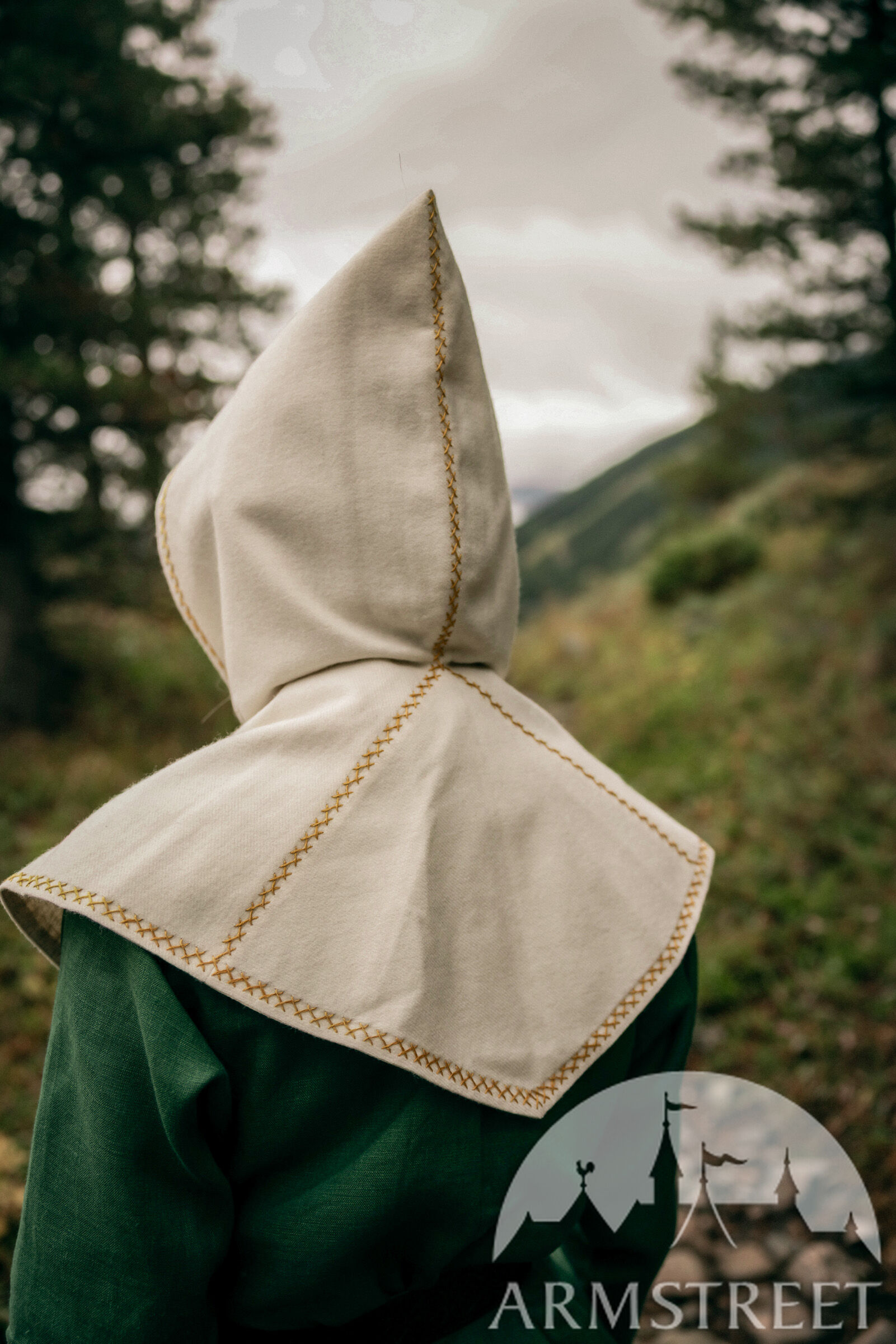 La capuche est l'un des vêtements médiévaux les plus polyvalents et les plus pratiques, et ce modèle est le meilleur que nous ayons en termes de simplicité relative et d'excellente fonctionnalité. Cette capuche sert à de nombreux objectifs, de la protection contre le vent et les intempéries à la dissimulation de votre visage lors d'une mission risquée. Elle joue également un rôle important en tant qu'élément de votre tenue, modifiant le style et le niveau d'authenticité lorsqu'elle est associée à des vêtements basiques très simples. La capuche blanche est encore plus que cela : une combinaison parfaite entre une apparence trompeuse et une nature cachée.