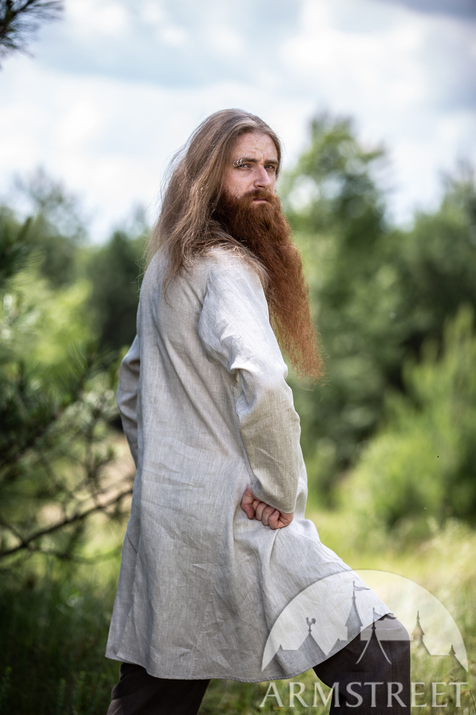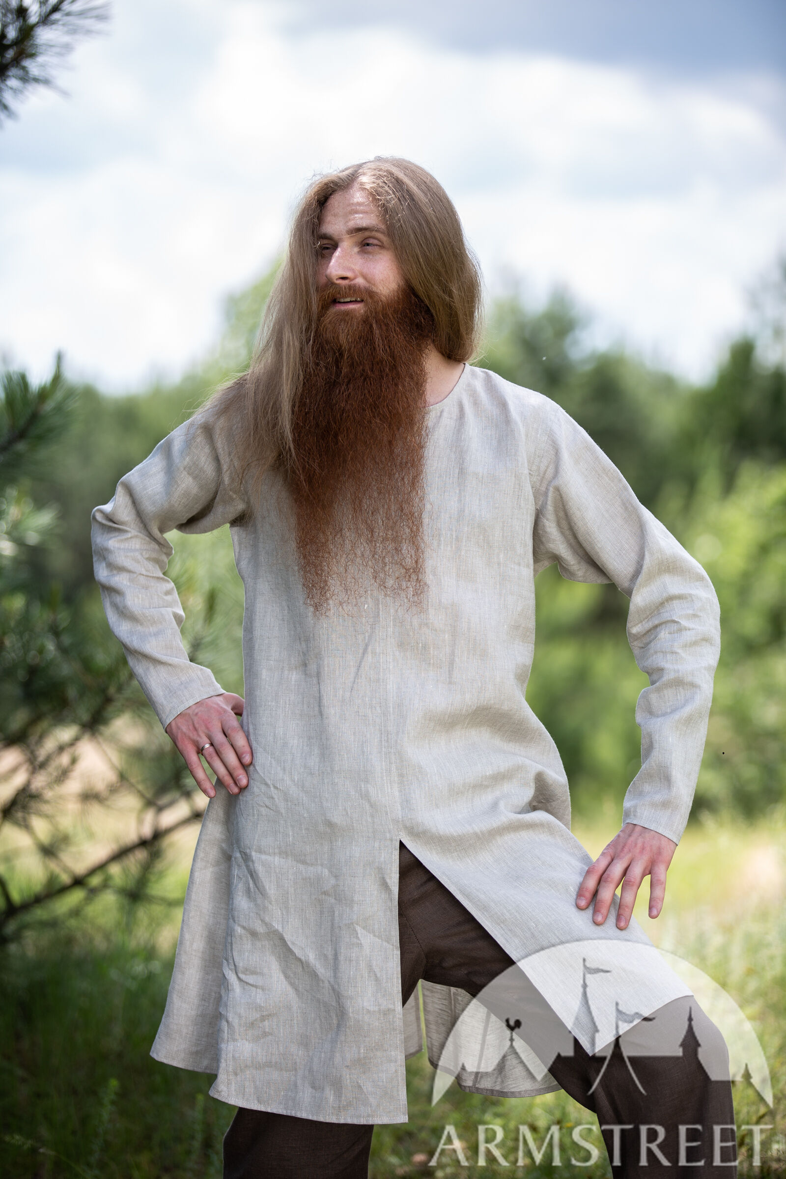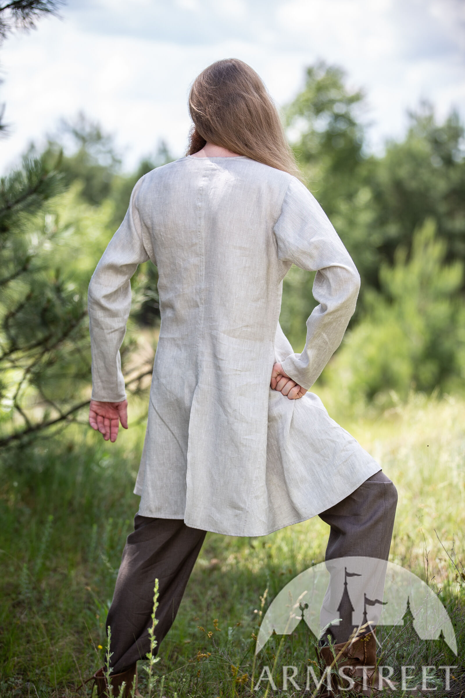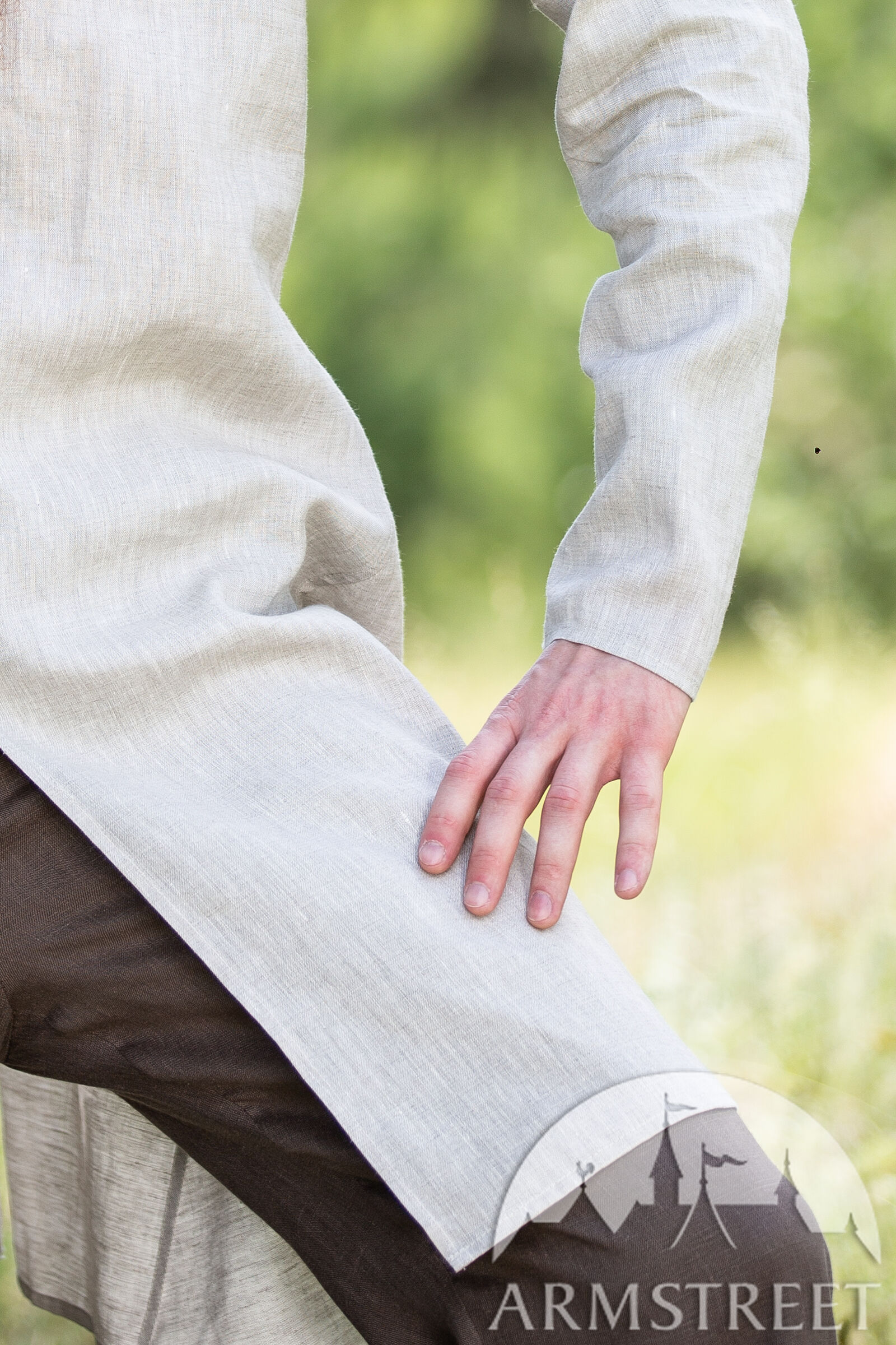 Nous proposons trois couleurs de base – blanche, naturelle et noire – les meilleures couleurs pour un sous-vêtement. Ce lin est plus fin que celui que nous utilisons pour nos tuniques ordinaires parce qu’il convient mieux pour un sous-vêtement comme première couche de costume. C’est aussi une excellente tunique pour vous détendre près du feu de camp, vous occuper des activités médiévales ou effectuer les affaires quotidiennes dans votre campement.