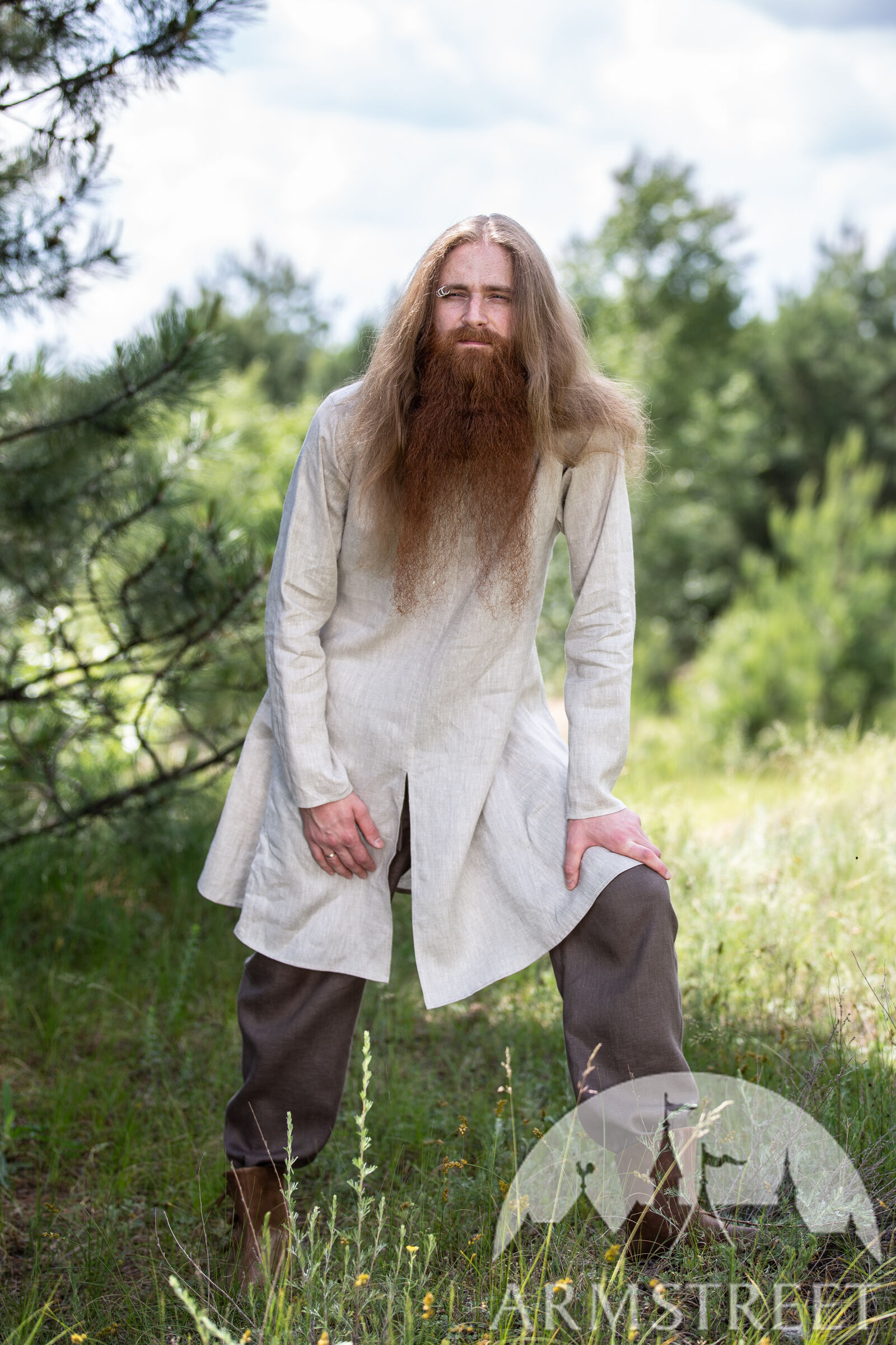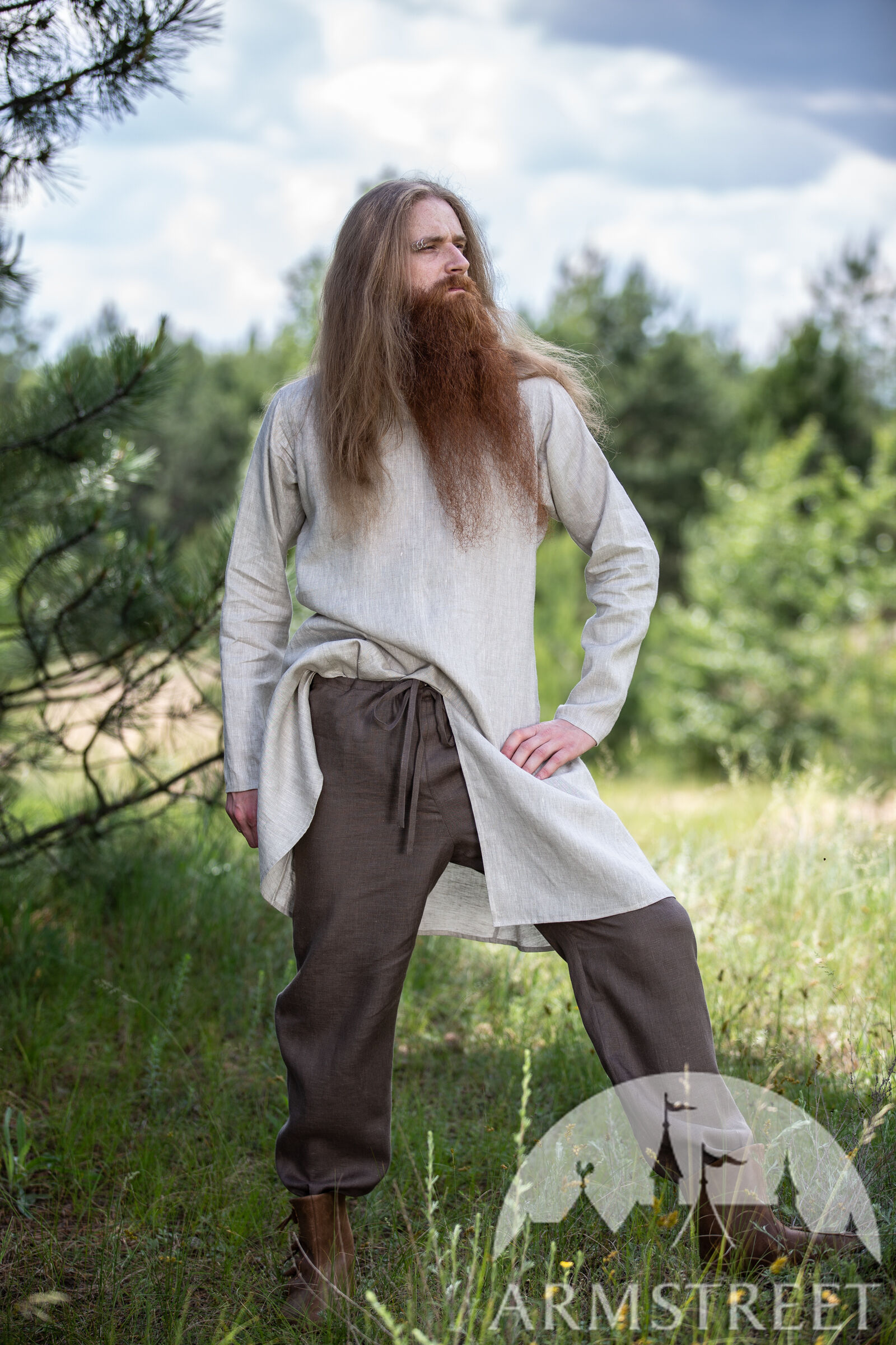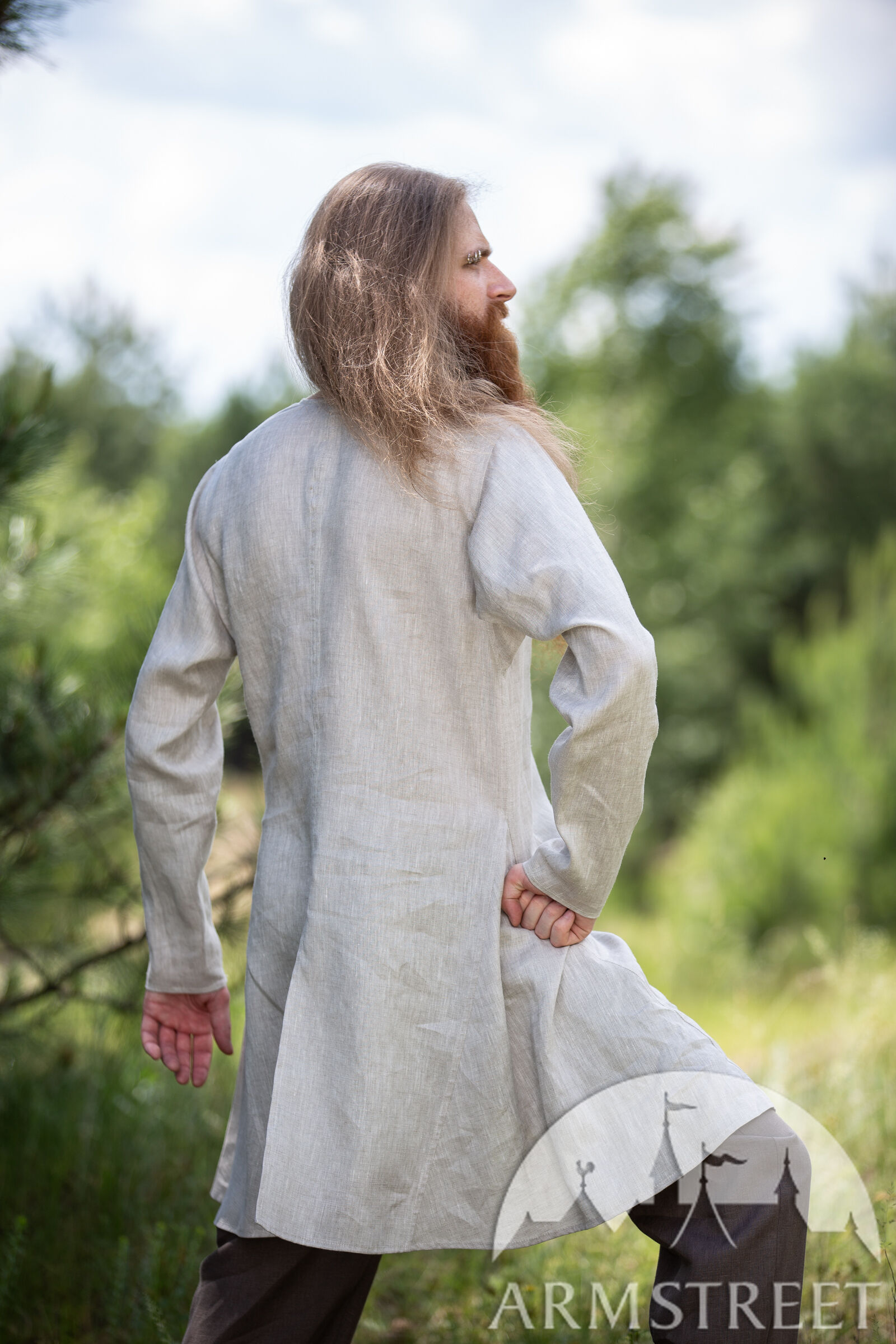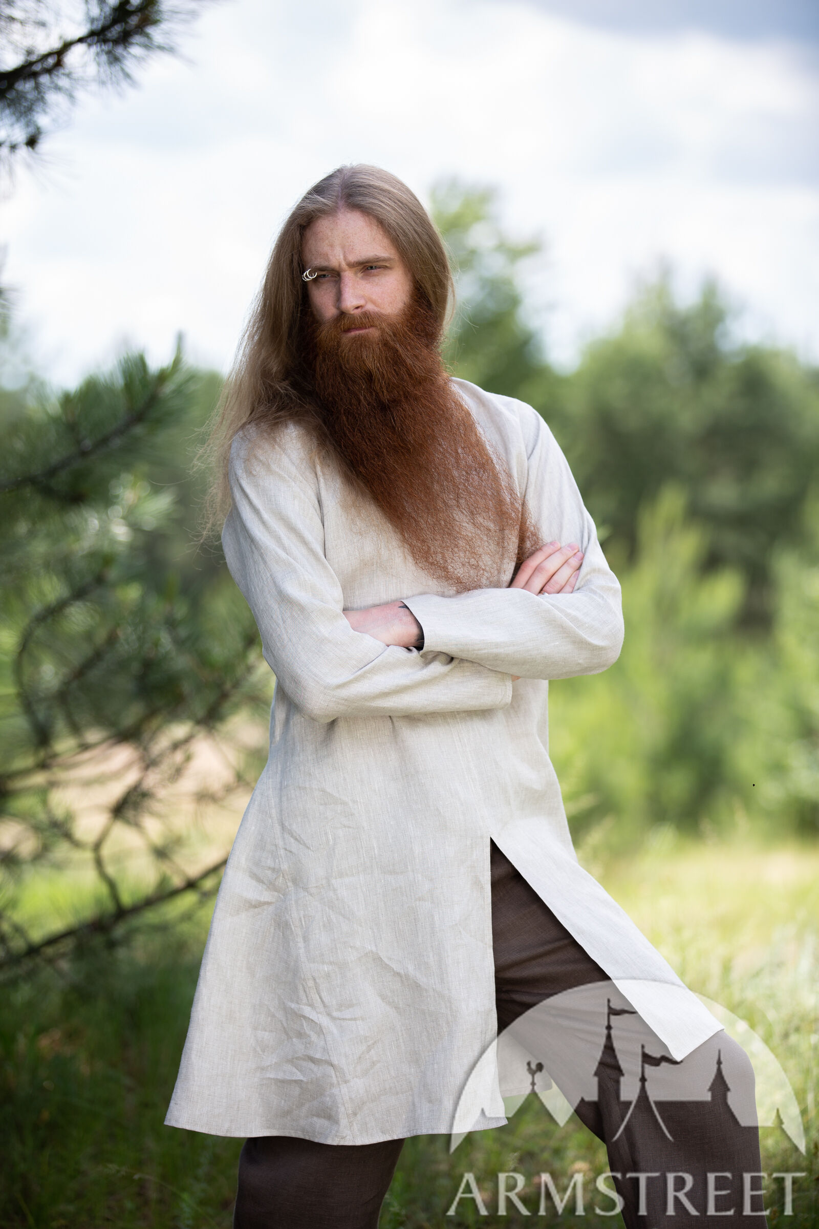 Nous proposons trois couleurs de base – blanche, naturelle et noire – les meilleures couleurs pour un sous-vêtement. Ce lin est plus fin que celui que nous utilisons pour nos tuniques ordinaires parce qu’il convient mieux pour un sous-vêtement comme première couche de costume. C’est aussi une excellente tunique pour vous détendre près du feu de camp, vous occuper des activités médiévales ou effectuer les affaires quotidiennes dans votre campement.