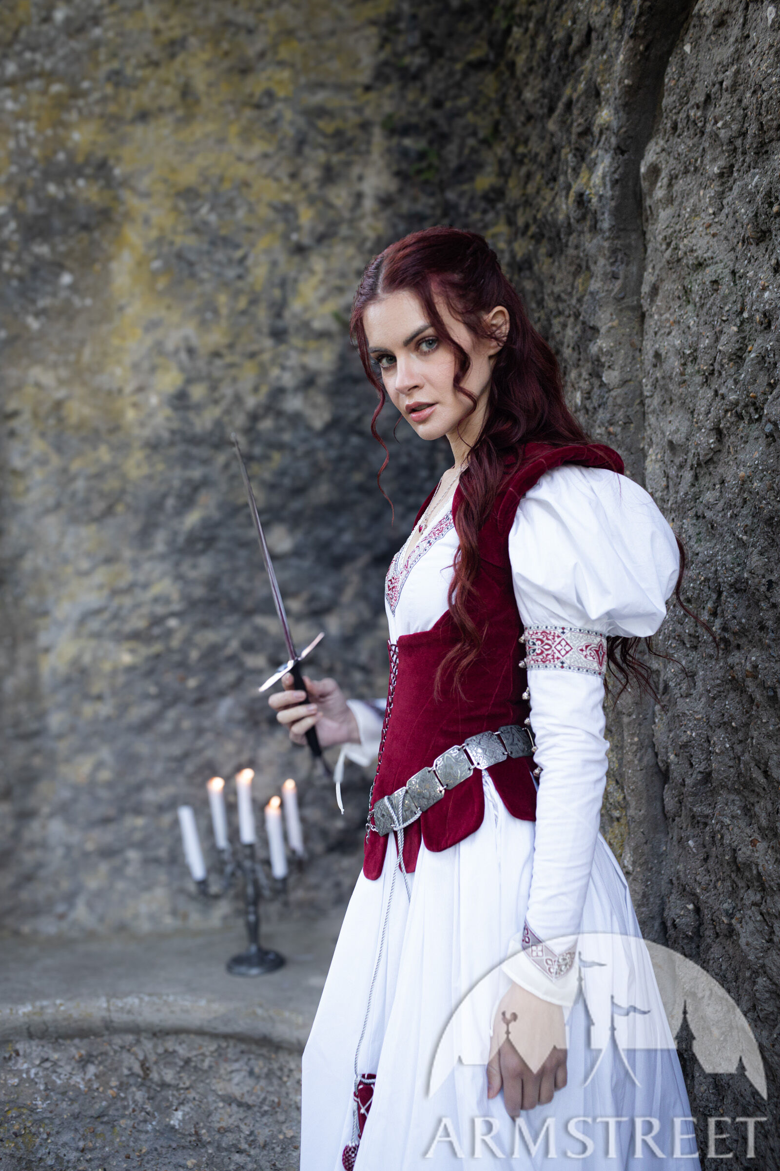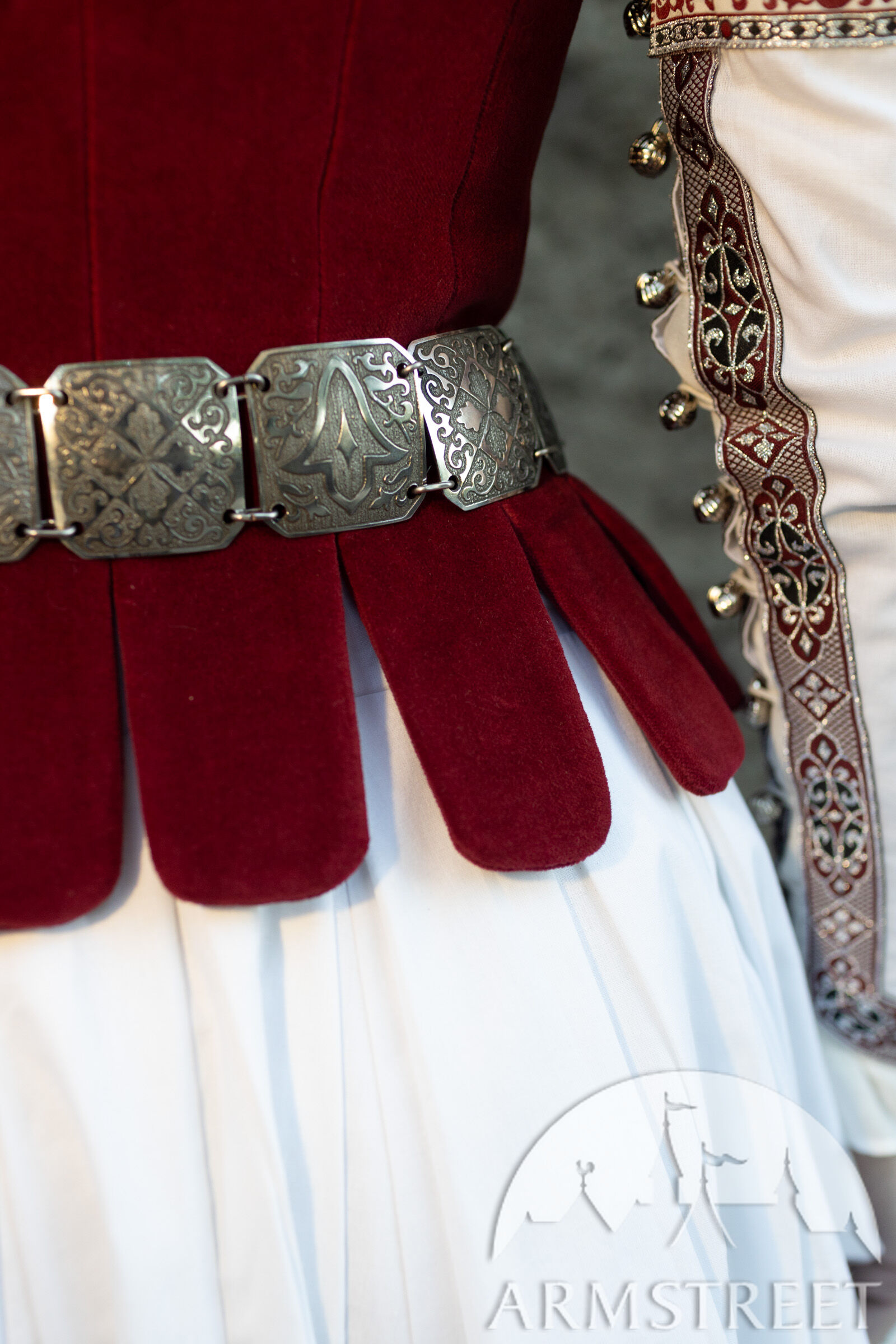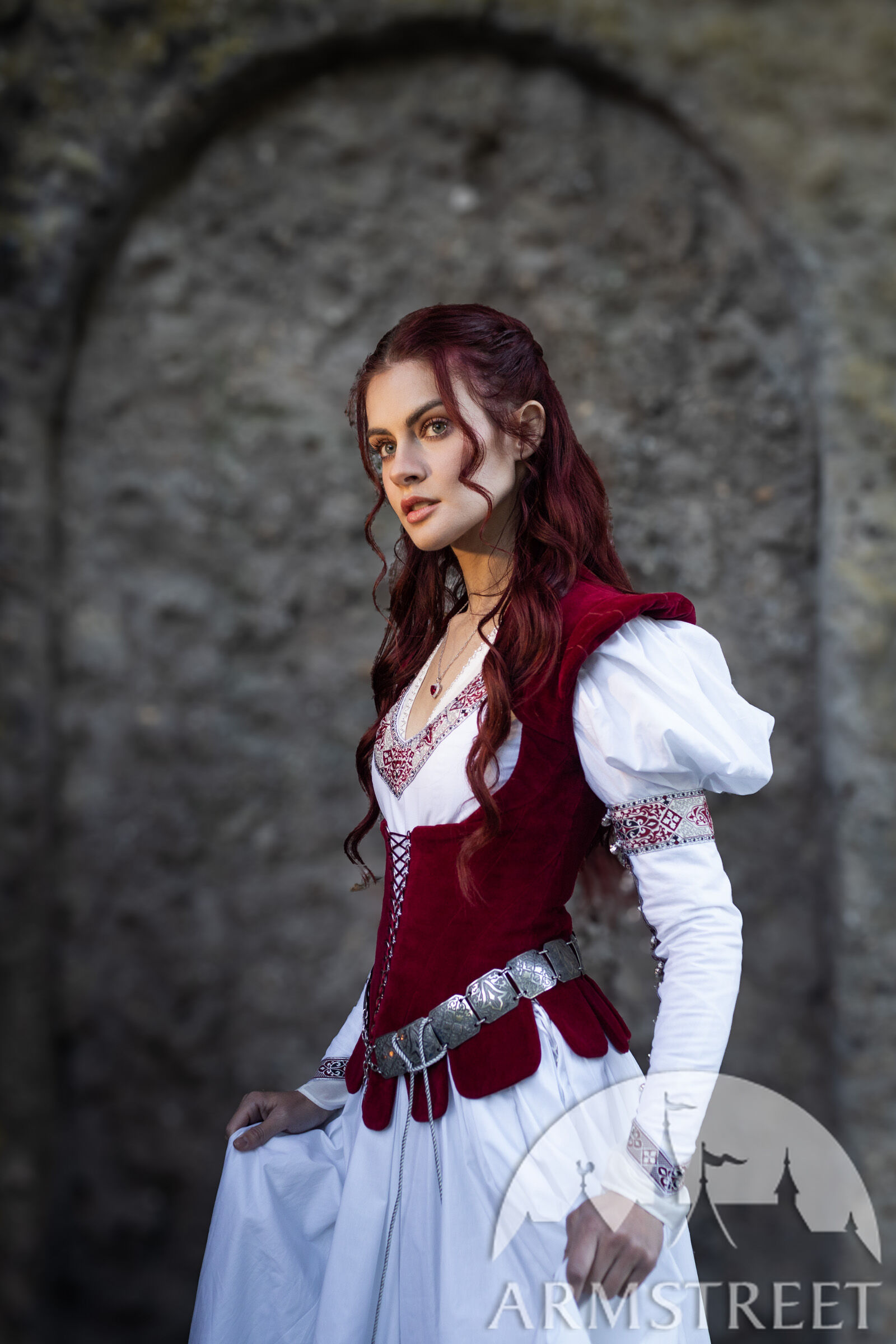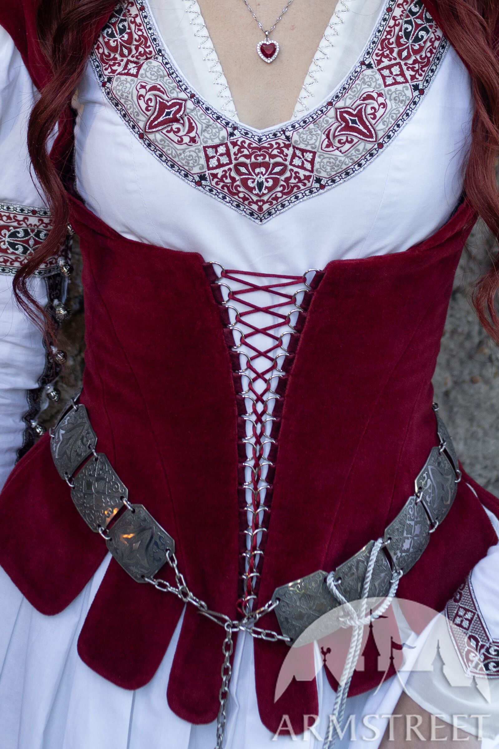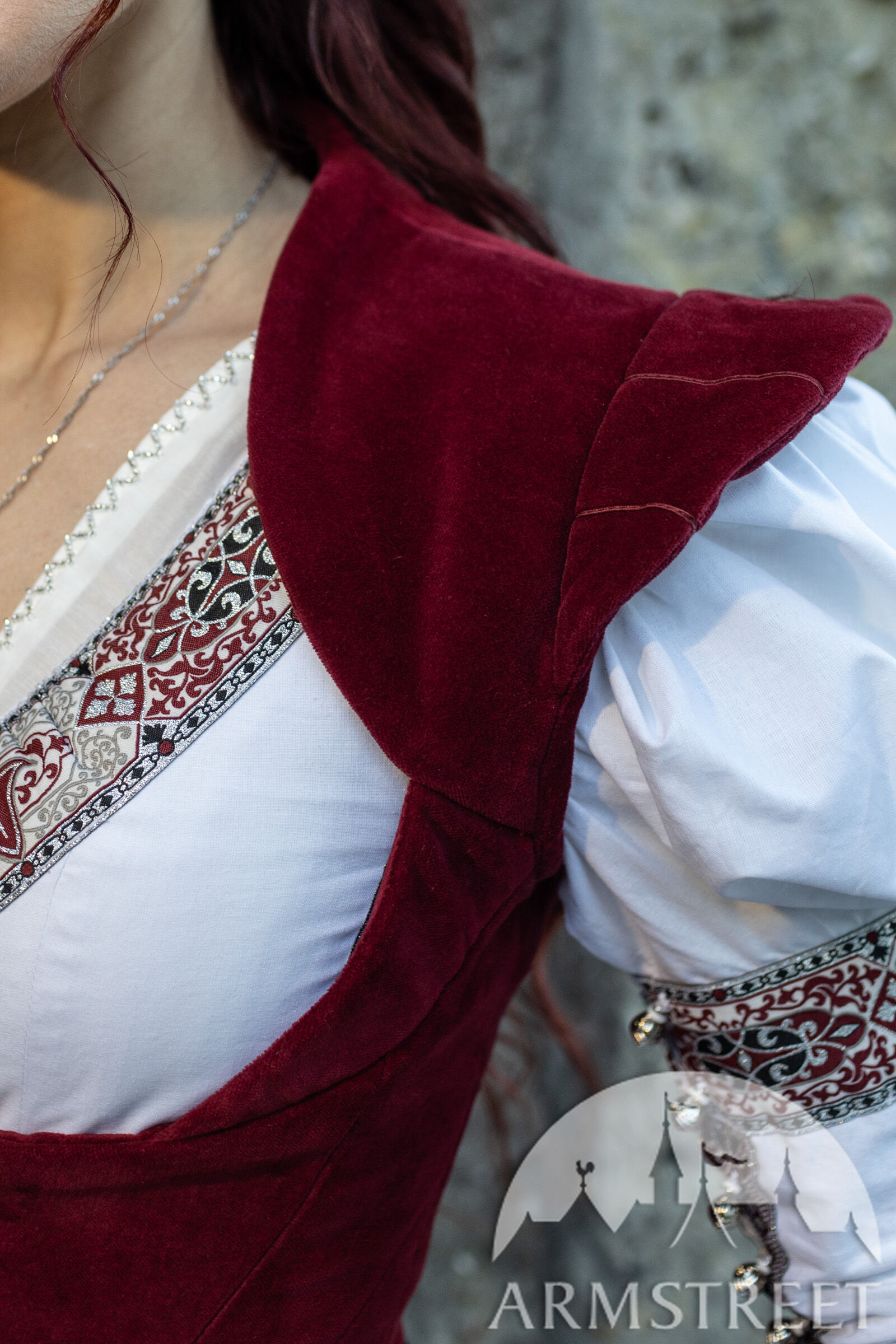 Le corsage est un élément très spécial et élégant de tout costume d’époque ou fantastique. Il offre une opportunité inhabituelle et époustouflante d’unir un look authentique en mettant l’accent sur la beauté des courbes du corps. Contrairement à un corset, un corsage n'a pas d'os à l'intérieur, vous pourrez donc respirer et bouger librement, mais tout comme un corset, il se replie sur la poitrine et souligne votre taille. Le velours est renforcé avec du cilice - un tissu spécial qui empêche la déformation du gilet.